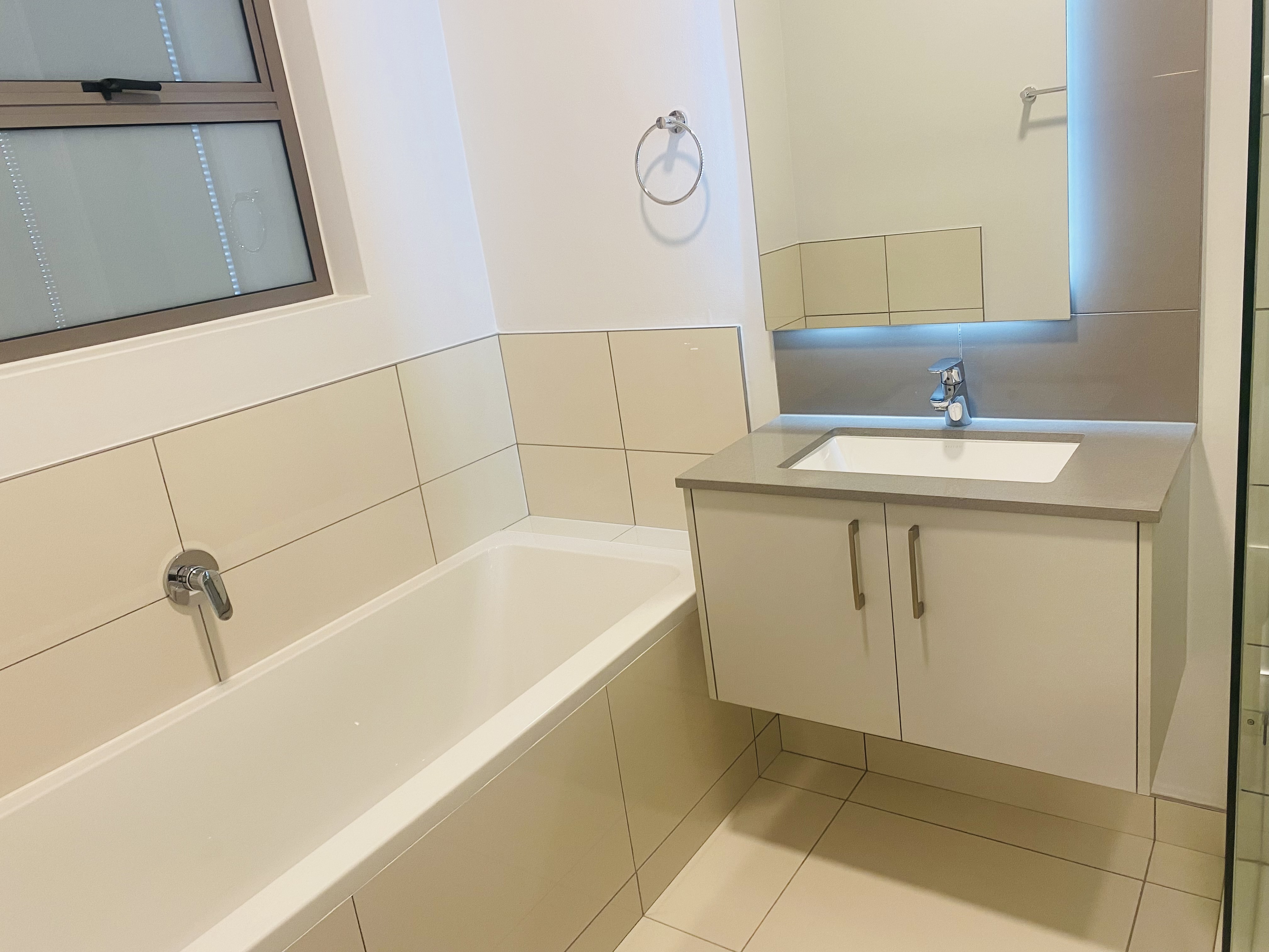 The open plan area has beautiful views of the Johannesburg skyline and to be within walking distance to the hub of Rosebank, what more could you ask for! The full bathroom (shower, bath, toilet and basin) has modern and luxurious finishes.