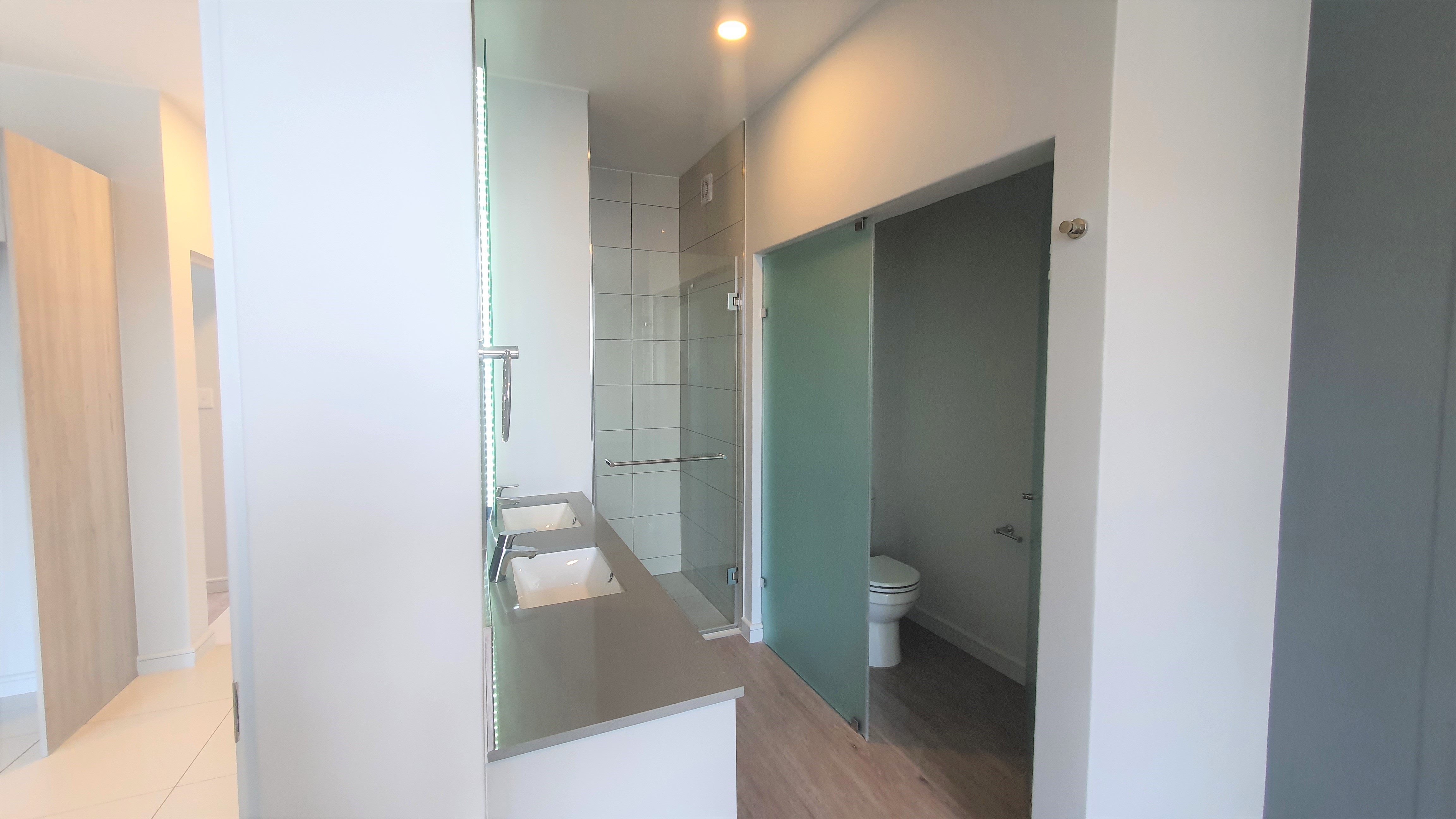 The bedrooms have ample cupboard space and the main ensuite has a built in dressing table with the ensuite bathroom offering you a large shower, double vanity’s and a private toilet. With a second bedroom and bathroom as well as a study area, this apartment has all you would need. The kitchen is modern, spacious and just a dream for those who love to cook by offering ample counter top space and loads and loads of cupboards.