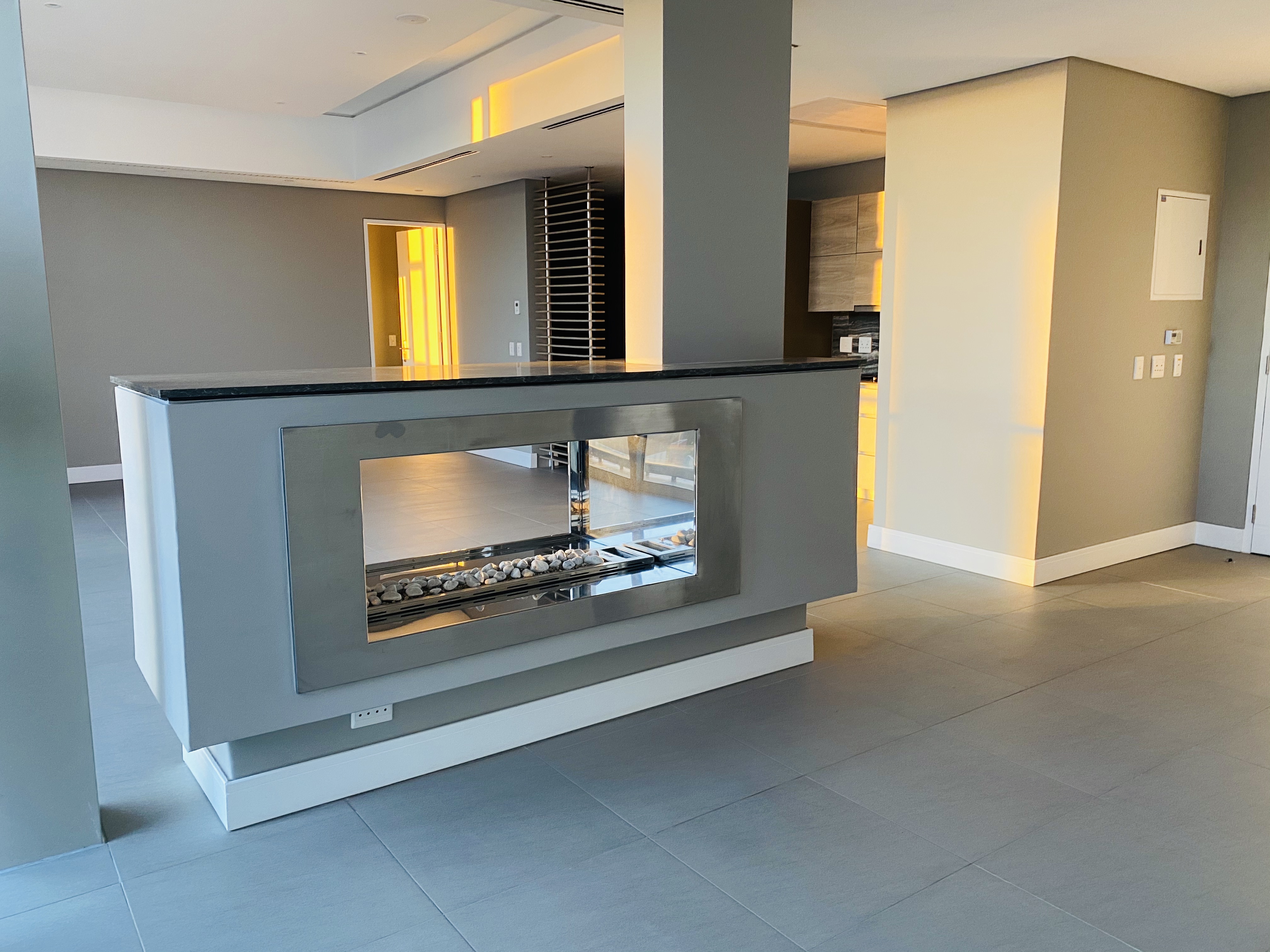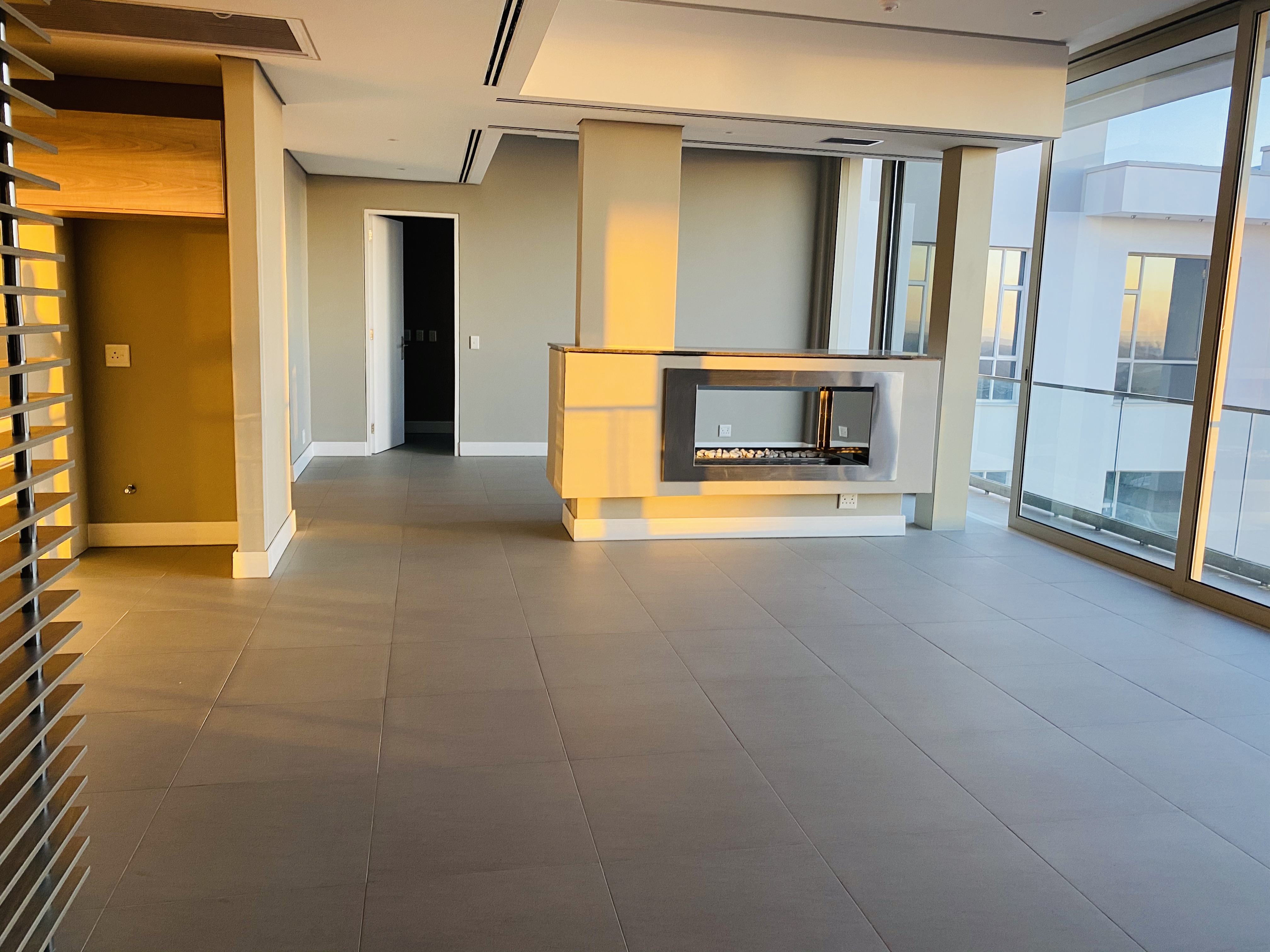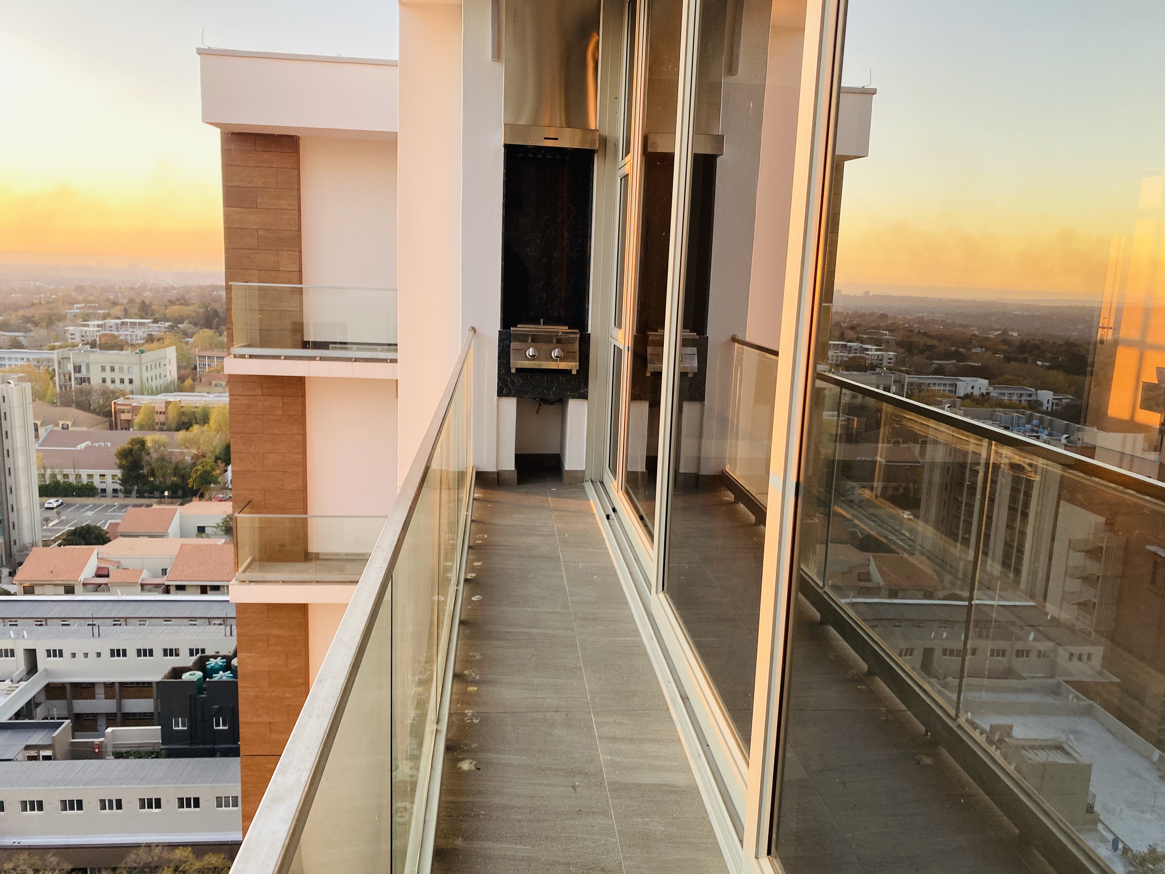 14th floor 2 bed 2 bath penthouse available at The Tyrwhitt in Rosebank. Open-plan kitchen, lounge and dining area with an eye-catching eternity fireplace room feature. The living area leads to the long entertainers balcony with built-in gas braai and a magnificent view.