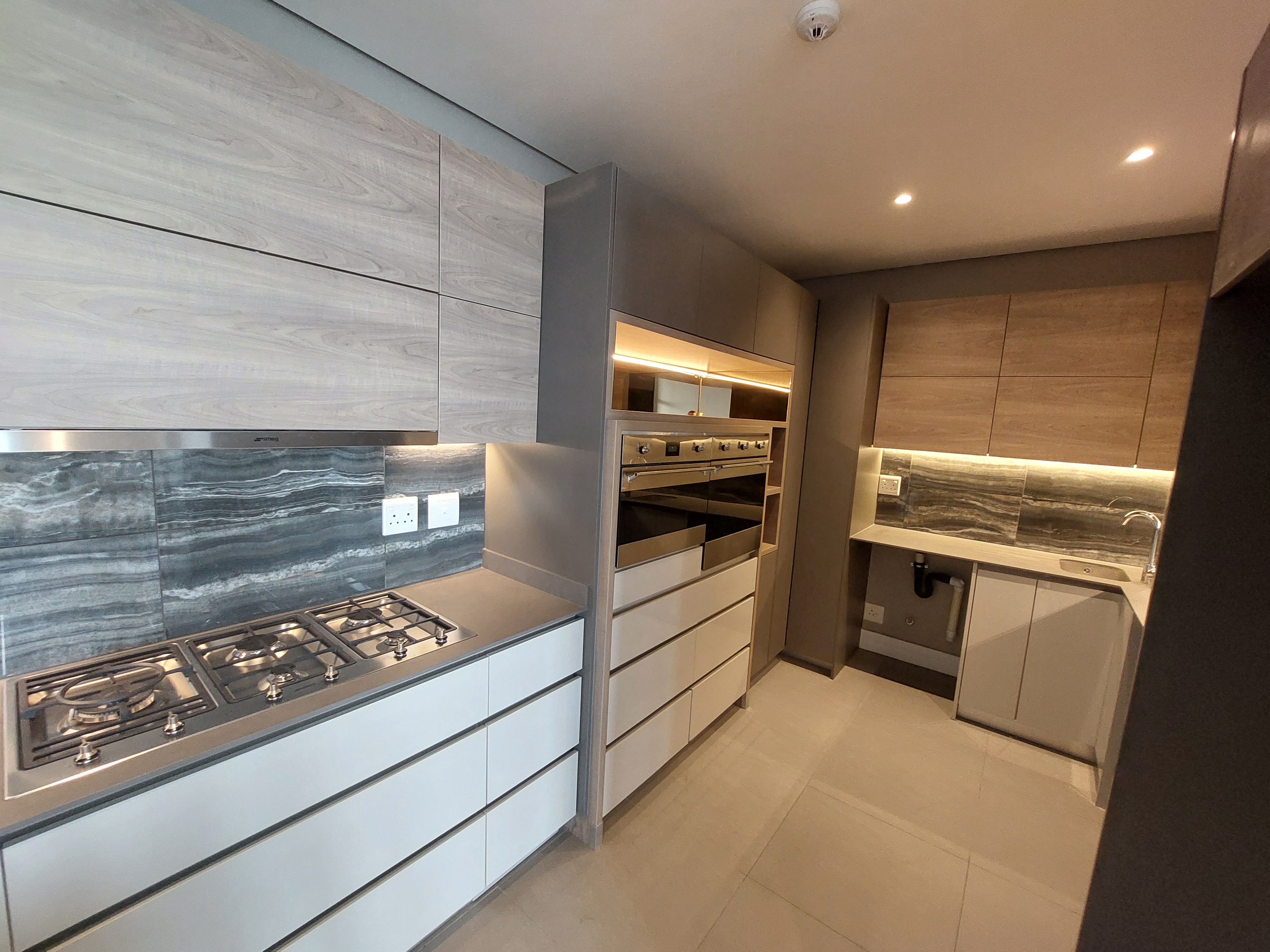Stunning penthouse at The Tyrwhitt that has amazing features with a breathtaking view of Rosebank from the 12th floor. Ssophisticated, open-plan kitchen, lounge and dining area with an amazing gas fireplace. The kitchen boasts top-notch finishes and is equipped with SMEG appliances and gas cooking facilities. Volumes of kitchen cupboard space.