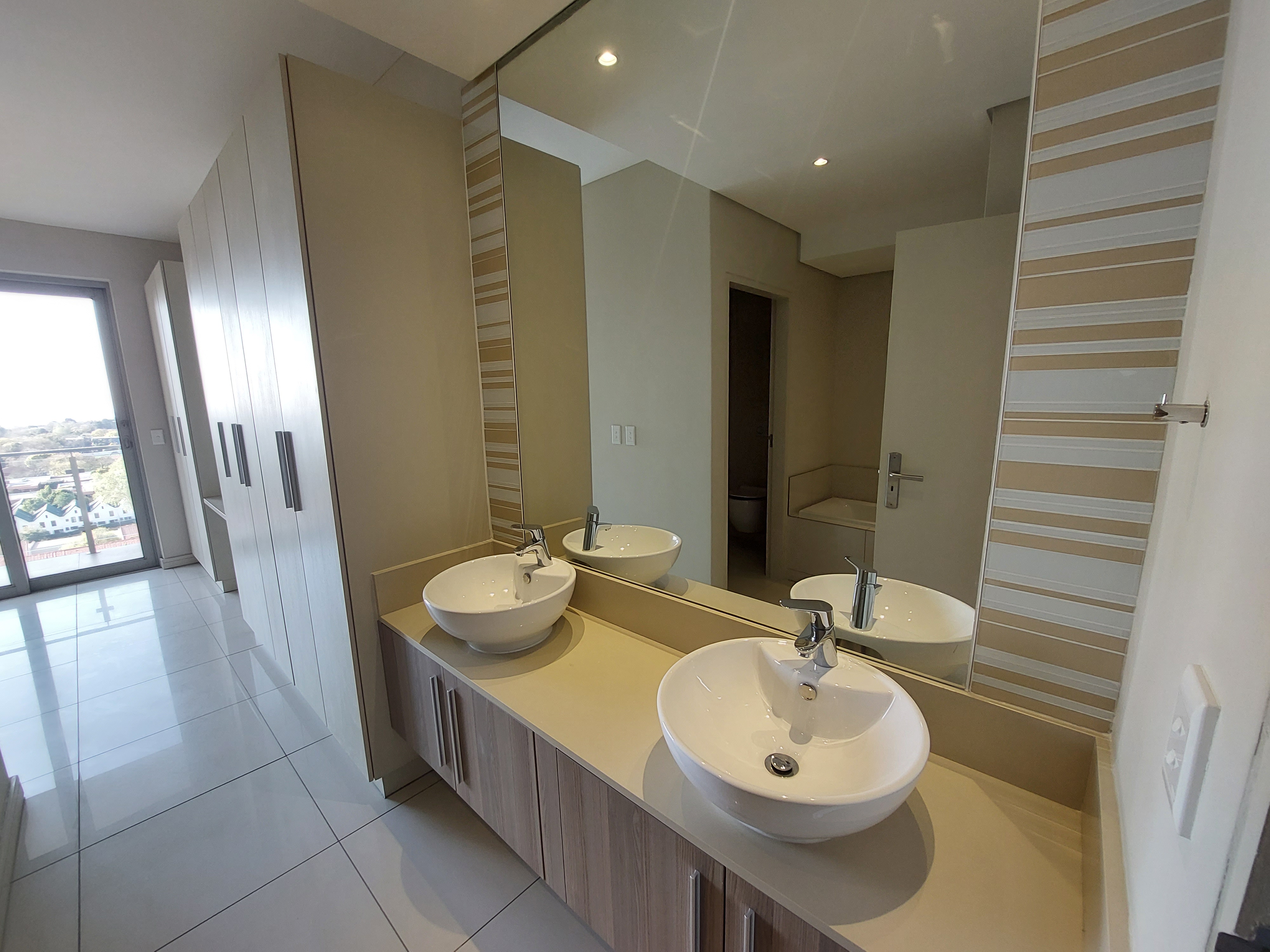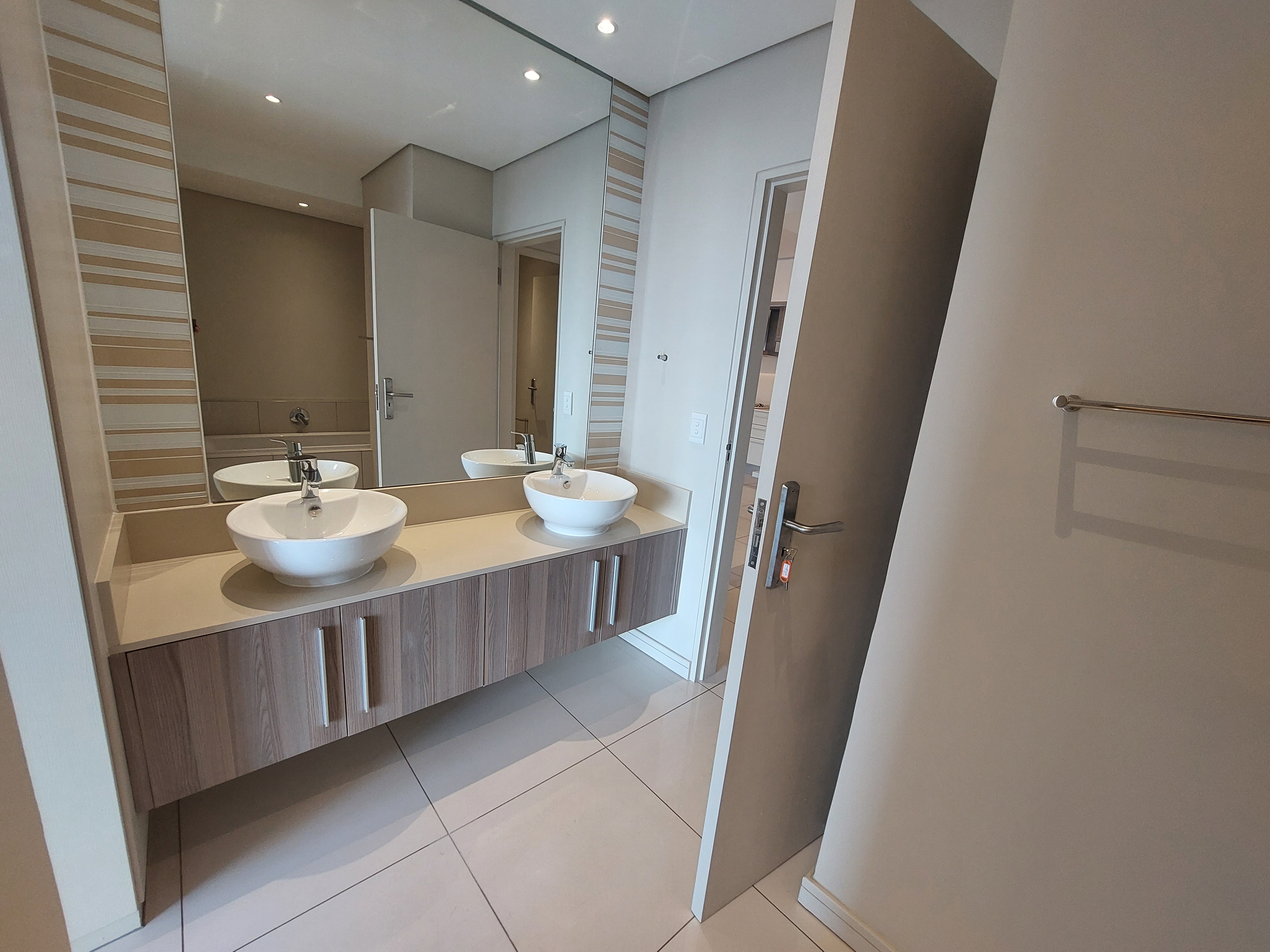 Modern Living. Timeless Elegance. Pet Friendly. 2 Bed 2 1⁄2 Bath Apartment with back-up power and water. The Tyrwhitt is a prestigious development that has raised the benchmark in luxury apartments in Rosebank. This beautiful 11th floor apartment offers modern living with magnificent, north-facing views of the Johannesburg skyline. The open plan living area leads onto a large and sunny balcony. The kitchen is perfectly designed with a SMEG gas hob, electric oven & extractor, stone counter tops and space for 2 under counter appliances. Ample cupboard space in both the kitchen and bedrooms. The main bedroom offers the main en-suite with a bath, double-vanity basins, and a private toilet. The second bedroom has an en-suite shower and single vanity. There is a separate guest toilet as well and a dedicated workstation.