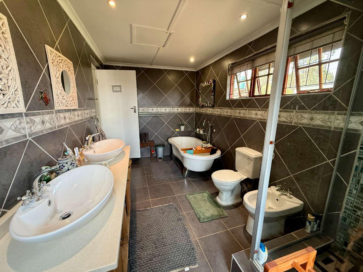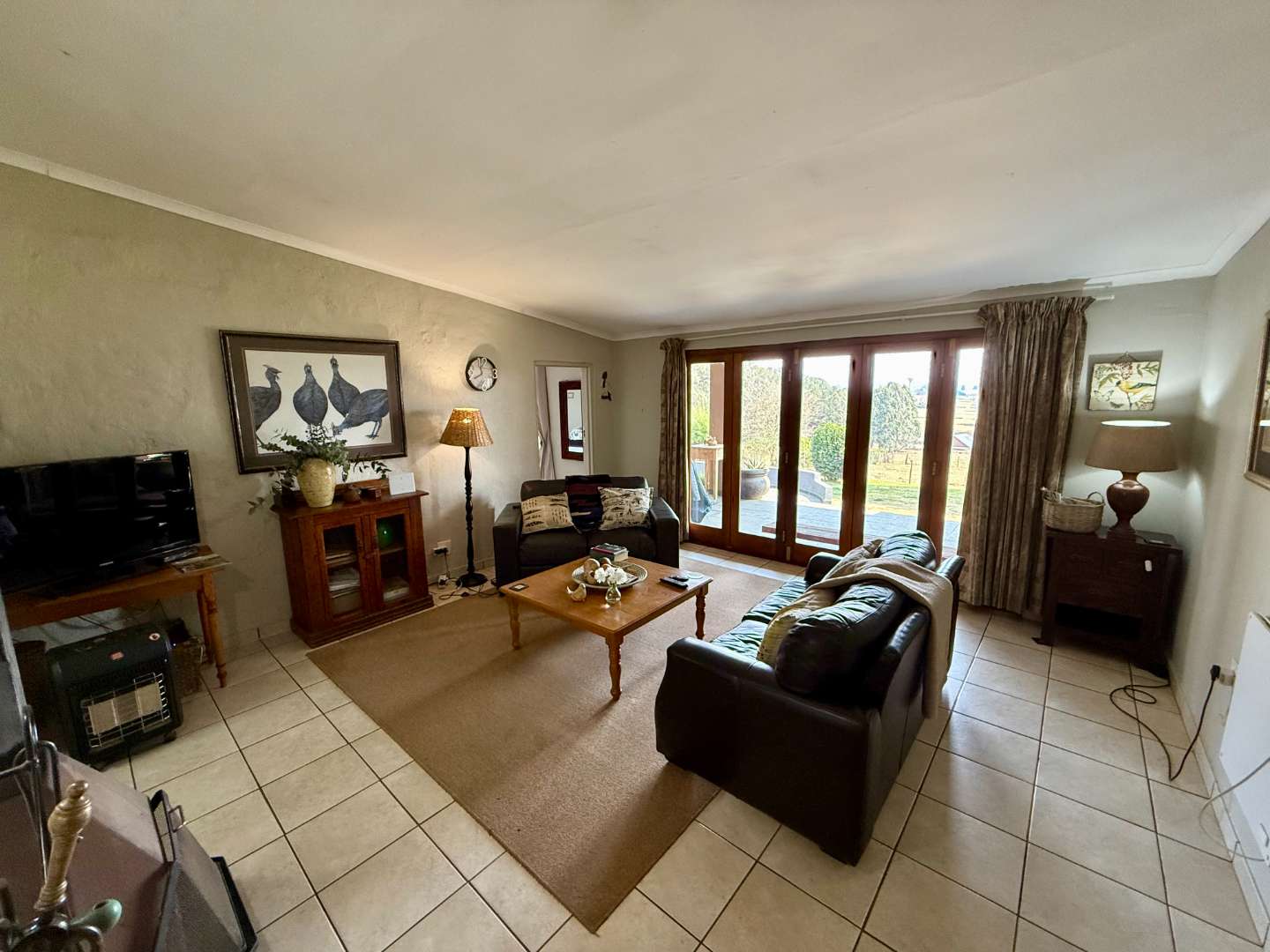 At the heart of the property is a warm, traditional home that feels instantly welcoming. With three comfortable bedrooms, including a main ensuite, and 2.5 bathrooms, there’s room for the whole family. The home has both an enclosed sun veranda—perfect for cosy winter mornings—and an open veranda where you can soak up sweeping garden and countryside views. Inside, the farm-style kitchen is designed for family living, complete with a gas stove top, double Defy ovens, and a mudroom and scullery for added practicality. While most of the home is tiled, the carpeted main bedroom and lounge add an extra touch of warmth and comfort.