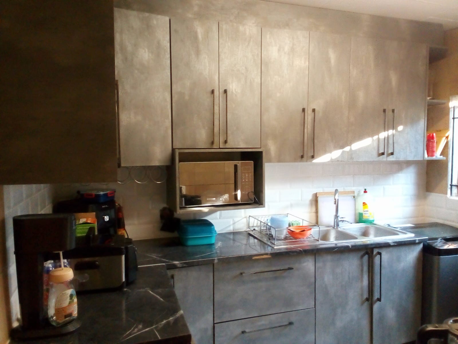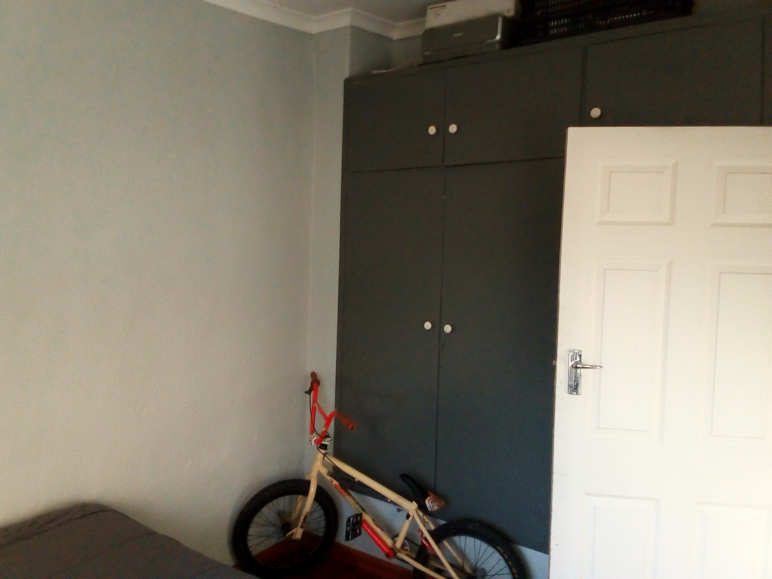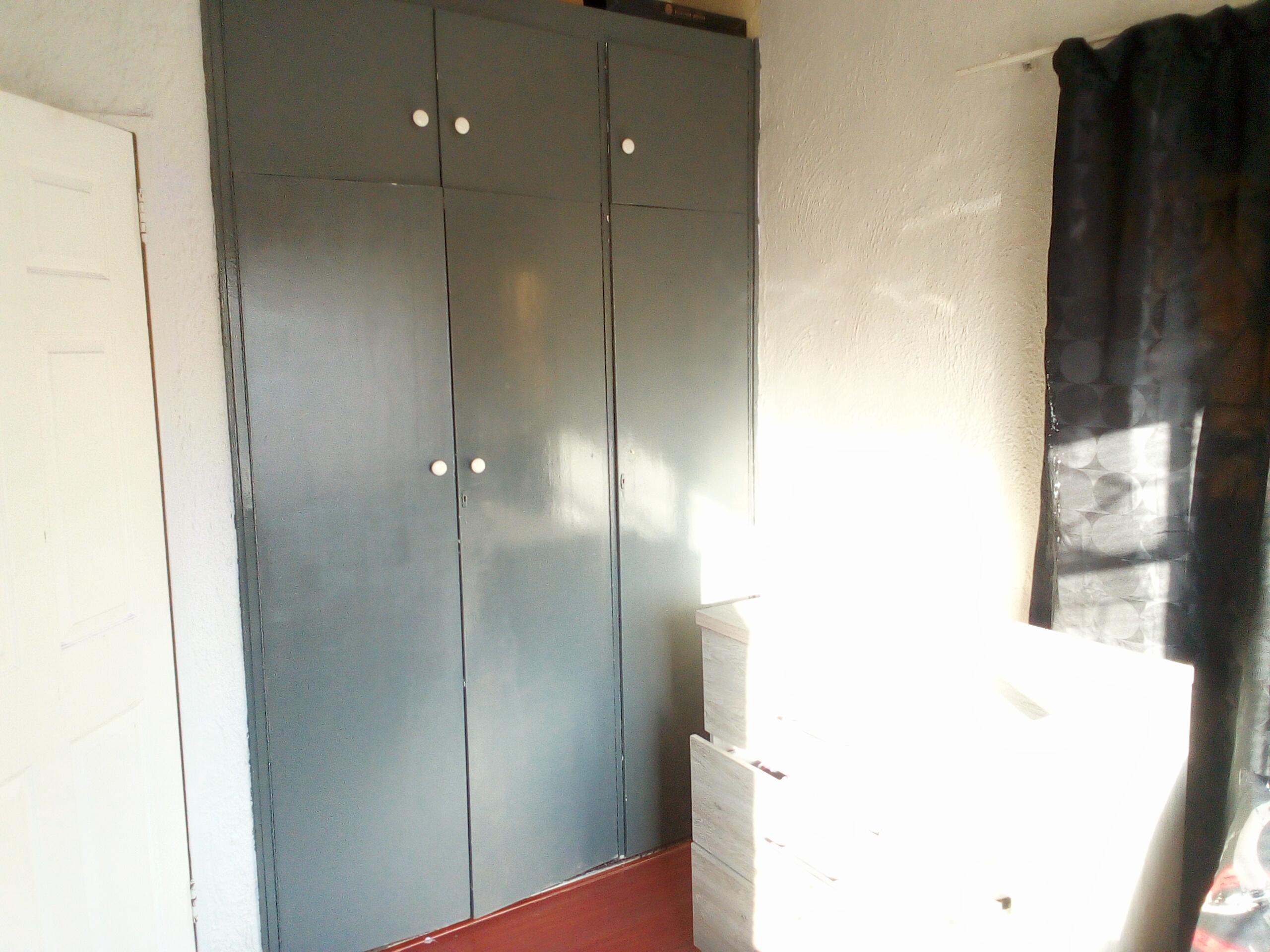 Kitchen with fitted cupboards and space for appliances
