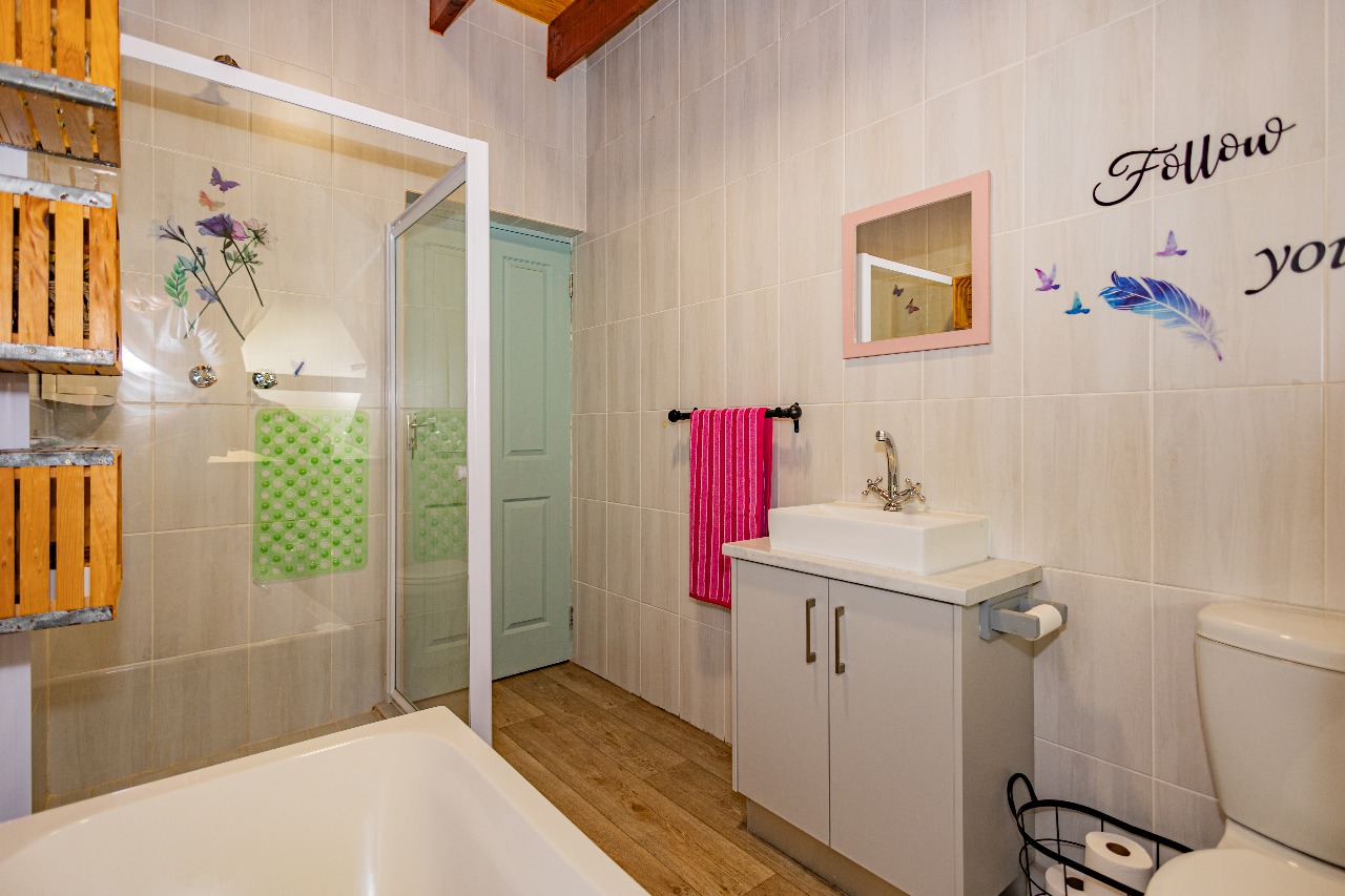 An open-plan lounge and kitchen create a warm, inviting atmosphere, seamlessly complemented by a built-in braai and dining area ideal for effortless entertaining. The main bedroom includes an en-suite bathroom, while outside you’ll find a neat, low-maintenance garden offering a peaceful escape.