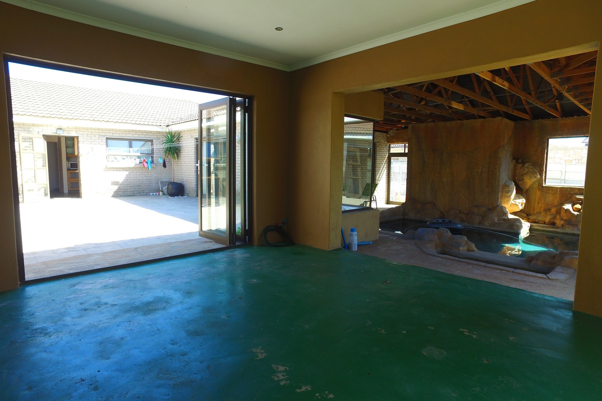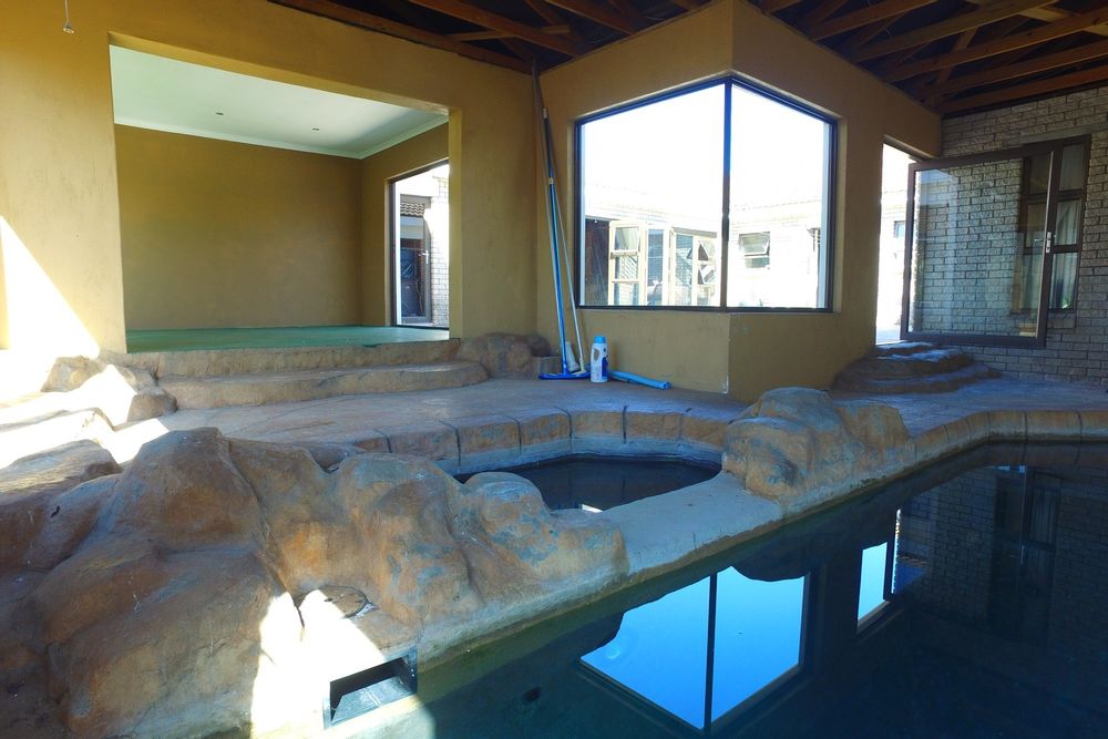 Price Reduced- The best buy at this price in Rouxville! Discover this exceptional 3-bedroom family home, now available for sale in the popular Old Rouxville neighbourhood of Kuilsriver. This property is perfect for families seeking a safe and tranquil environment, with large living spaces, which is ideal for the family who loves entertaining friends and family. This beautiful home, occupied by its first owner, offers a spacious layout all on a single floor. The interior boasts an entrance hall leading to a large lounge & separate dining room with bay windows that flood the space with natural light. Each of the three bedrooms features built-in closets and an en-suite bathroom in the master bedroom, ensuring privacy and convenience. The property also includes a family bathroom and guest toilet in the main house, as well as a guest bathroom in the under-cover Pool area. The indoor swimming pool area is the ideal setting for all your family gatherhings, as it links seamlessly to the massive entertainment lounge, braai room & court-yard. There is also an additional entertainment lounge with direct access to the Pool room. Additional features include a surveillance security system and alarm, solar heating (Pool), air conditioning, and a spacious storage room. Car enthusiasts will appreciate the 2-car garage with an automatic door and additional covered parking space for up to 8 vehicles. This home is ideally situated on a quiet road near schools, shopping malls, a children's park, a medical center, and a shopping mall. Golf enthusiasts will love the proximity to a nearby golf course & pets are welcome, making this the perfect family home. Don't miss this opportunity to own a safe, and conveniently located property in Rouxville, Kuilsriver. Contact me today to schedule a viewing!