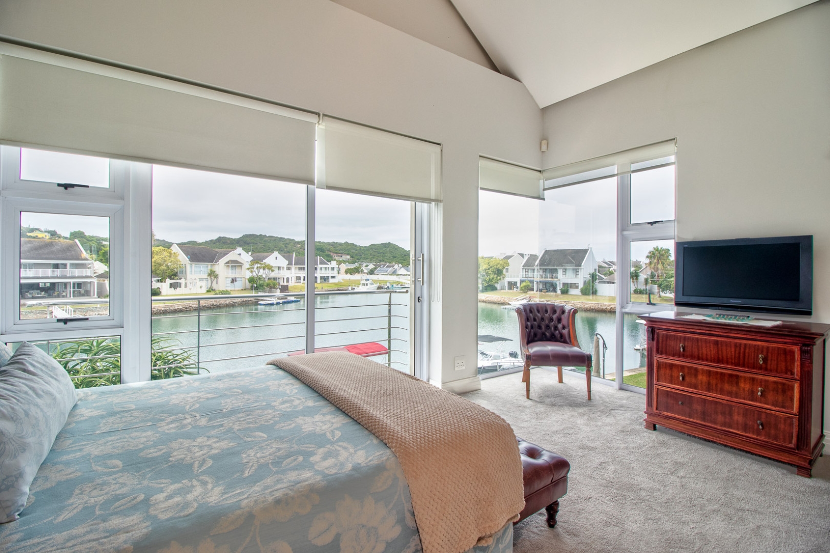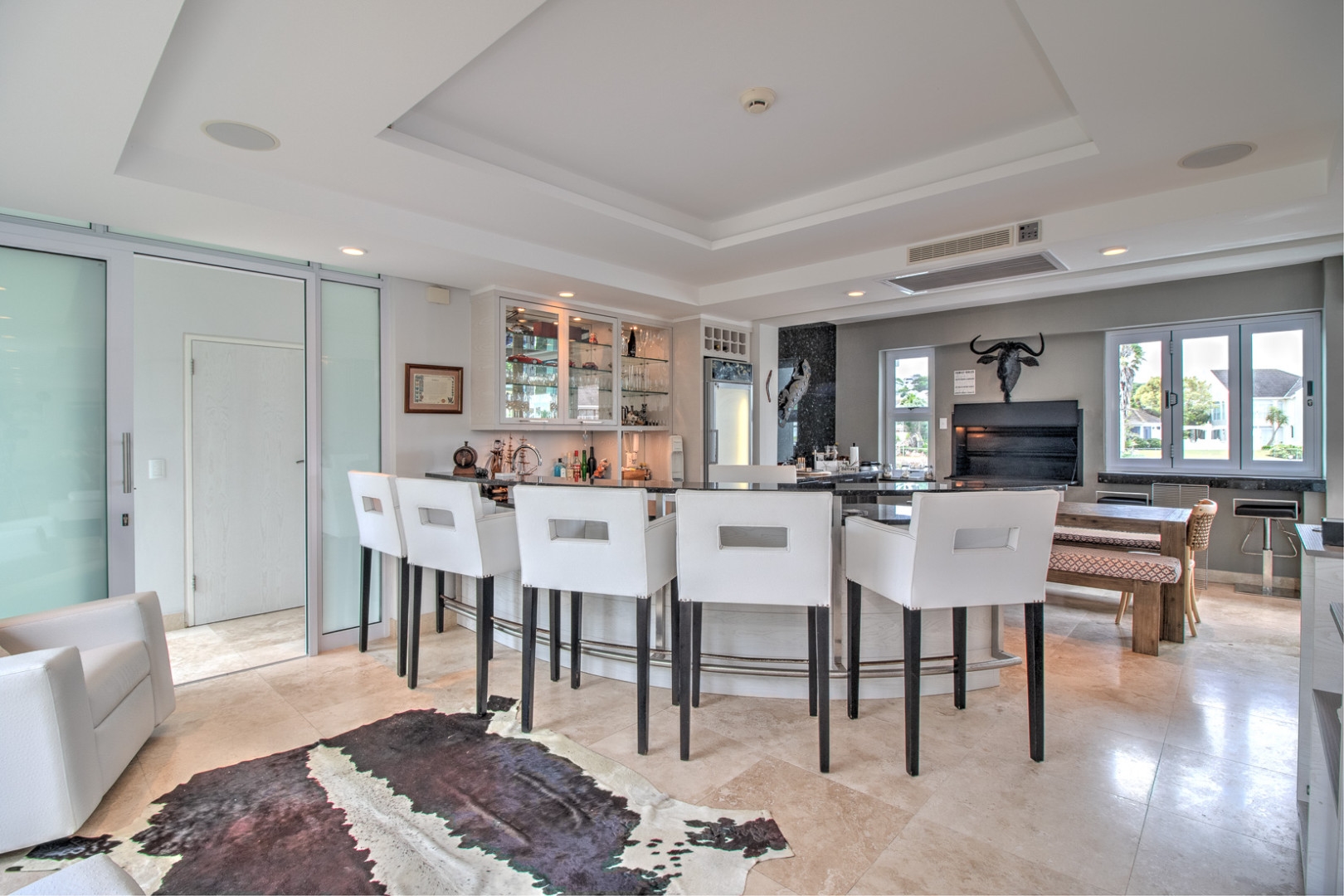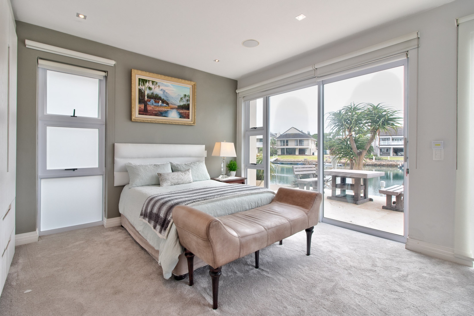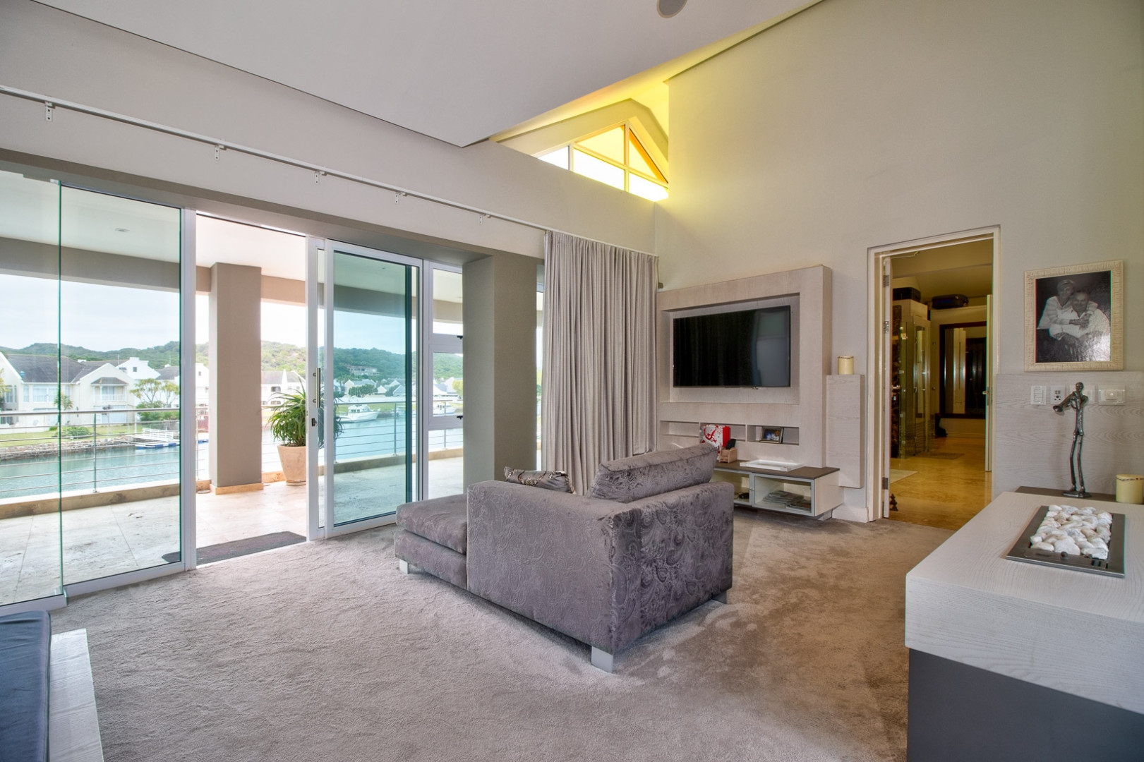 This luxurious home is located in the secure location of the prestigious Royal Alfred Marina. The upmarket finishes throughout this home are striking and visibly pleasing, modern and trendy. This architectural masterpiece exudes style and charm yet makes for easy family living and entertaining. The upmarket quality finishes are very apparent as you enter the home through an imported crafted wooden front door imported from Zanzibar.