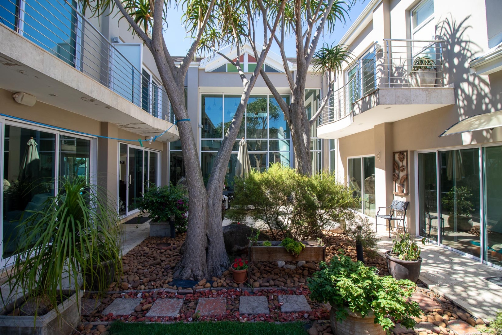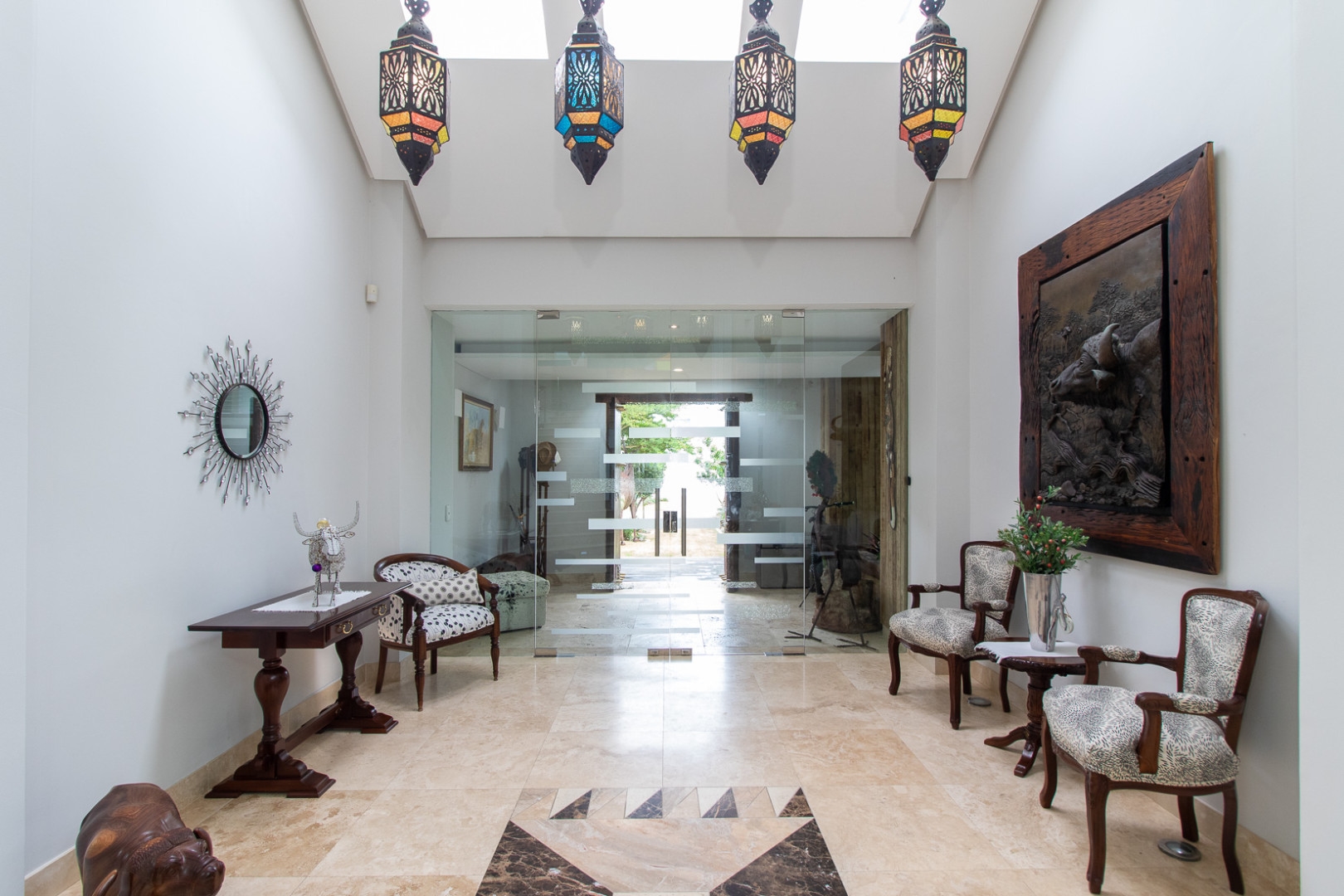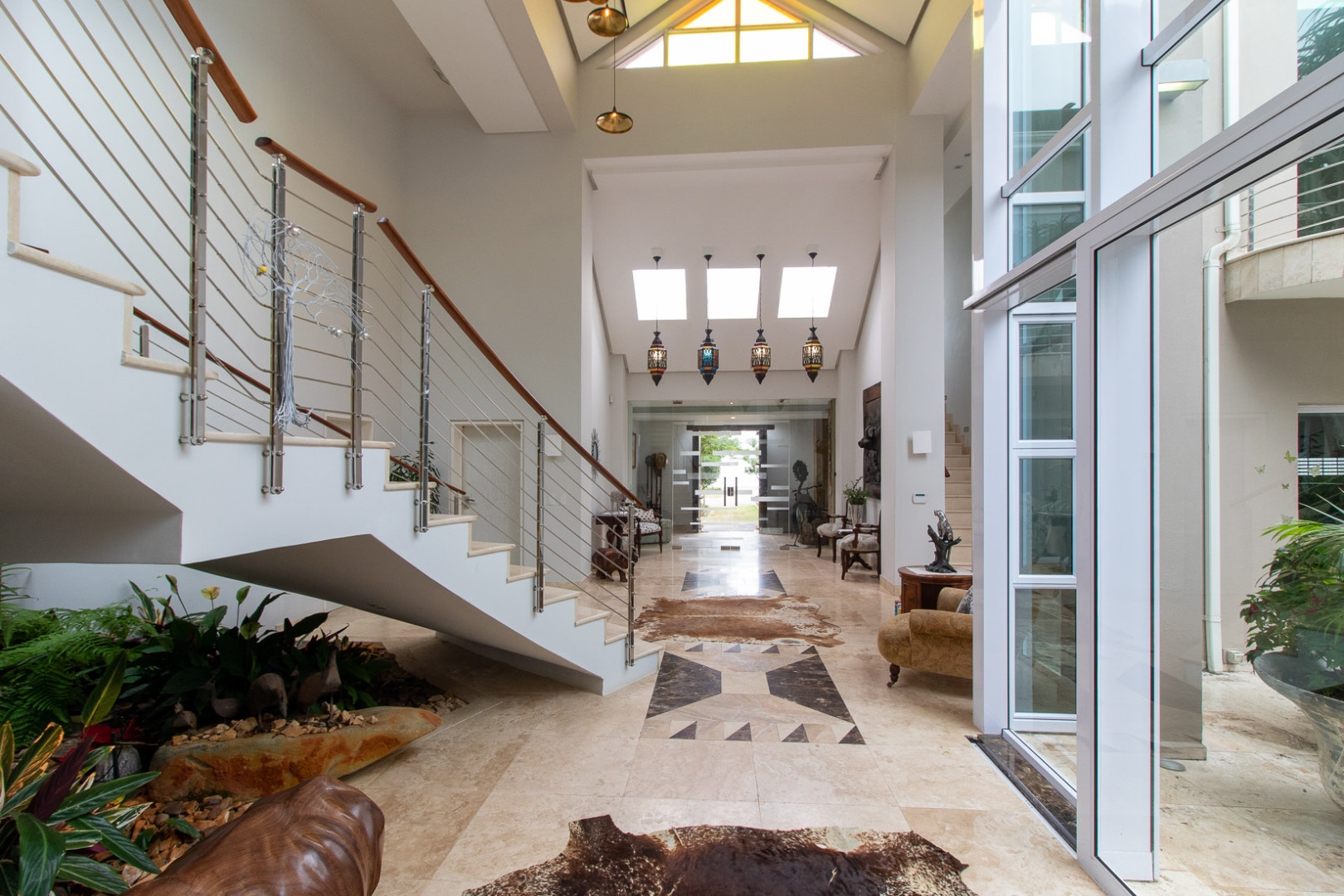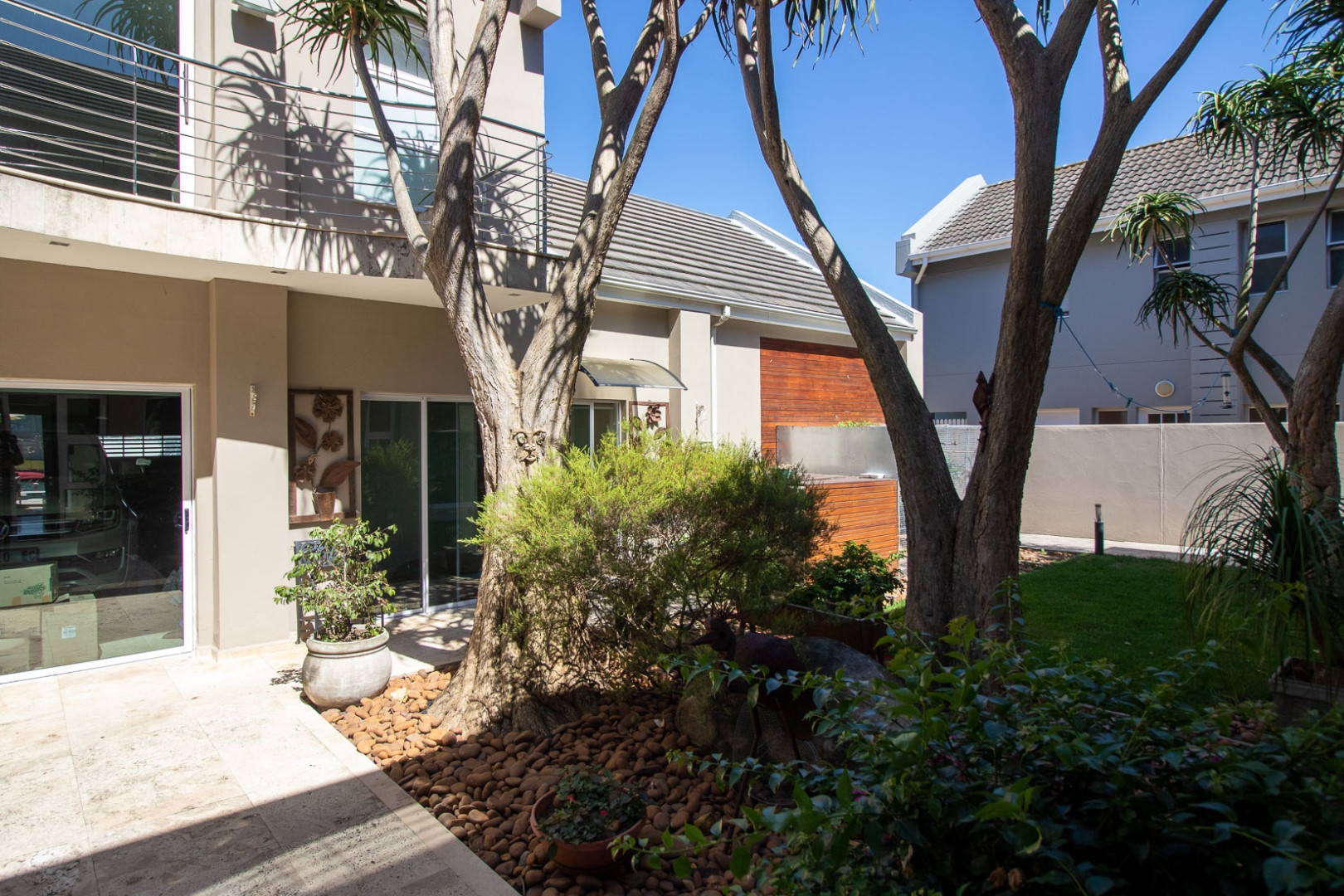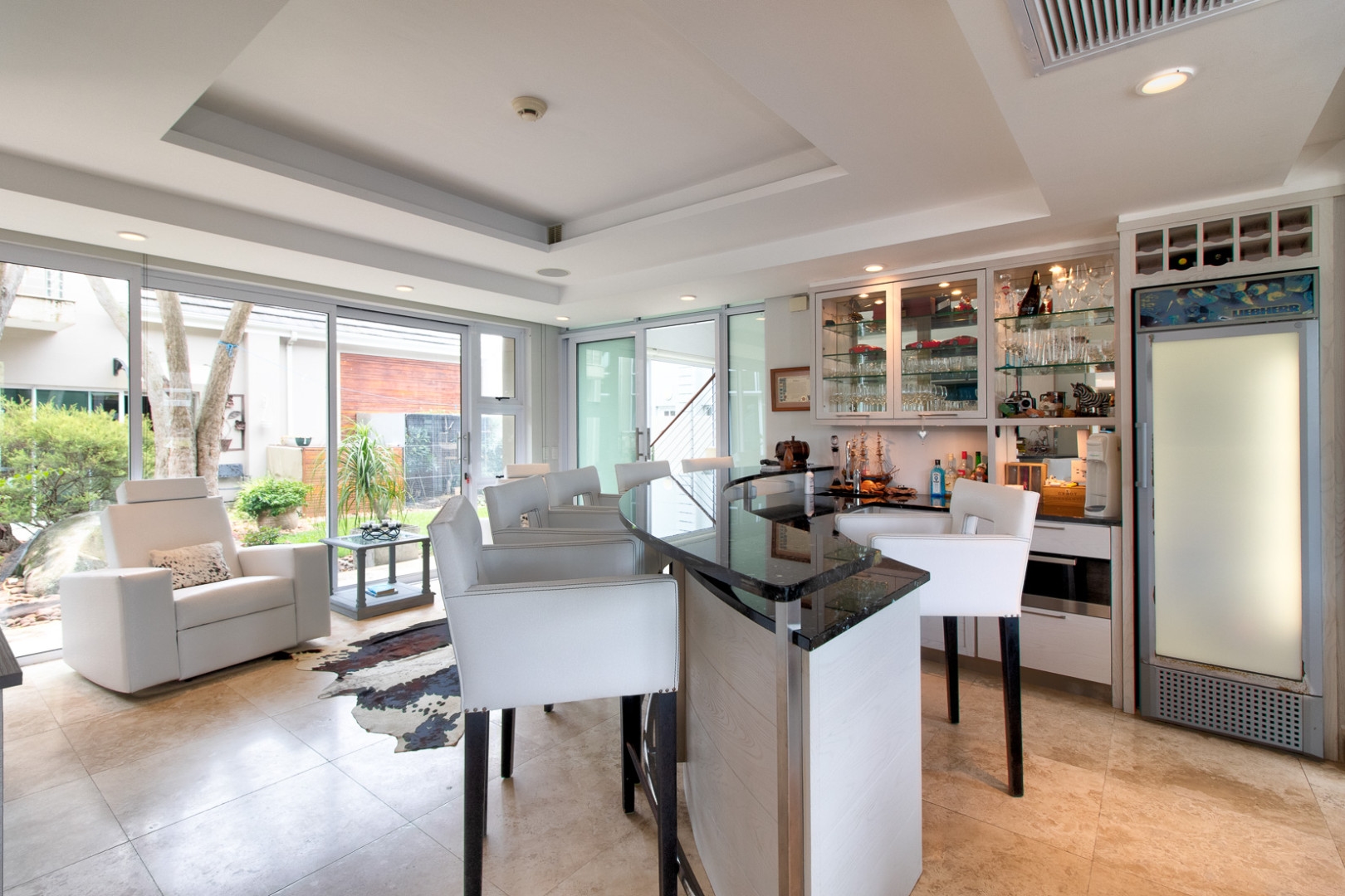This luxurious home is located in the secure location of the prestigious Royal Alfred Marina. The upmarket finishes throughout this home are striking and visibly pleasing, modern and trendy. This architectural masterpiece exudes style and charm yet makes for easy family living and entertaining. The upmarket quality finishes are very apparent as you enter the home through an imported crafted wooden front door imported from Zanzibar.