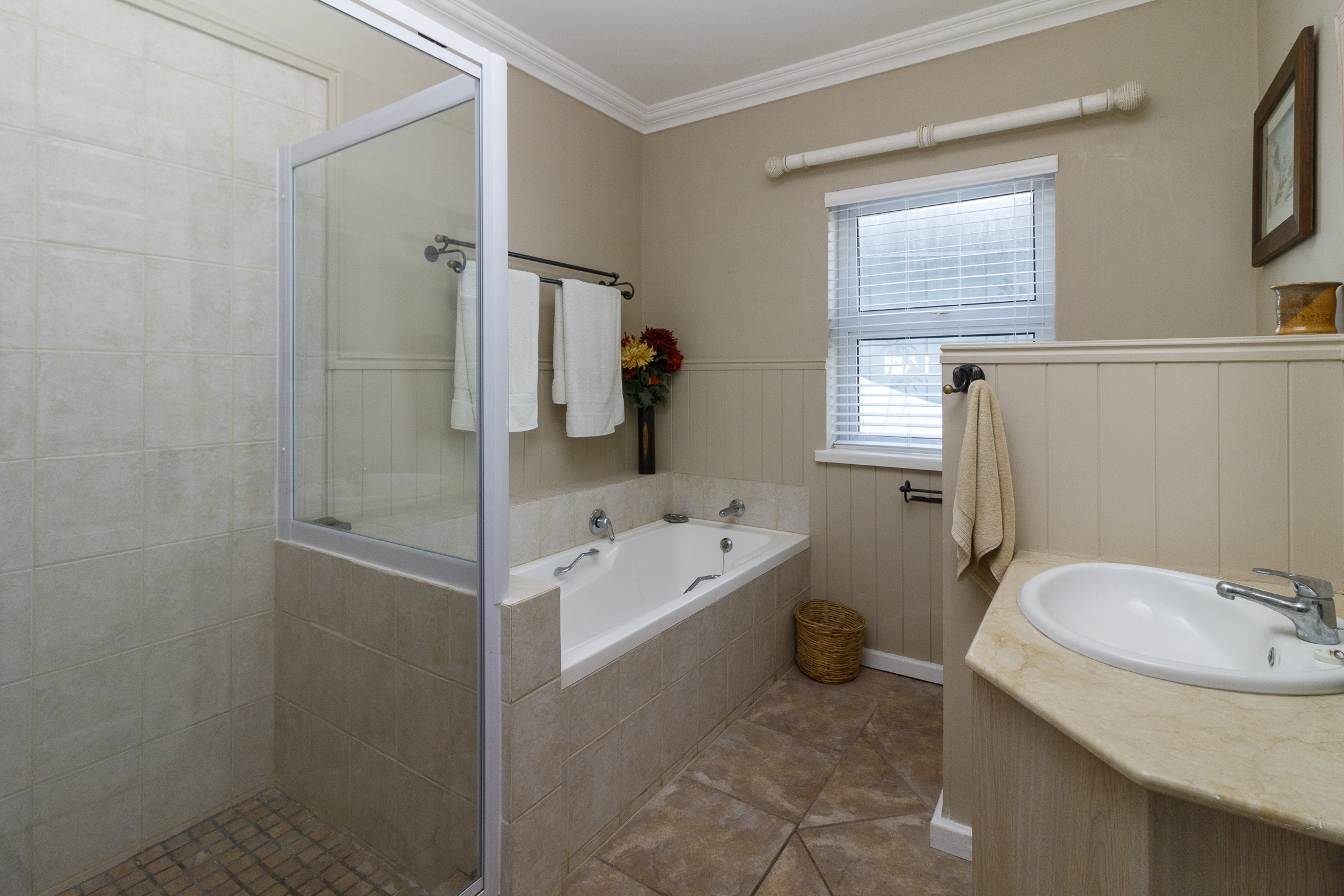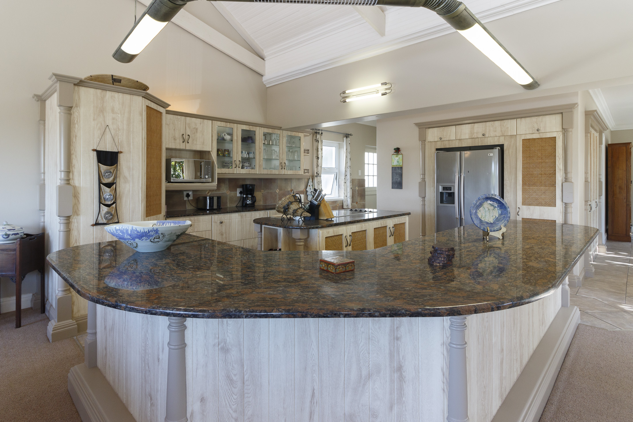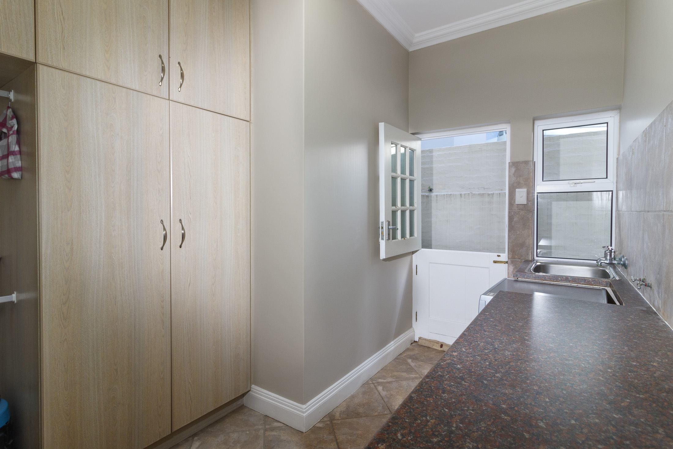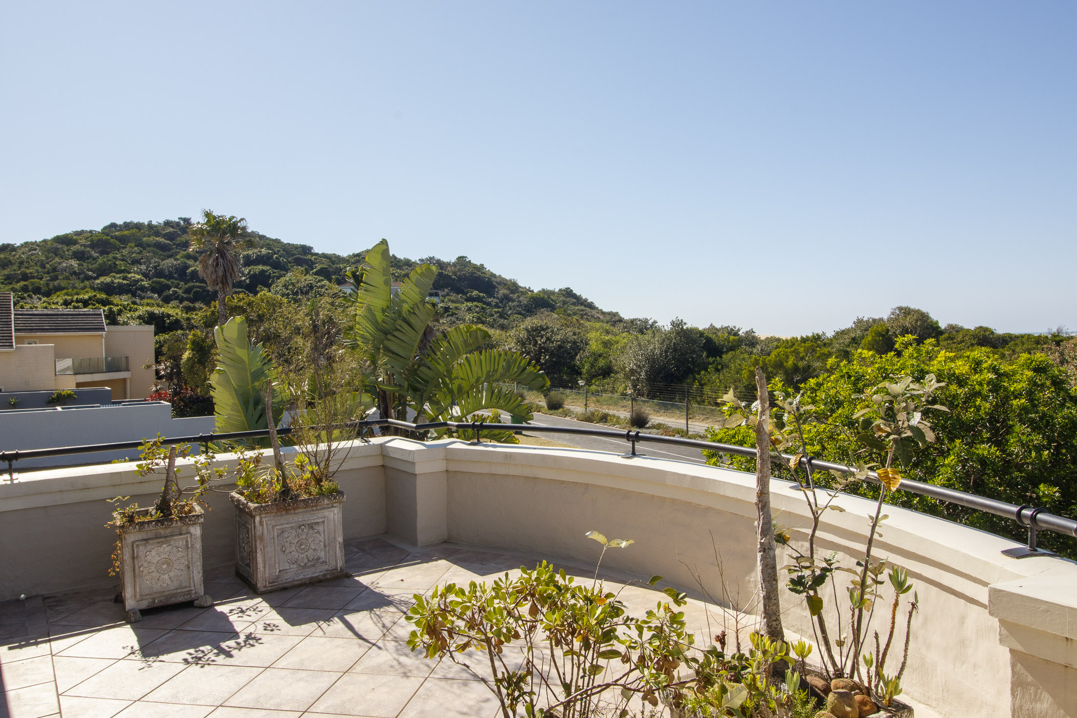 A sheltered, private courtyard beneath a magnificent milkwood tree provides an inviting space for outdoor gatherings, with easy access to the entertainment area and guest facilities.