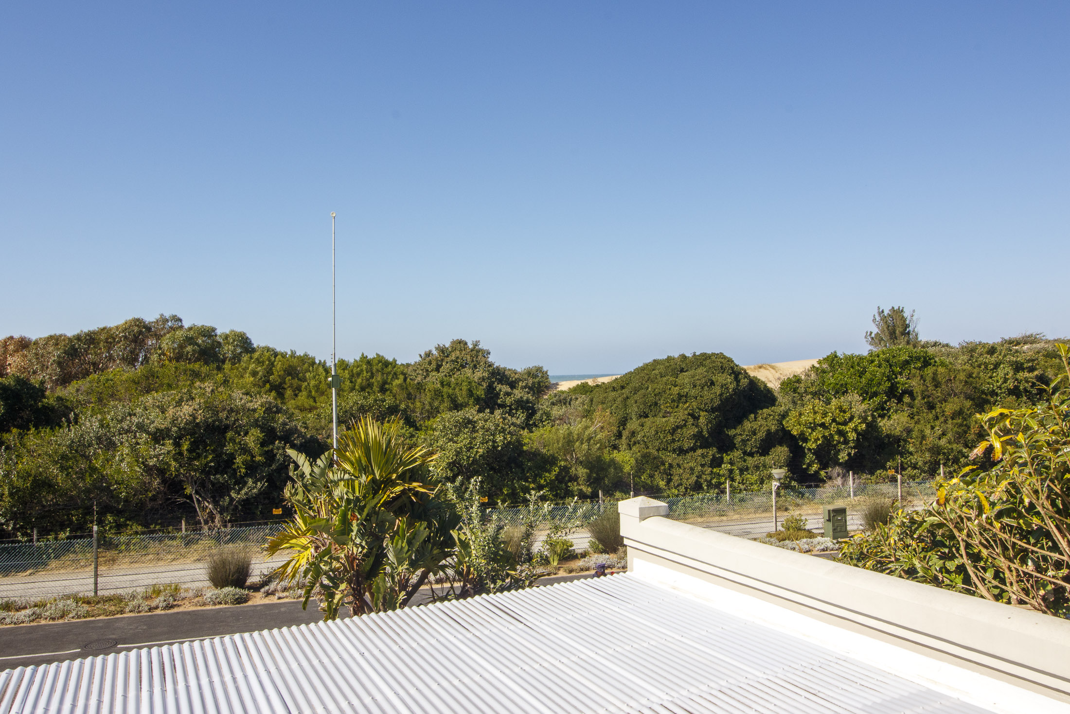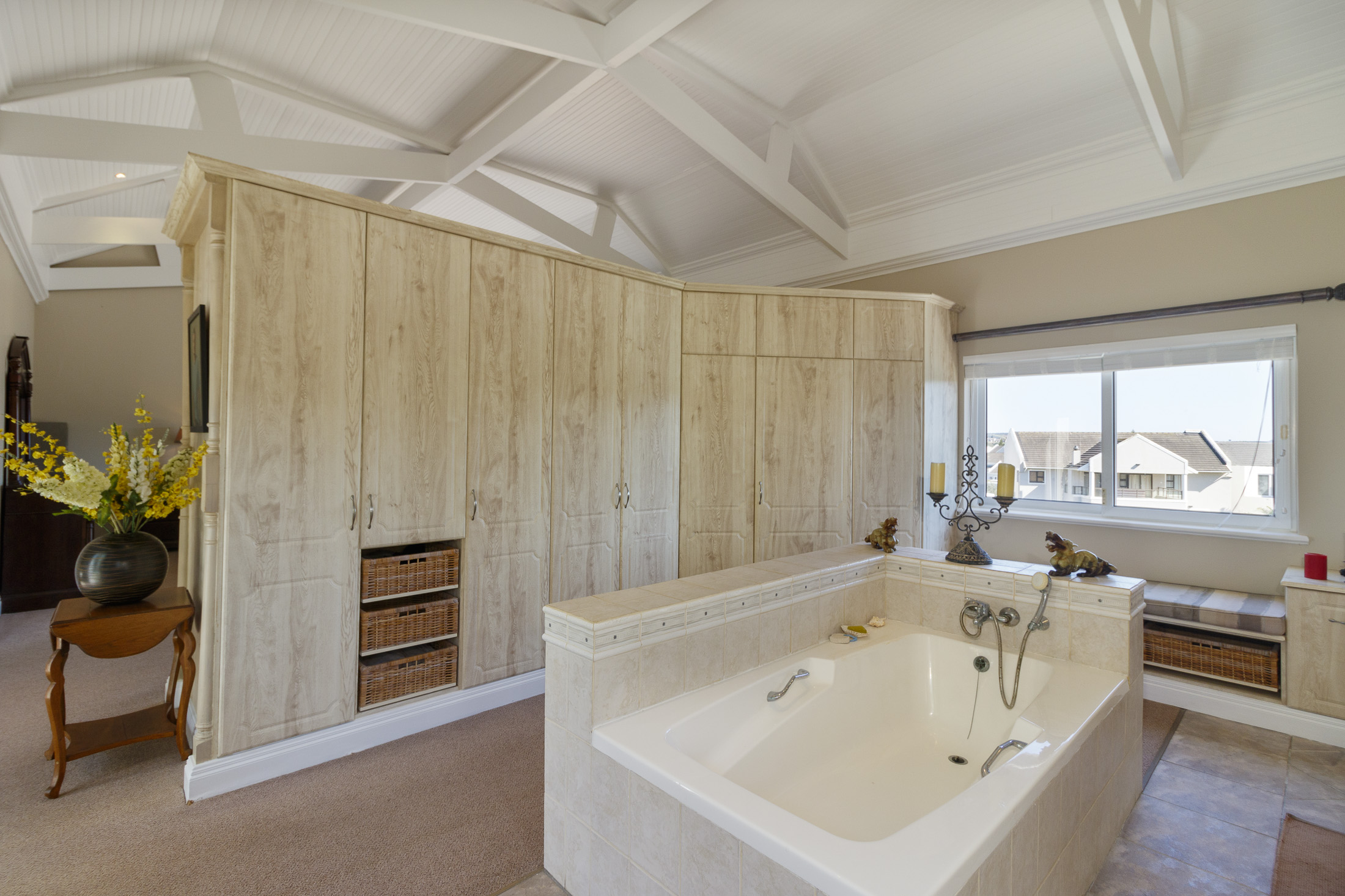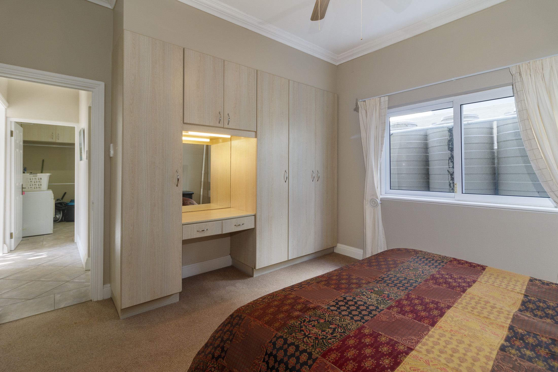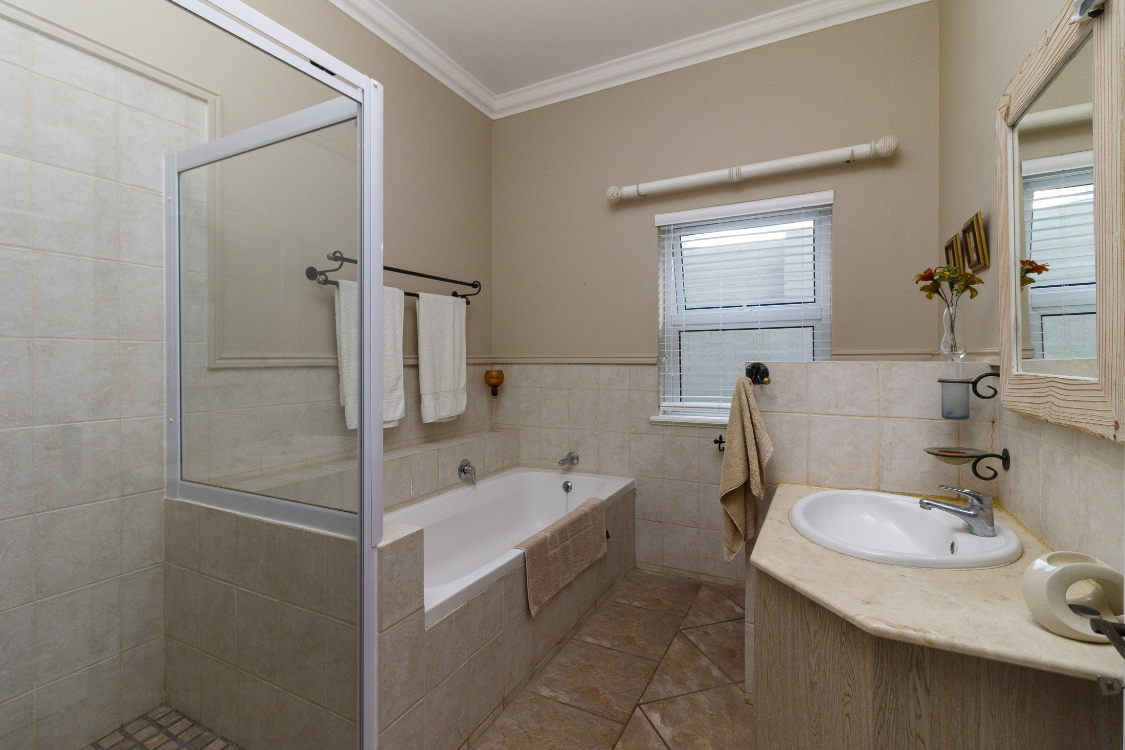 A sheltered, private courtyard beneath a magnificent milkwood tree provides an inviting space for outdoor gatherings, with easy access to the entertainment area and guest facilities.