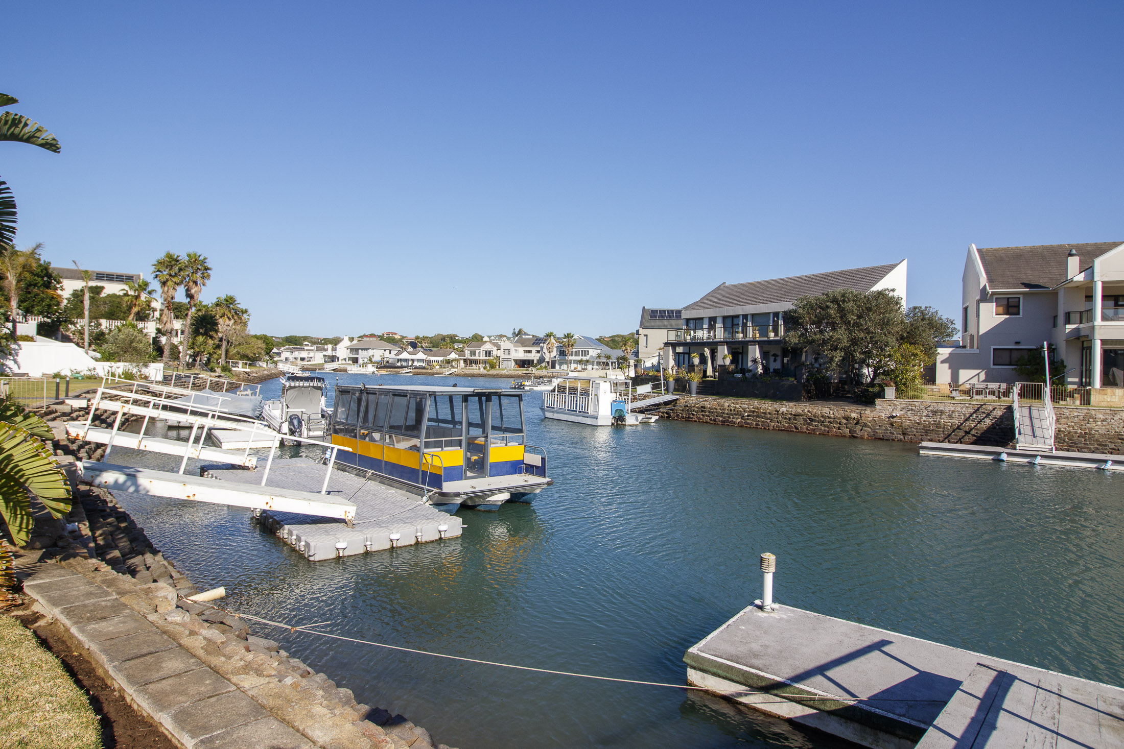 This exceptional six-bedroom residence is positioned on the prestigious Millionaires Row of the Royal Port Alfred Marina, offering uninterrupted views of both the river and the sea.