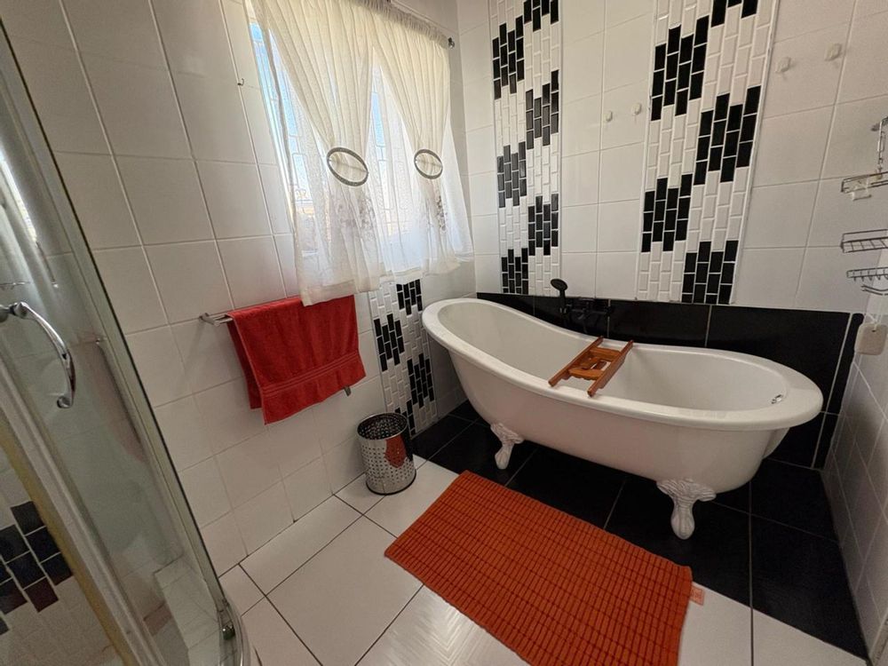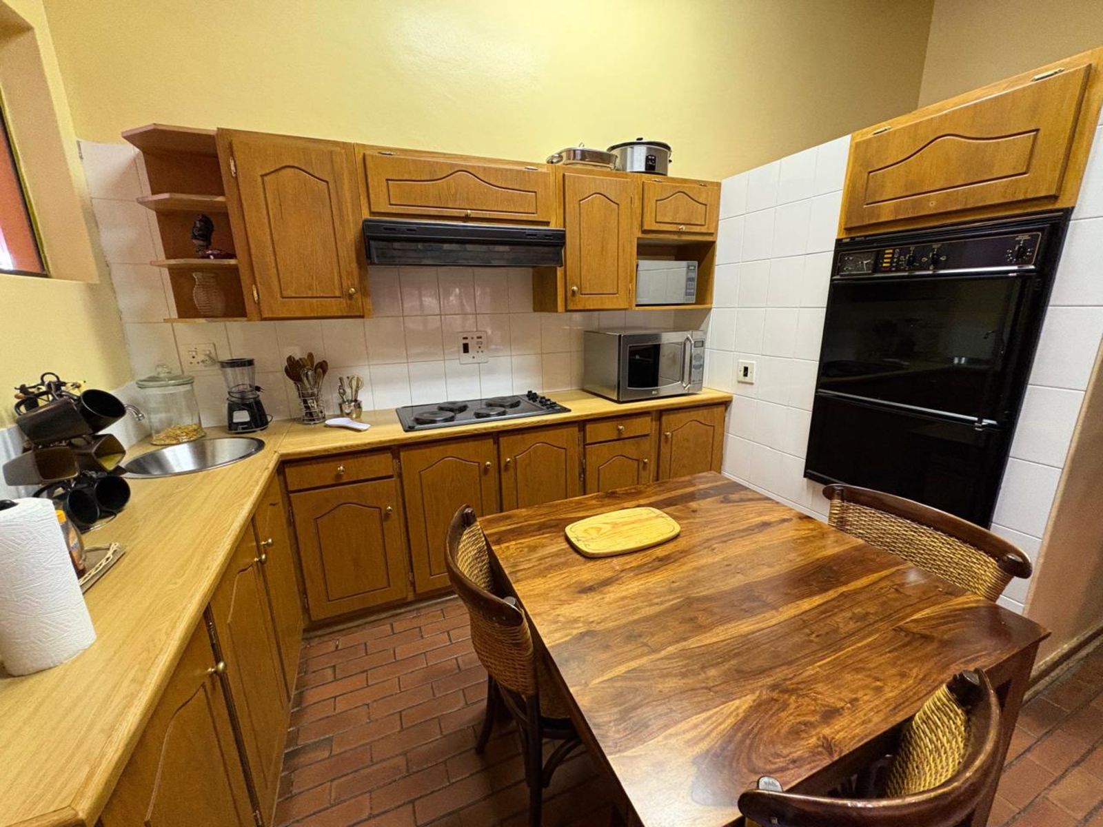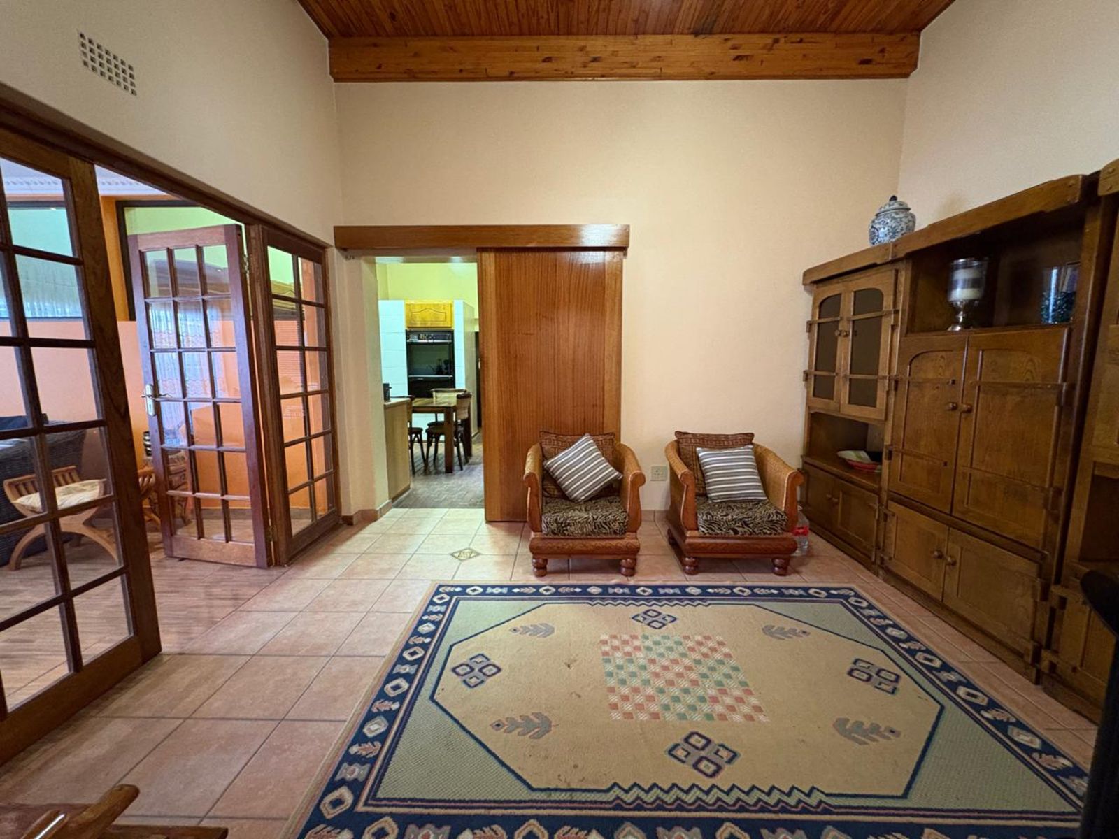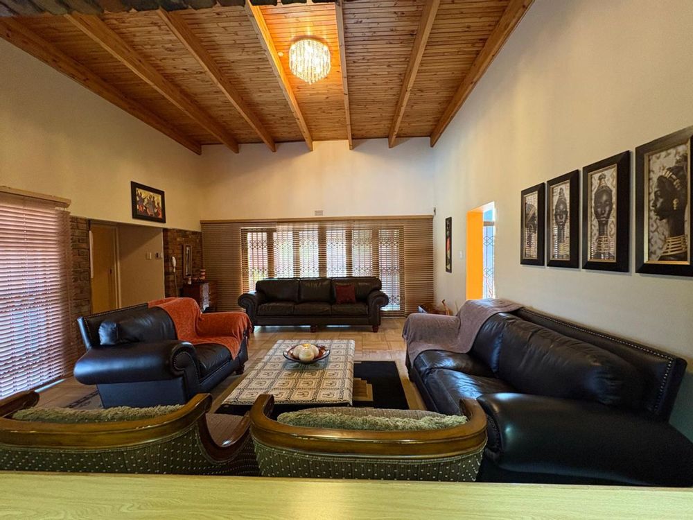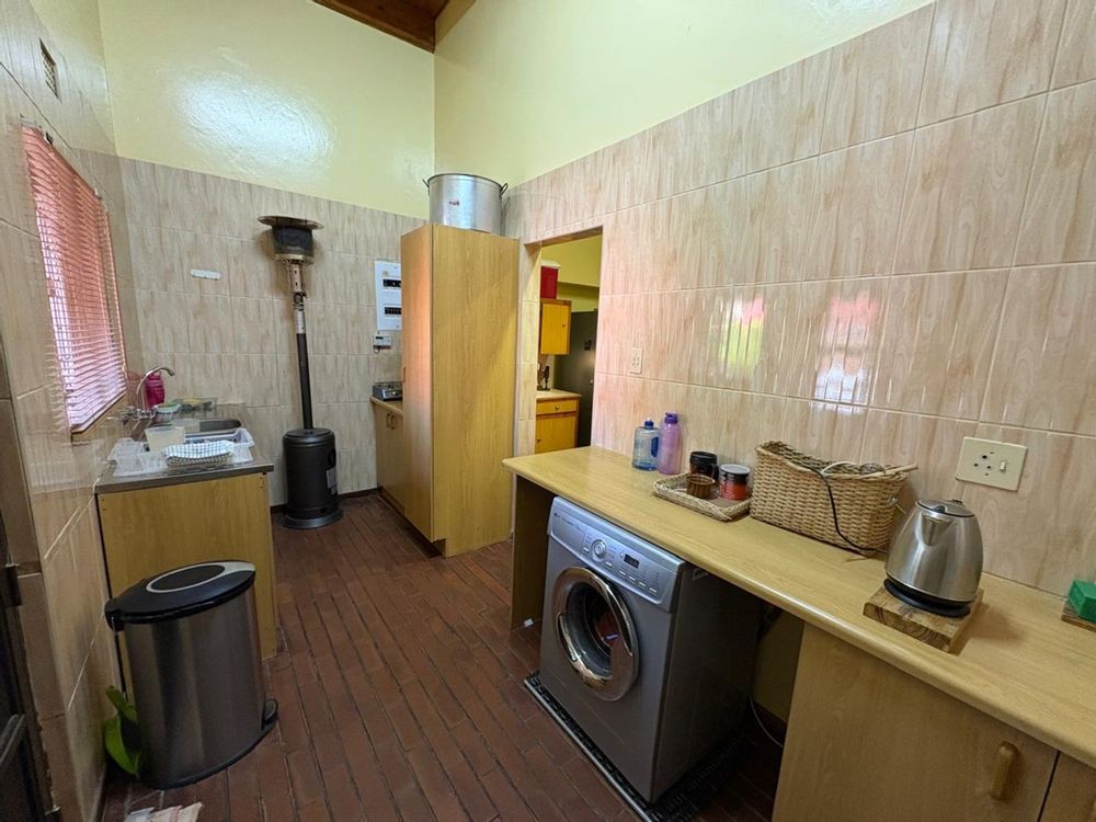 Outdoors, enjoy a beautifully landscaped garden with an irrigation system and a sparkling swimming pool – the perfect setting for relaxation or weekend gatherings. Additional features include staff accommodation, a double garage with electric doors, and a secure walled perimeter for added peace of mind.