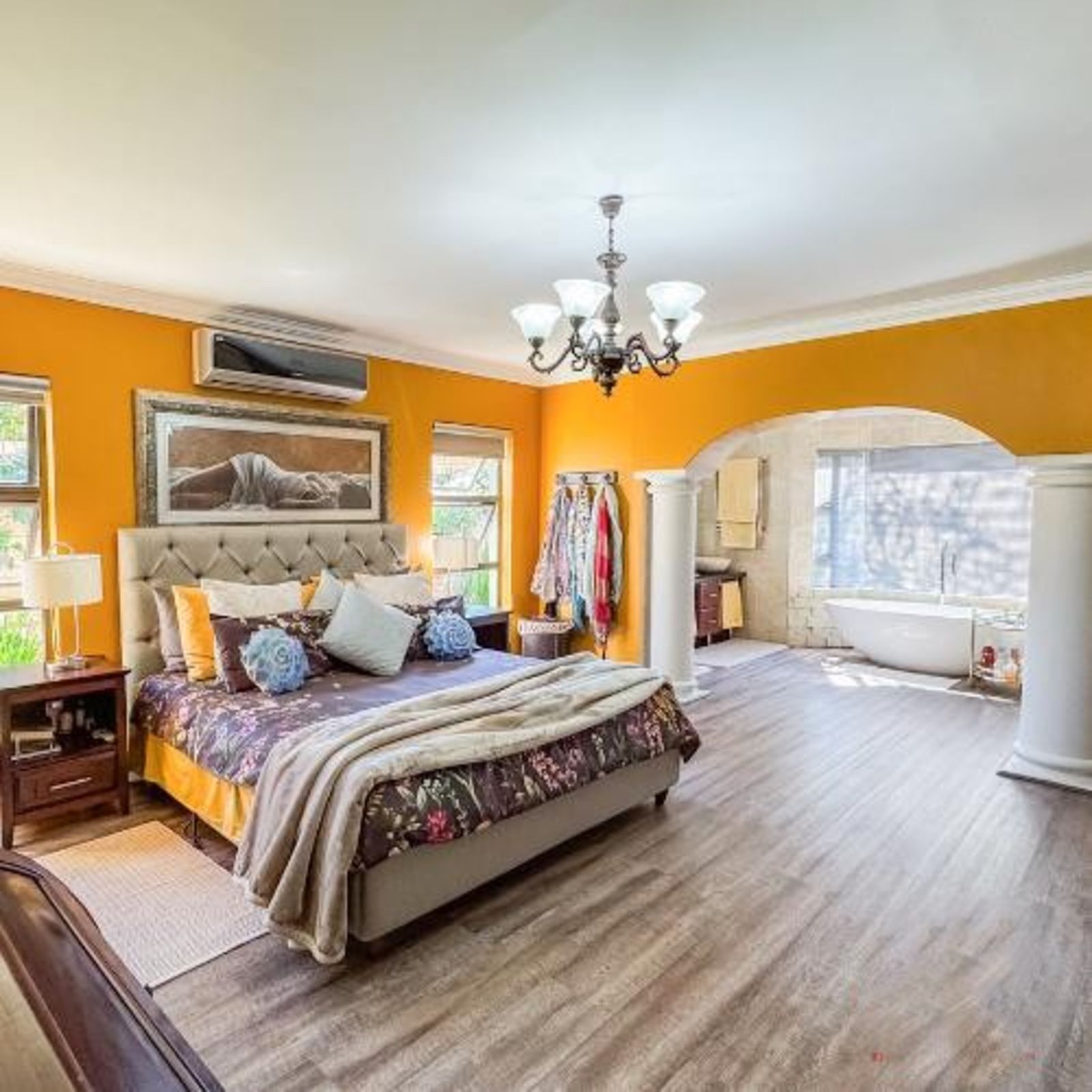A versatile bedroom with dressing room and unique bathroom — perfect as a main suite.