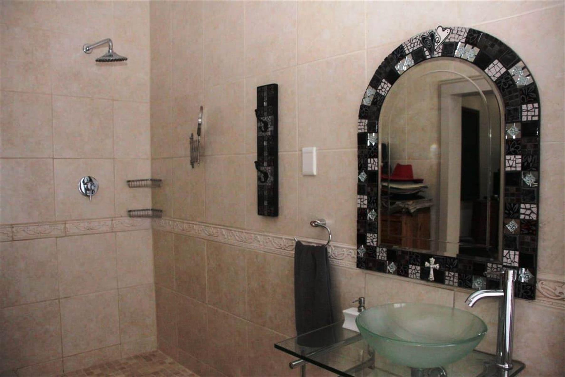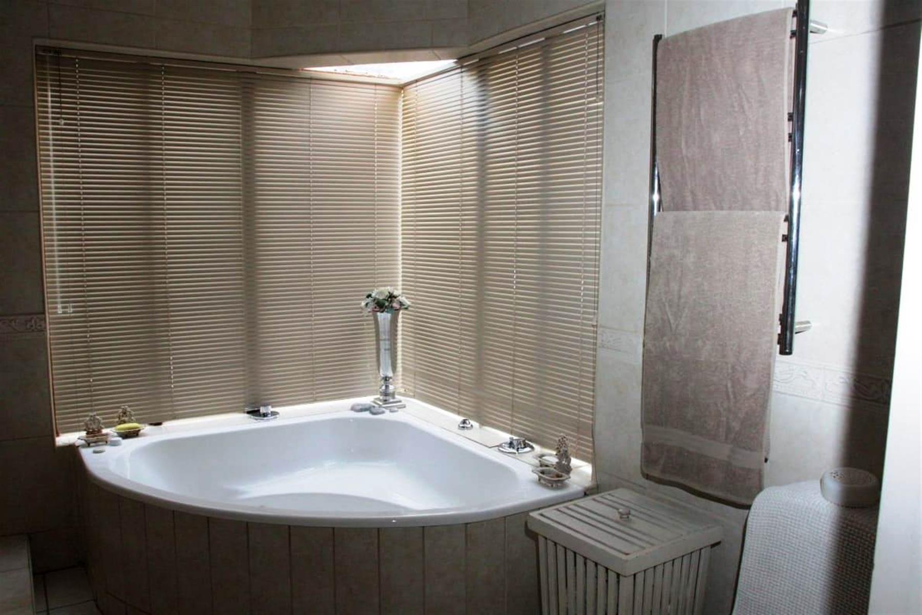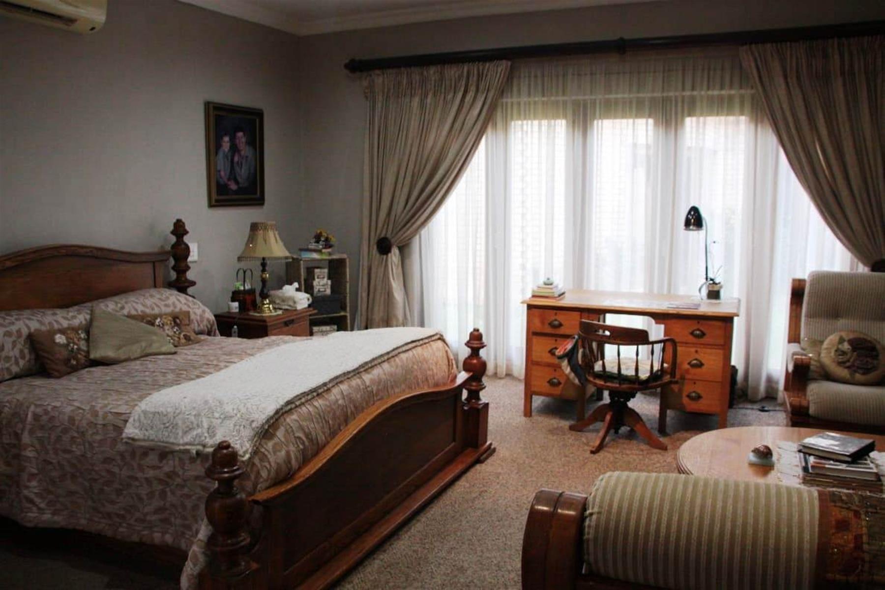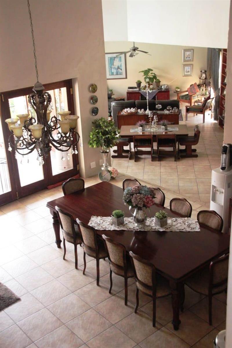 Step outside to a private oasis where indoor and outdoor living merge beautifully. The entertainment areas flow seamlessly onto a sparkling swimming pool with water features, surrounded by a landscaped garden with irrigation. Additional highlights include a Jacuzzi, indoor braai area, and multiple entertainment spaces ideal for hosting memorable gatherings.
