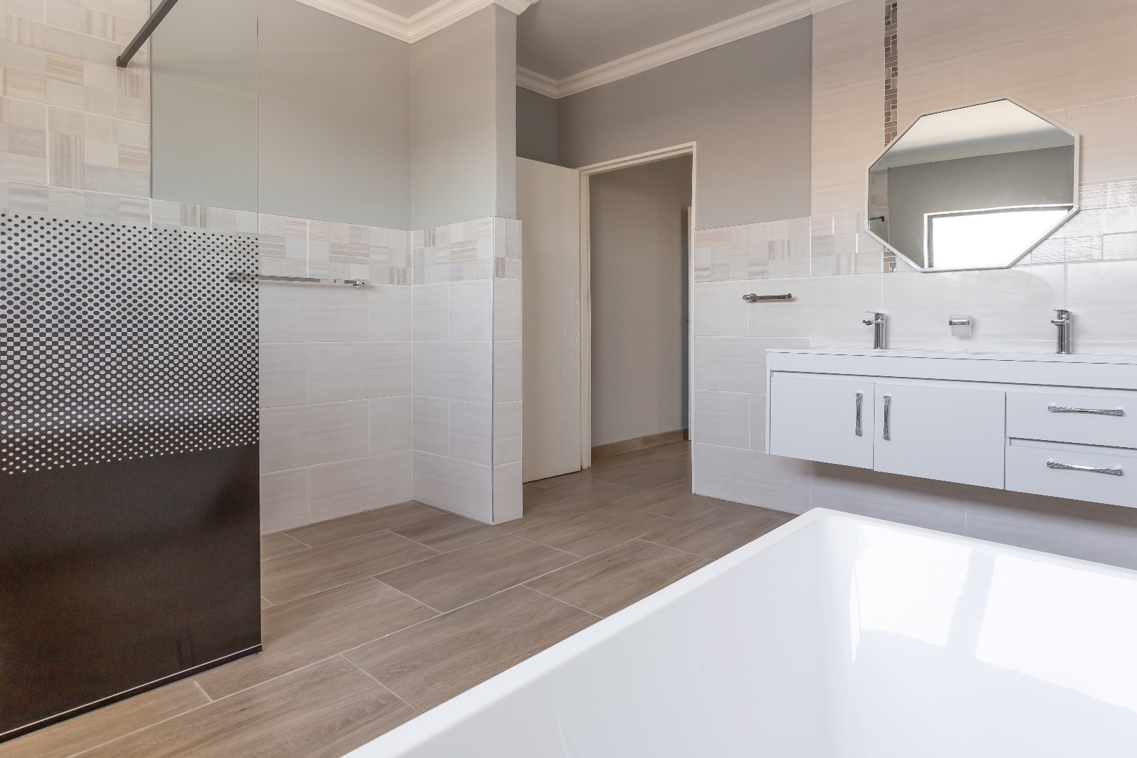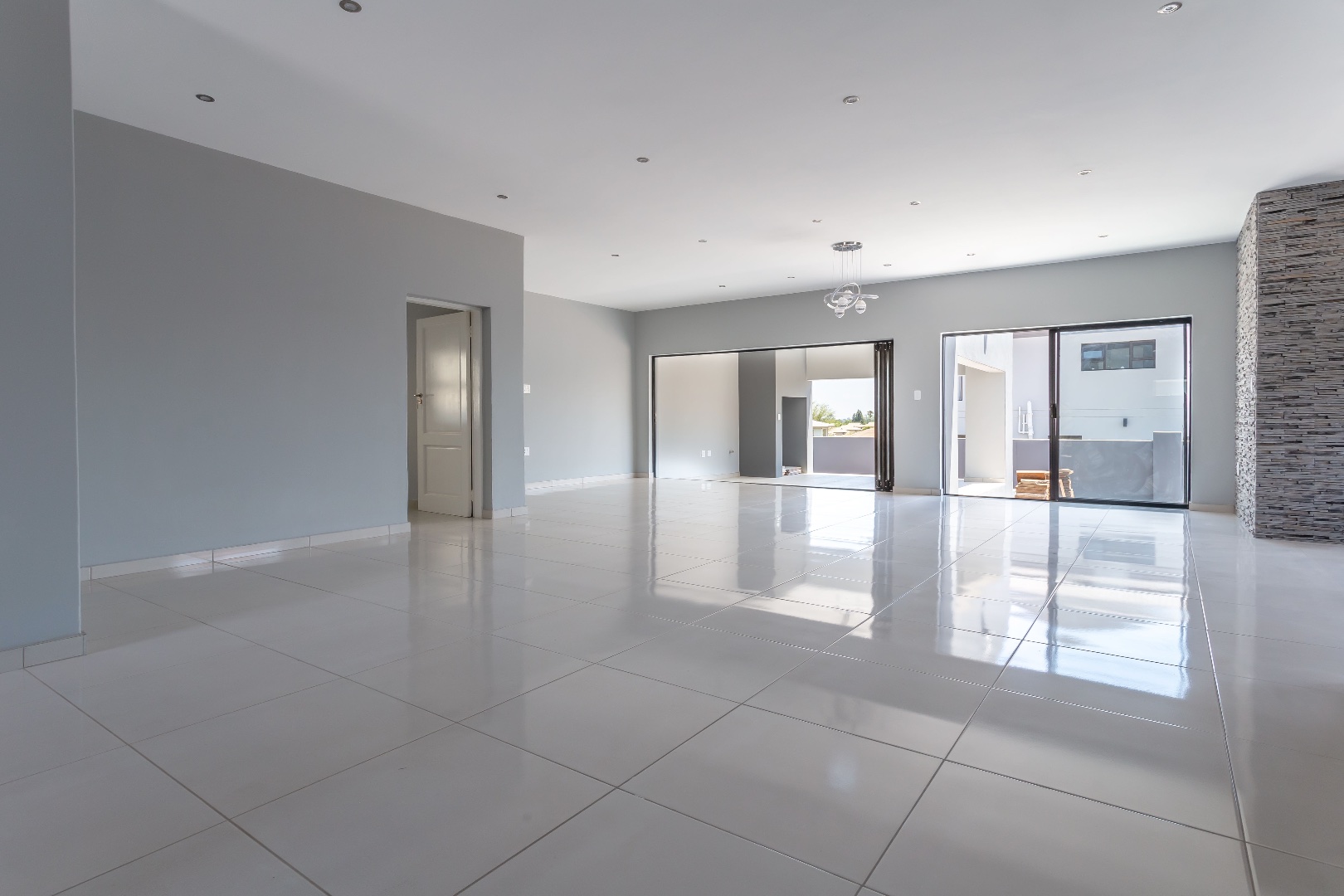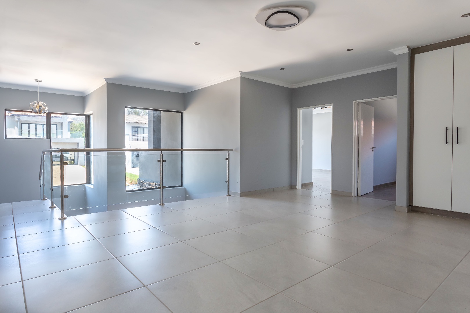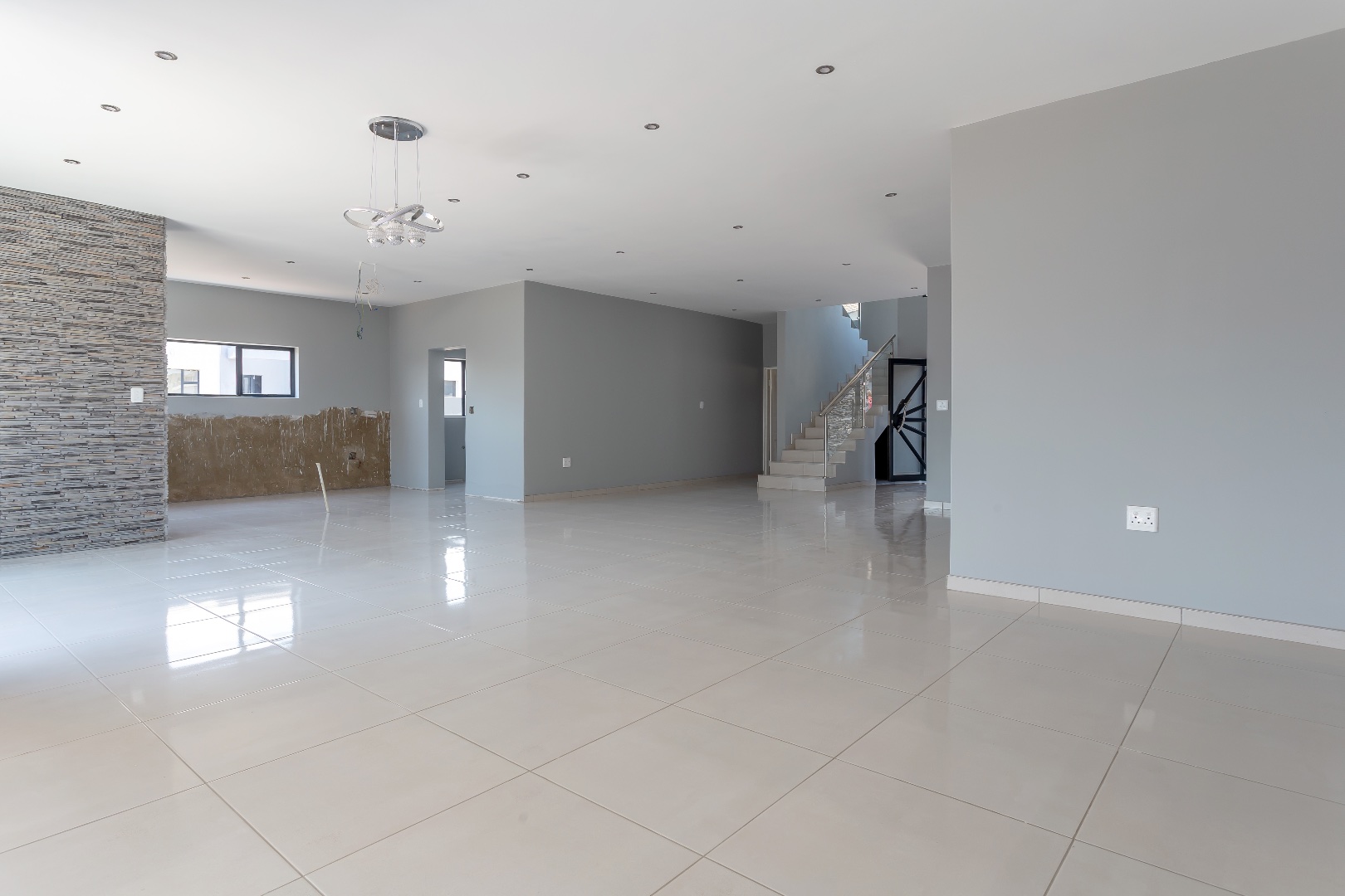 A striking double-volume entrance sets the tone for the expansive interiors. The home boasts tiles throughout and an enormous open-plan lounge, dining area, and kitchen, all flowing seamlessly onto an entertainer’s patio complete with a built-in braai. A private study leads off the living space, ideal for working from home, and a convenient guest bathroom adds to the practicality. The double garage offers direct entry into the home, ensuring security and ease.