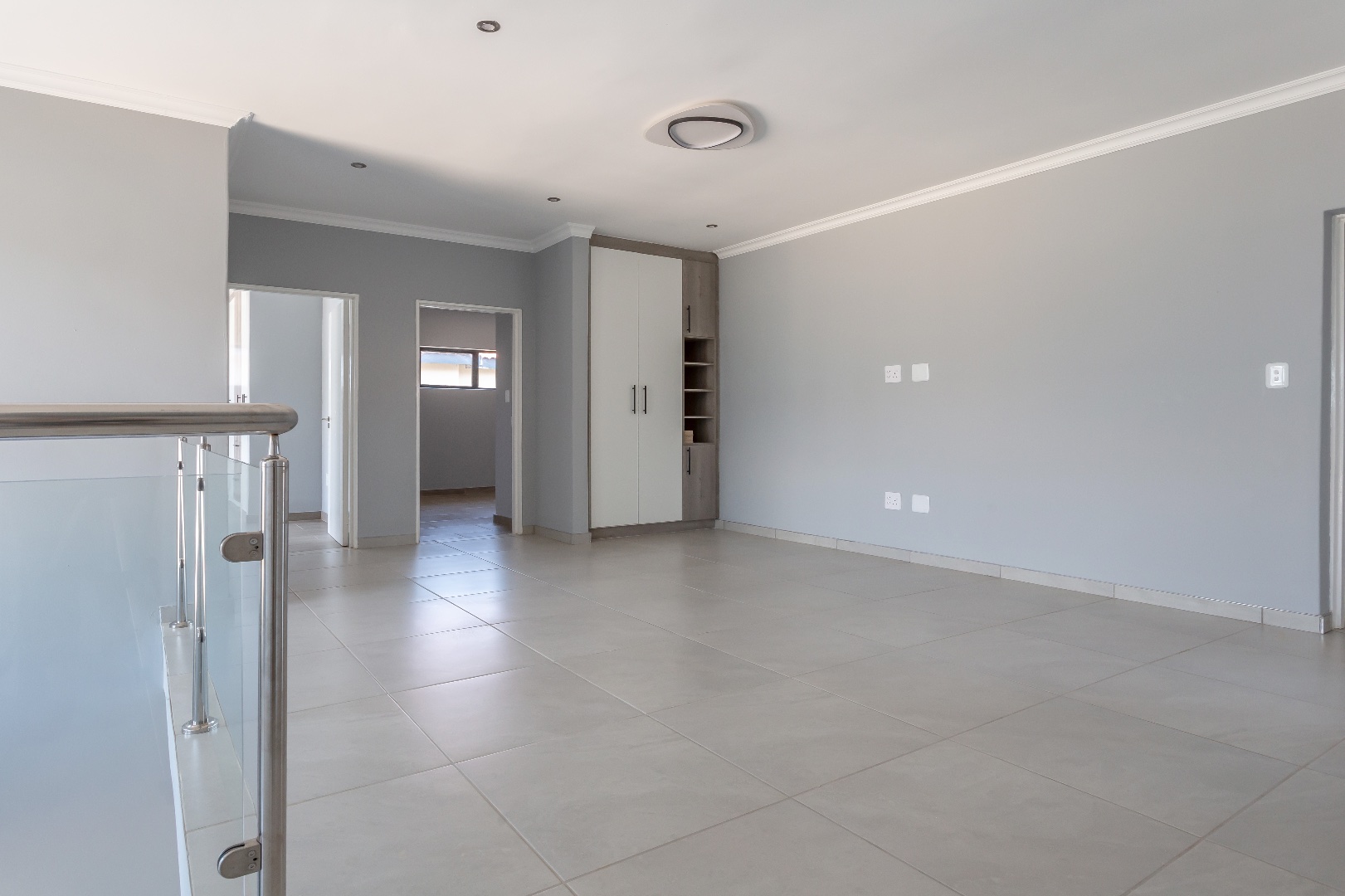 Upstairs, the home offers four generous bedrooms, thoughtfully designed for comfort. Three bedrooms feature en-suite bathrooms and balconies, while a further full guest bathroom caters to family and visitors. A cosy PJ lounge/landing provides additional relaxation space, and a storage cupboard ensures that organisation is effortless.