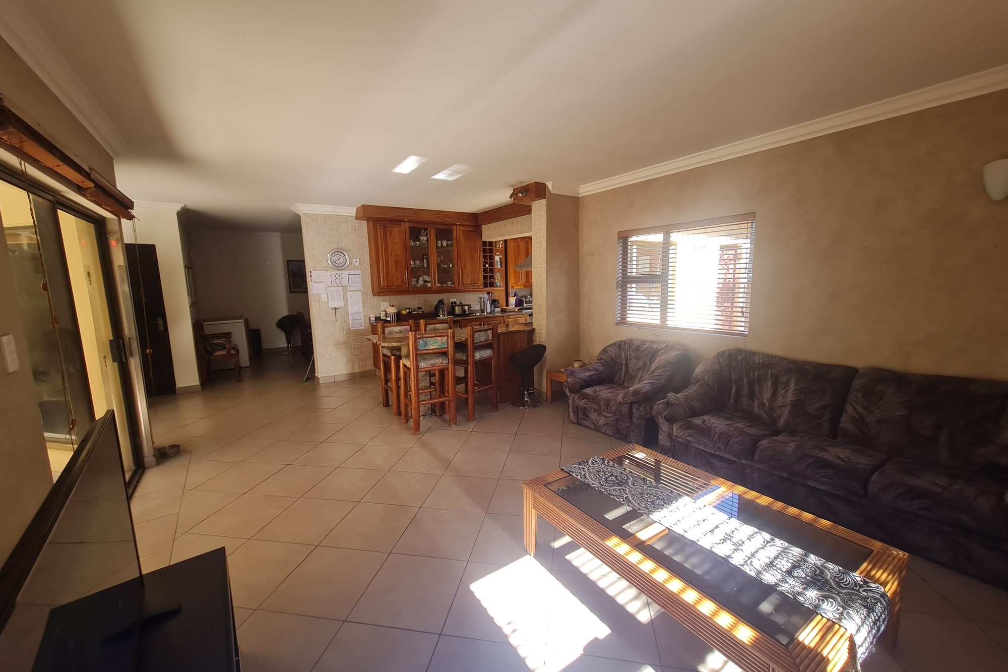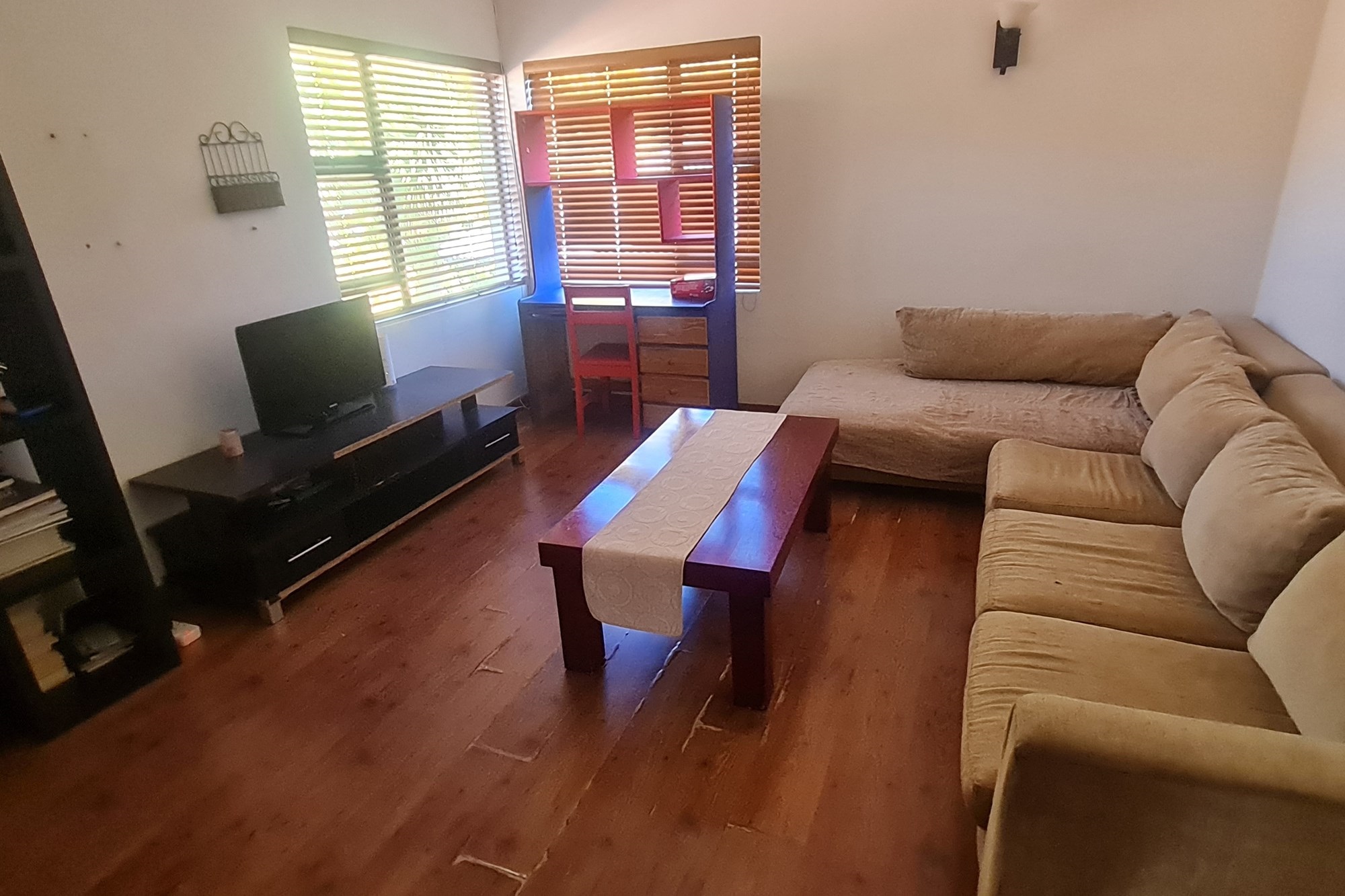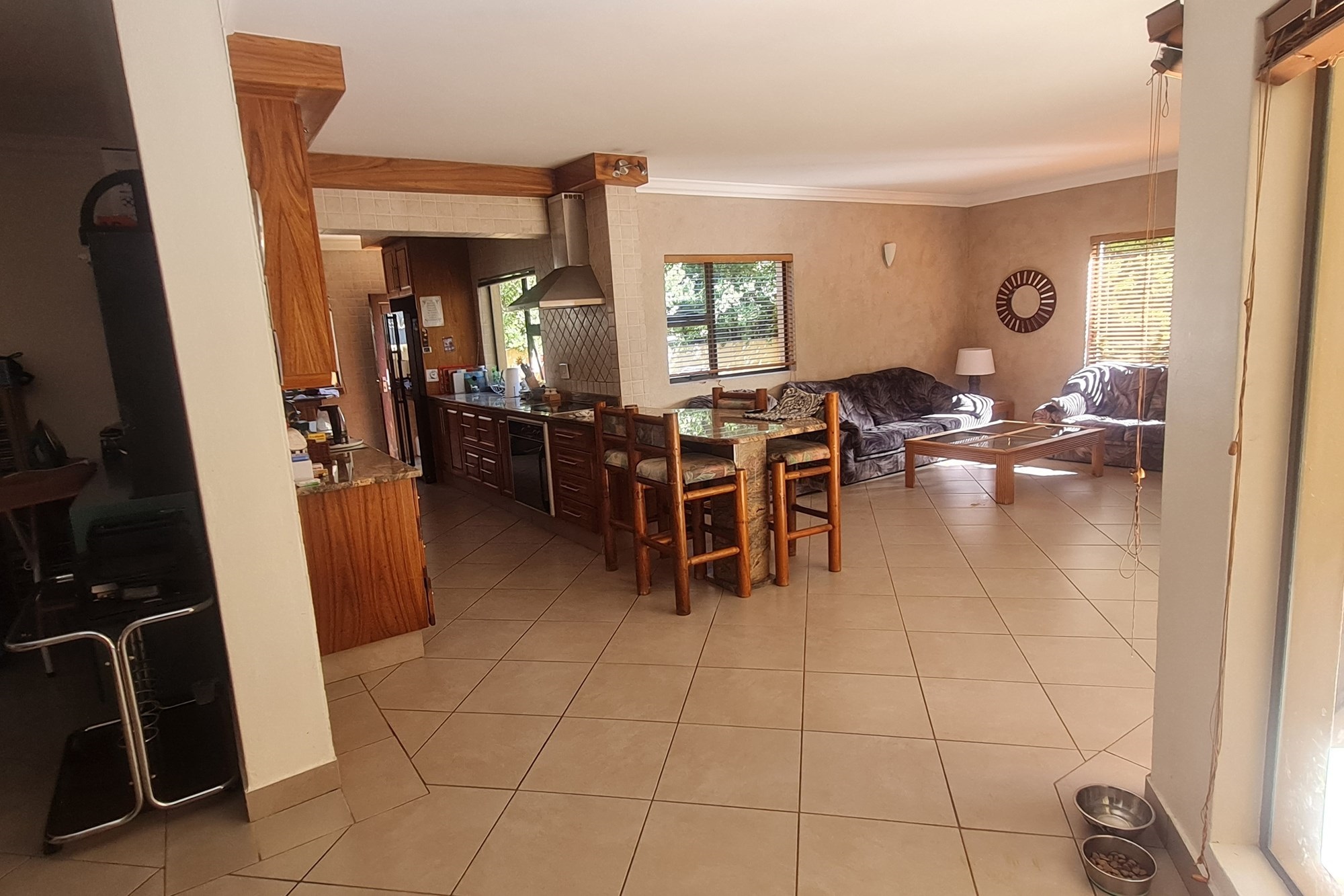 On entry you are welcomed by spacious open-plan living areas with a lounge, dining room and marvelous kitchen offering ample work and storage space, wooden cabinets, granite countertops, a hob and undercounter oven, space for a double-door fridge and wet appliances. On the left, you will find a guest bedroom and toilet as well as a light filled a TV/sunroom.