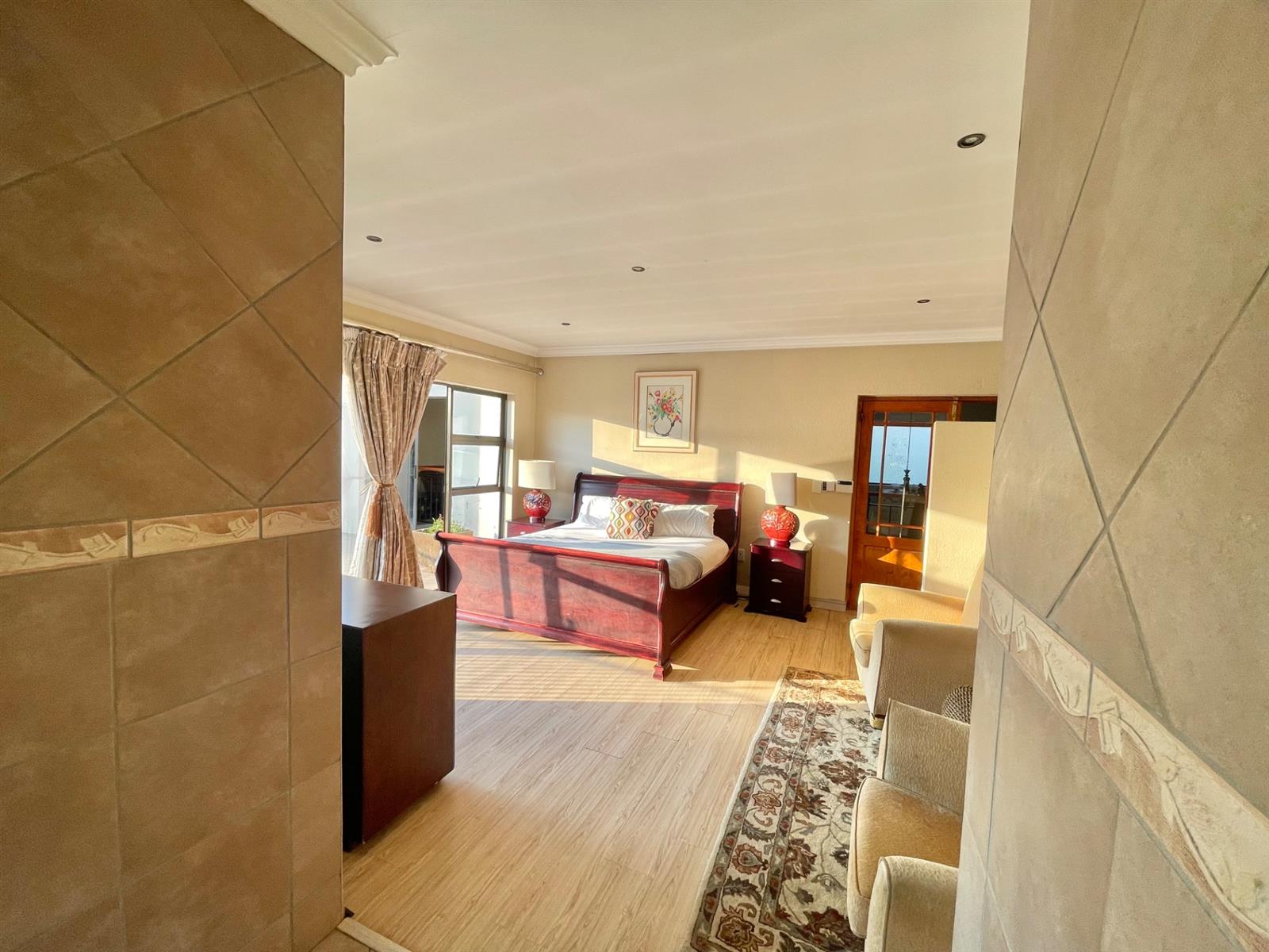 An enclosed braai room with stack doors opens onto a deck and sparkling swimming pool, creating the perfect indoor-outdoor entertainment space for summer living.