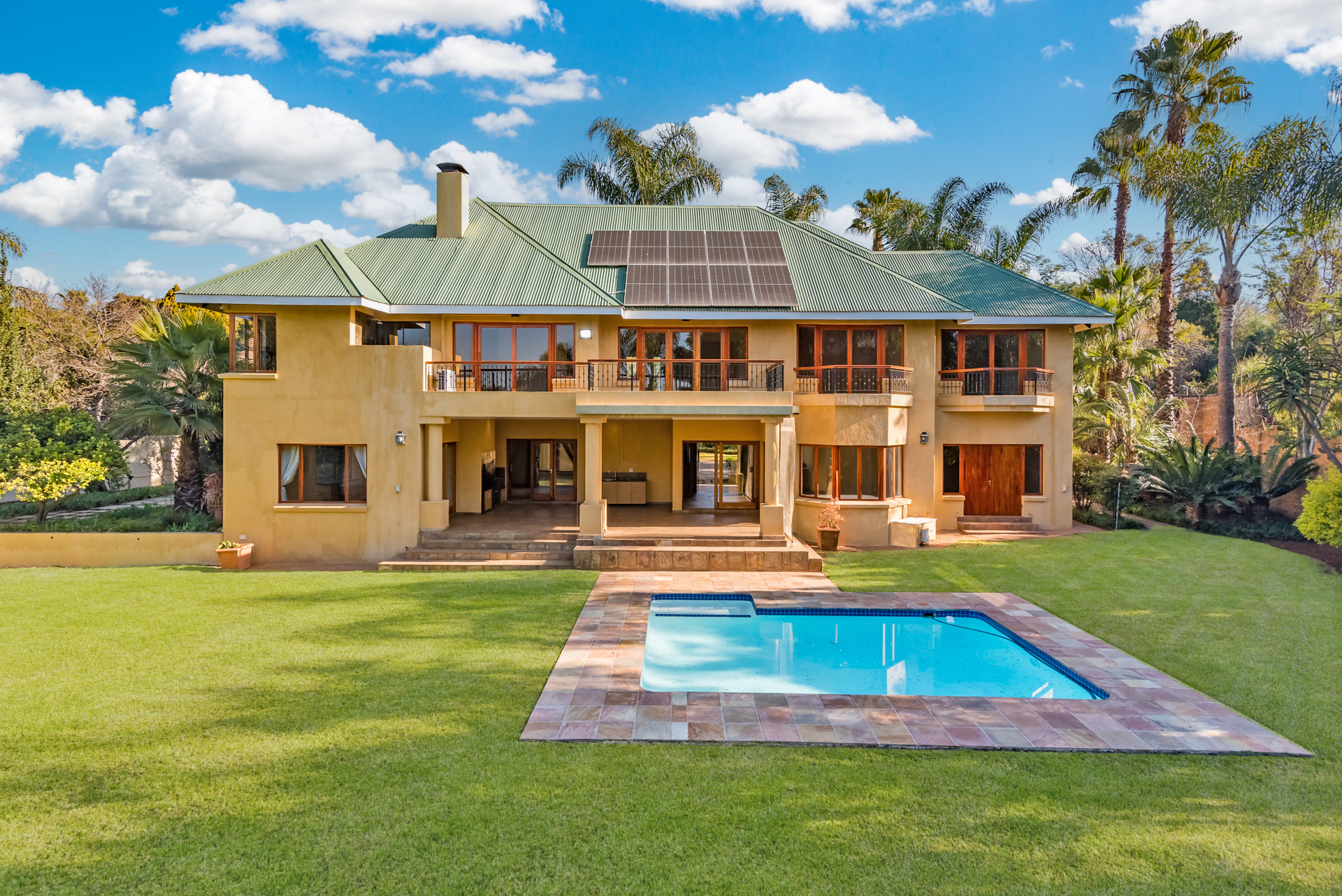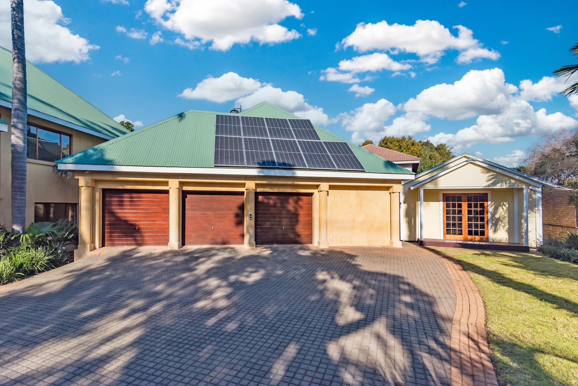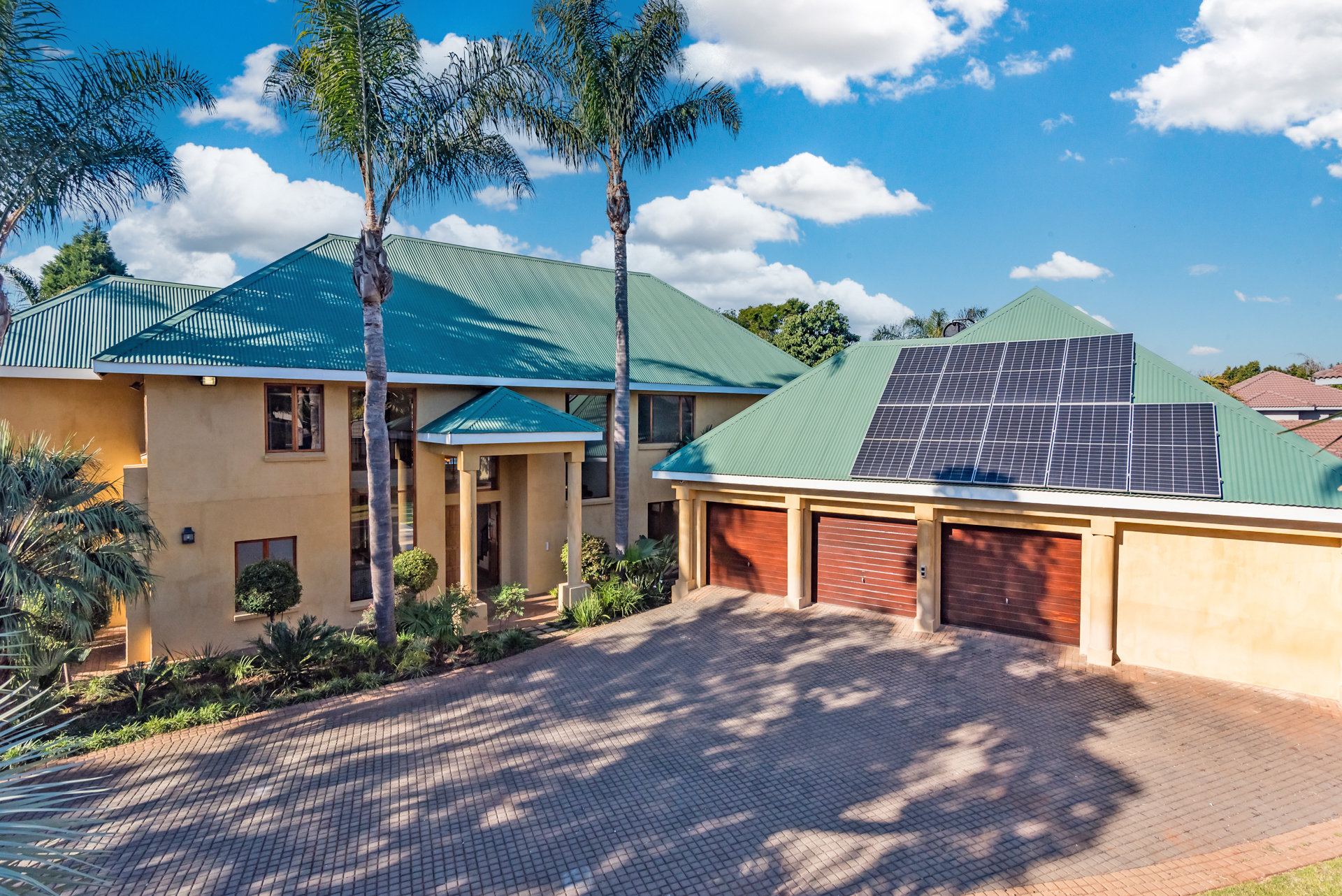 This home includes three automated garages, a fully automated irrigation system powered by a 3000L/hour borehole and a high-performance solar setup with a 16kVA inverter, 18 panels, and energy-efficient geysers — combining sustainability with convenience.