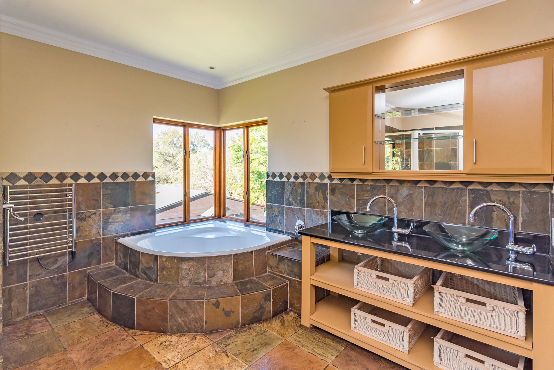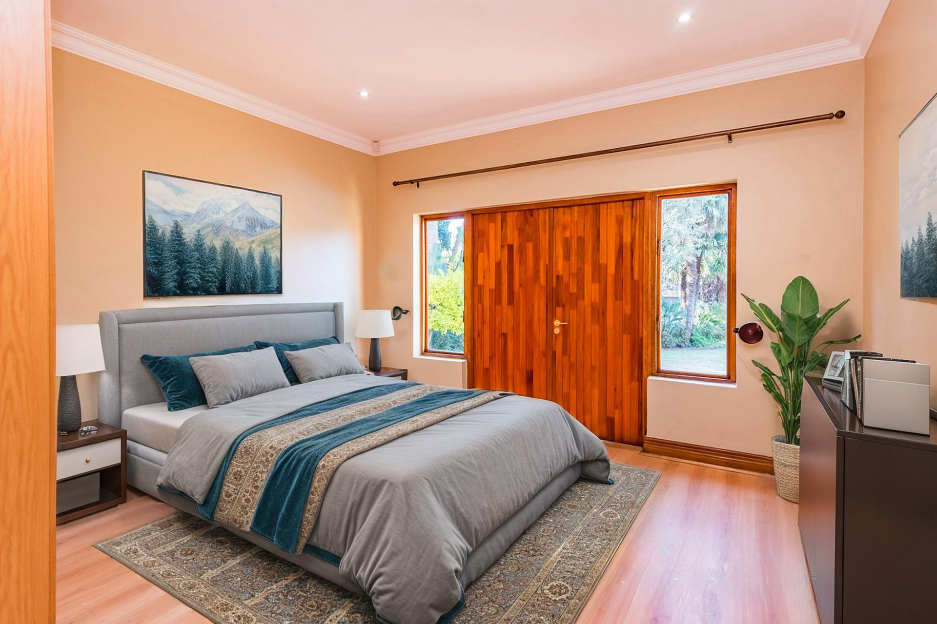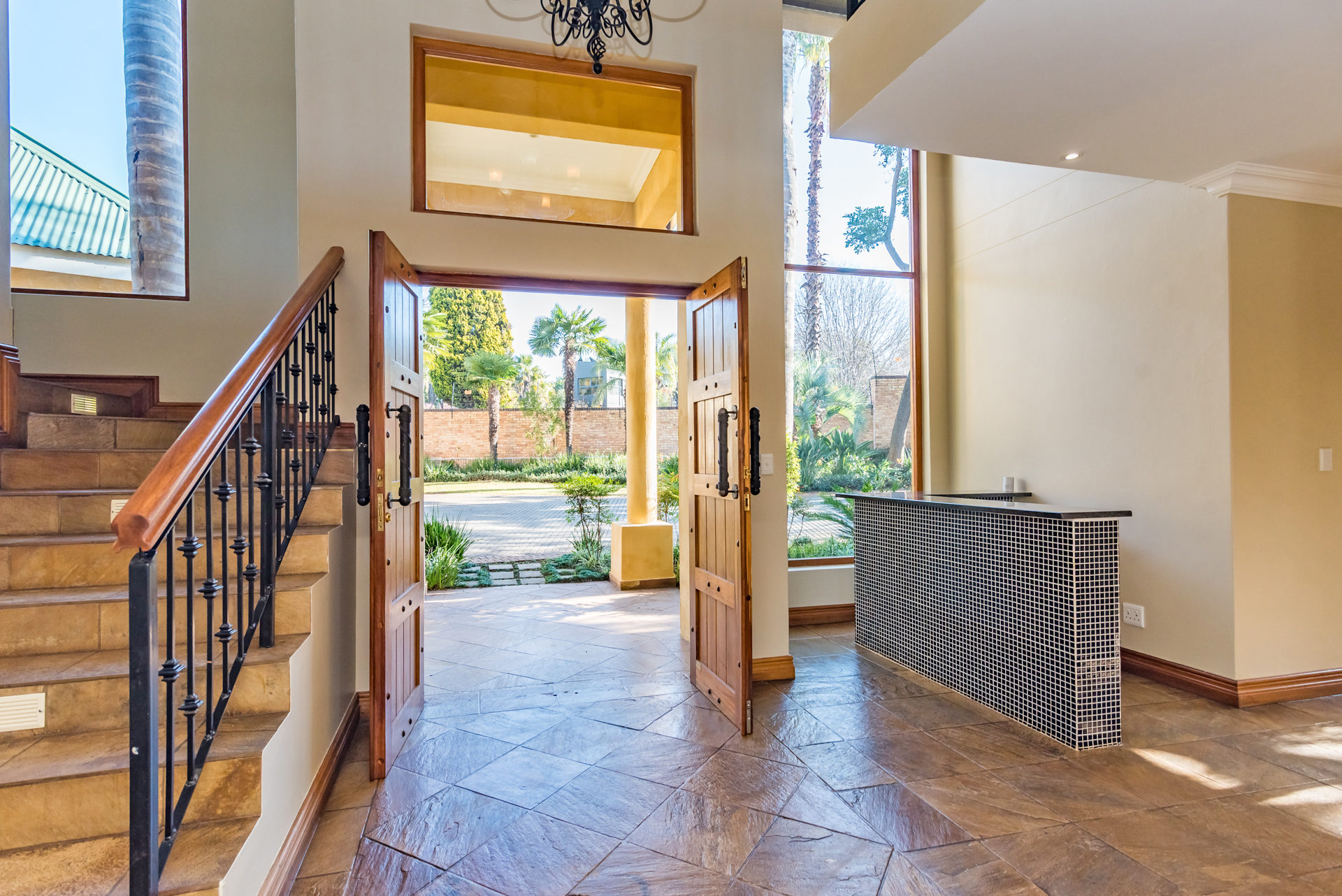 This home includes three automated garages, a fully automated irrigation system powered by a 3000L/hour borehole and a high-performance solar setup with a 16kVA inverter, 18 panels, and energy-efficient geysers — combining sustainability with convenience.