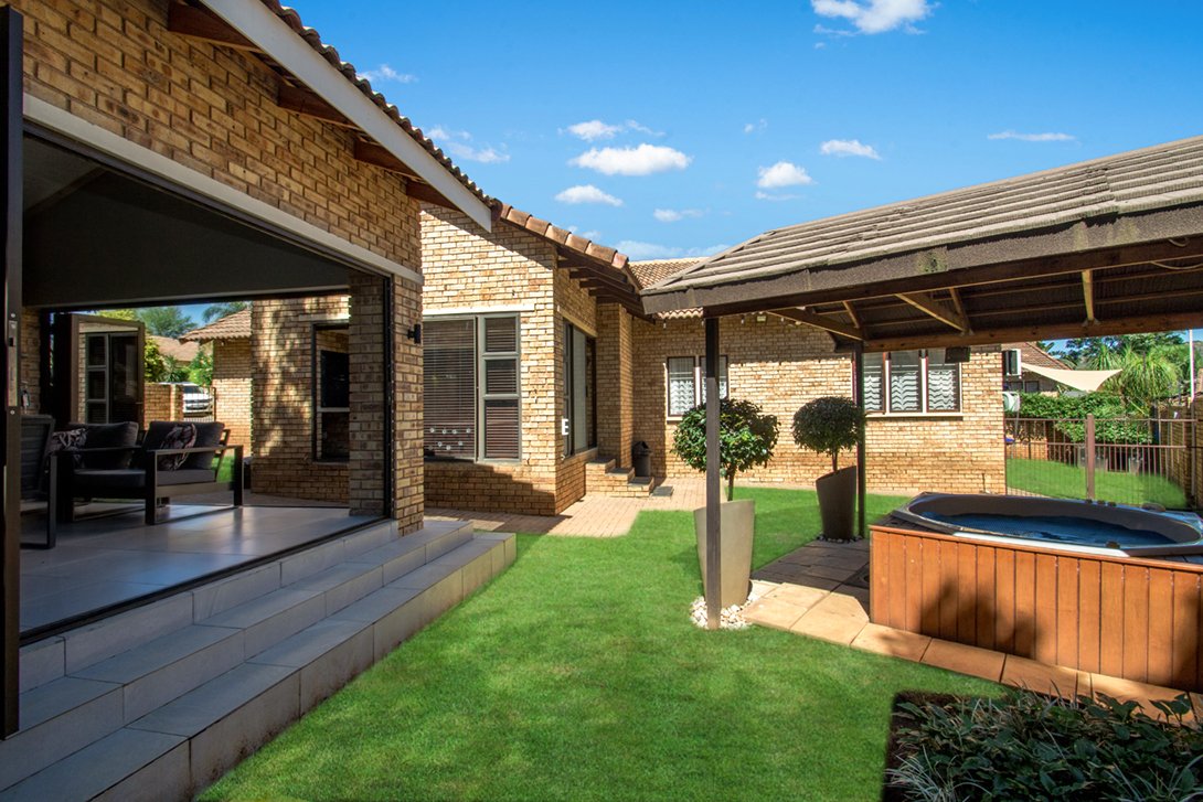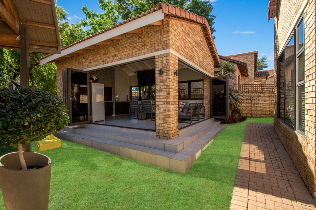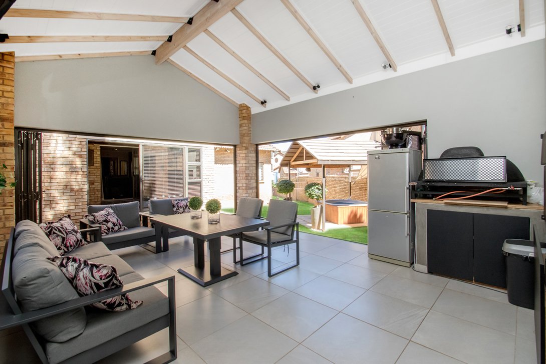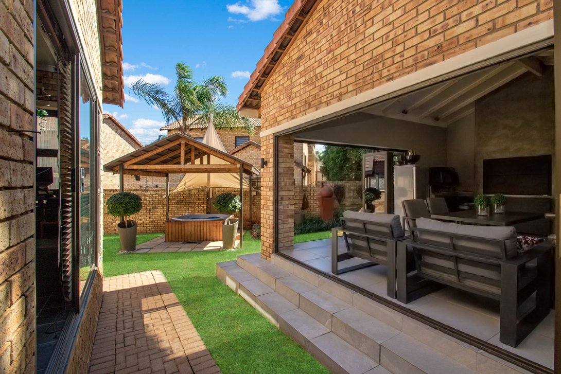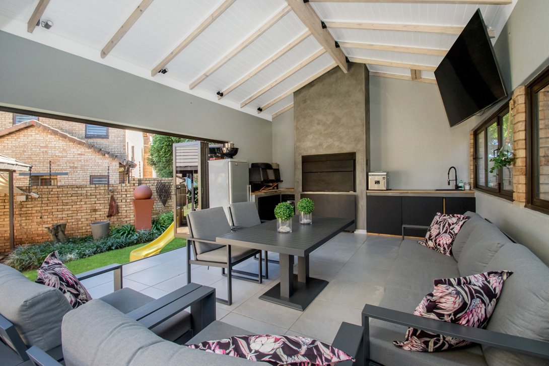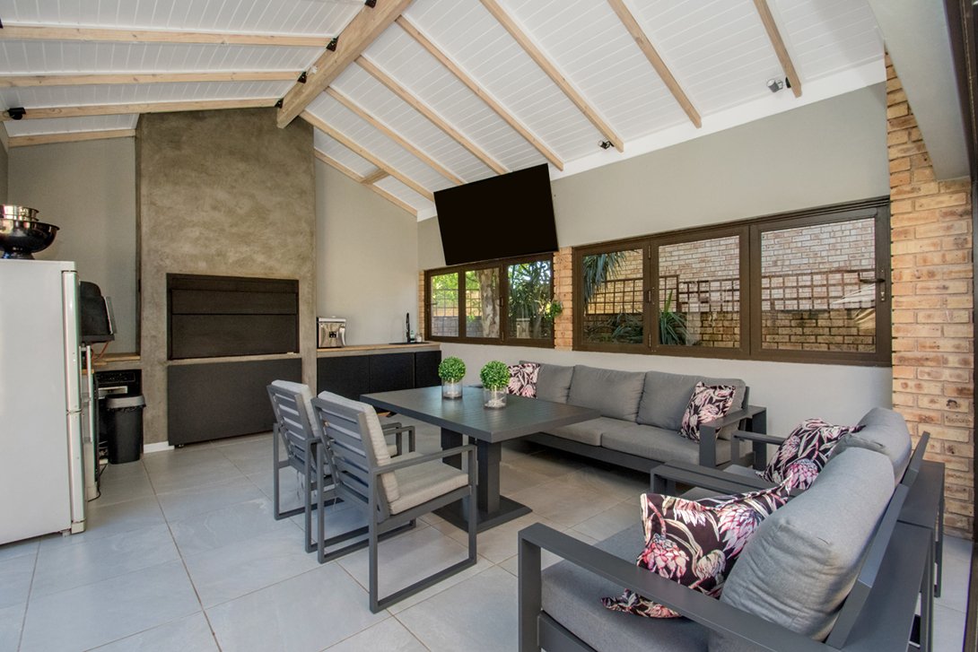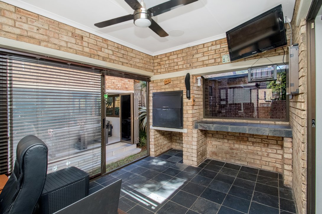 - Patio with build in braai, sliding doors, ceiling speakers & fan, blinds