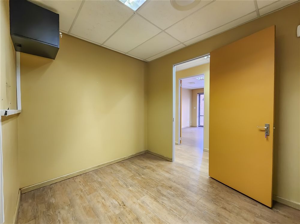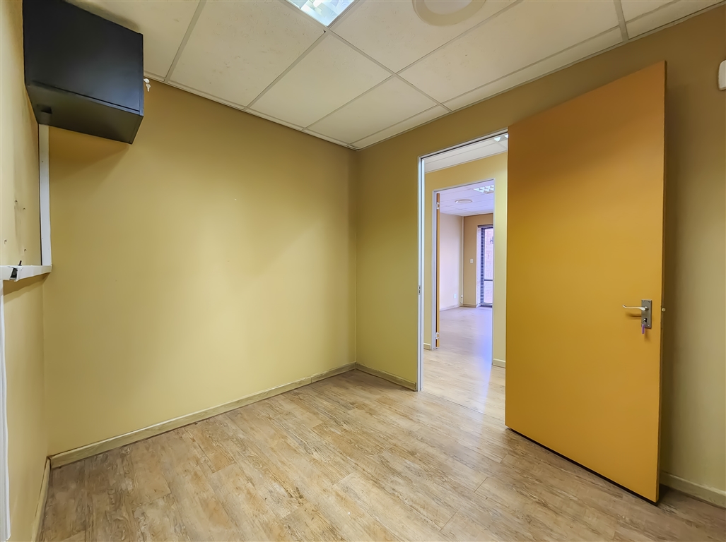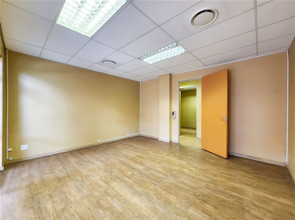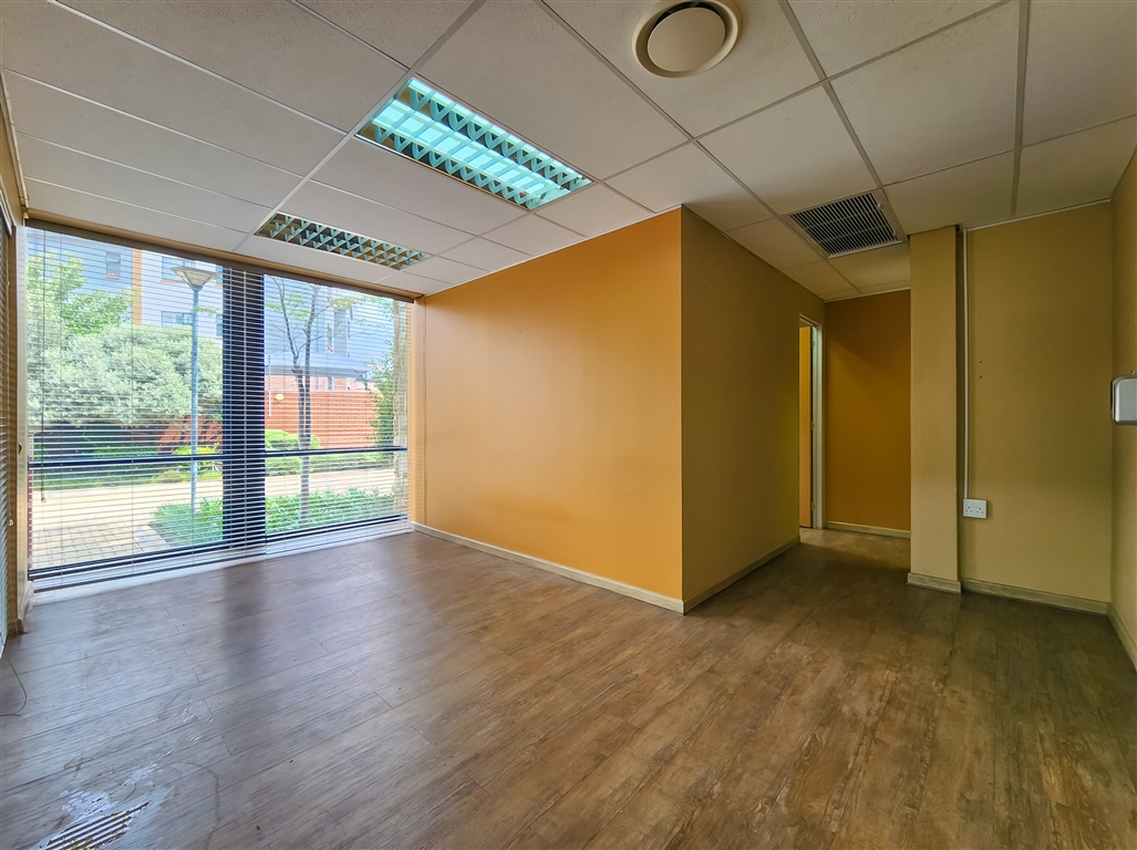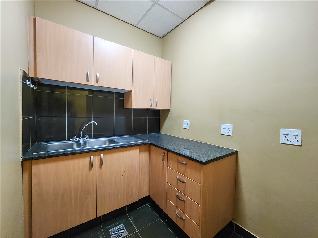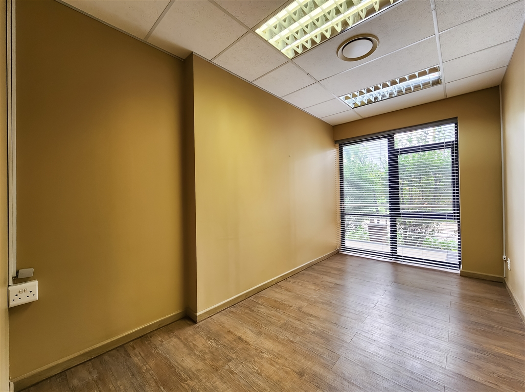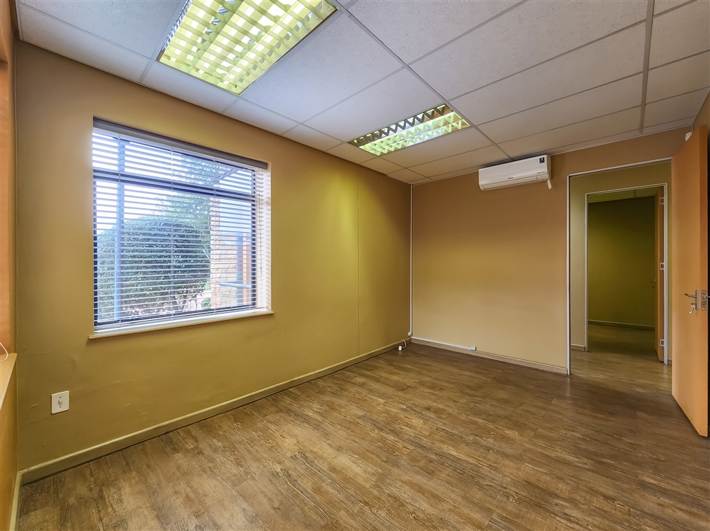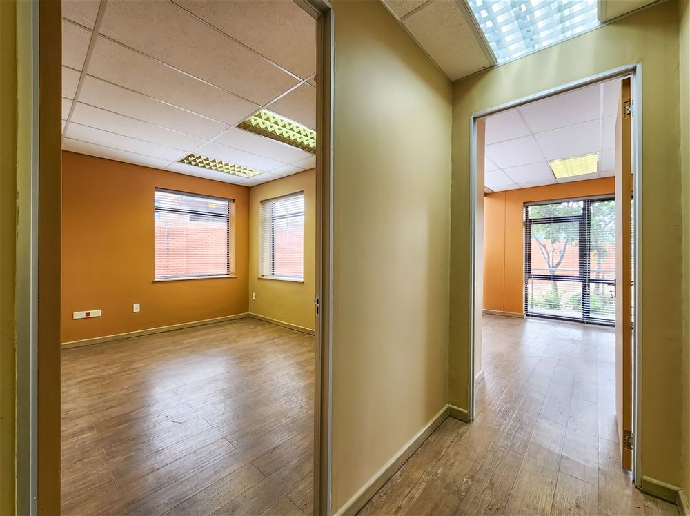 This contemporary ground-floor office to rent in Coldstream Office Park located in Ruimsig welcomes you with a spacious and naturally lit reception area that leads into a boardroom designed to comfortably seat eight. A passage further leads to four private offices, a server room, a storeroom, private dedicated ladies and gents restrooms and a fully equipped kitchen. Several offices feature exclusive access to private dedicated balconies.