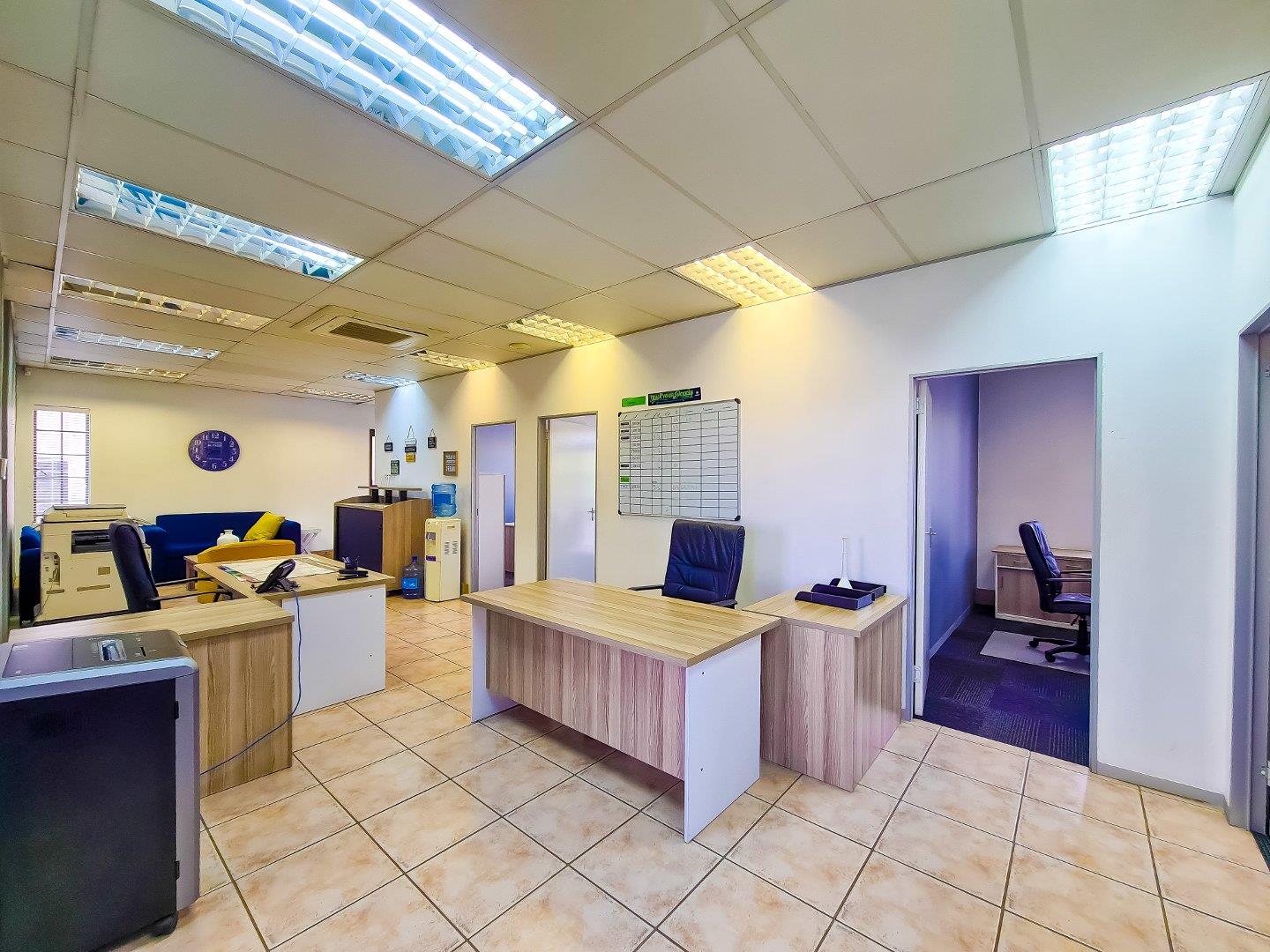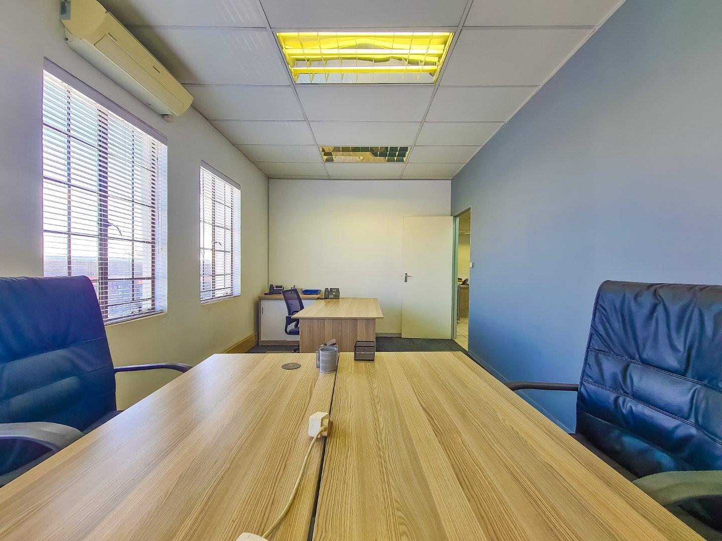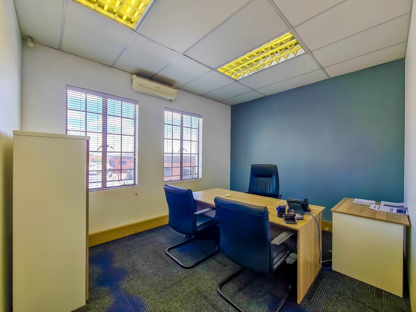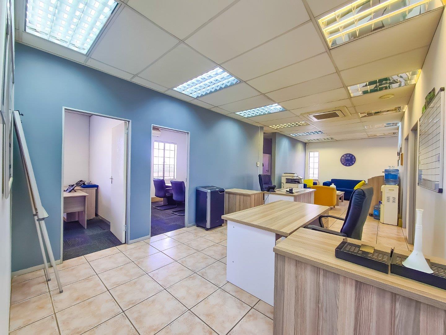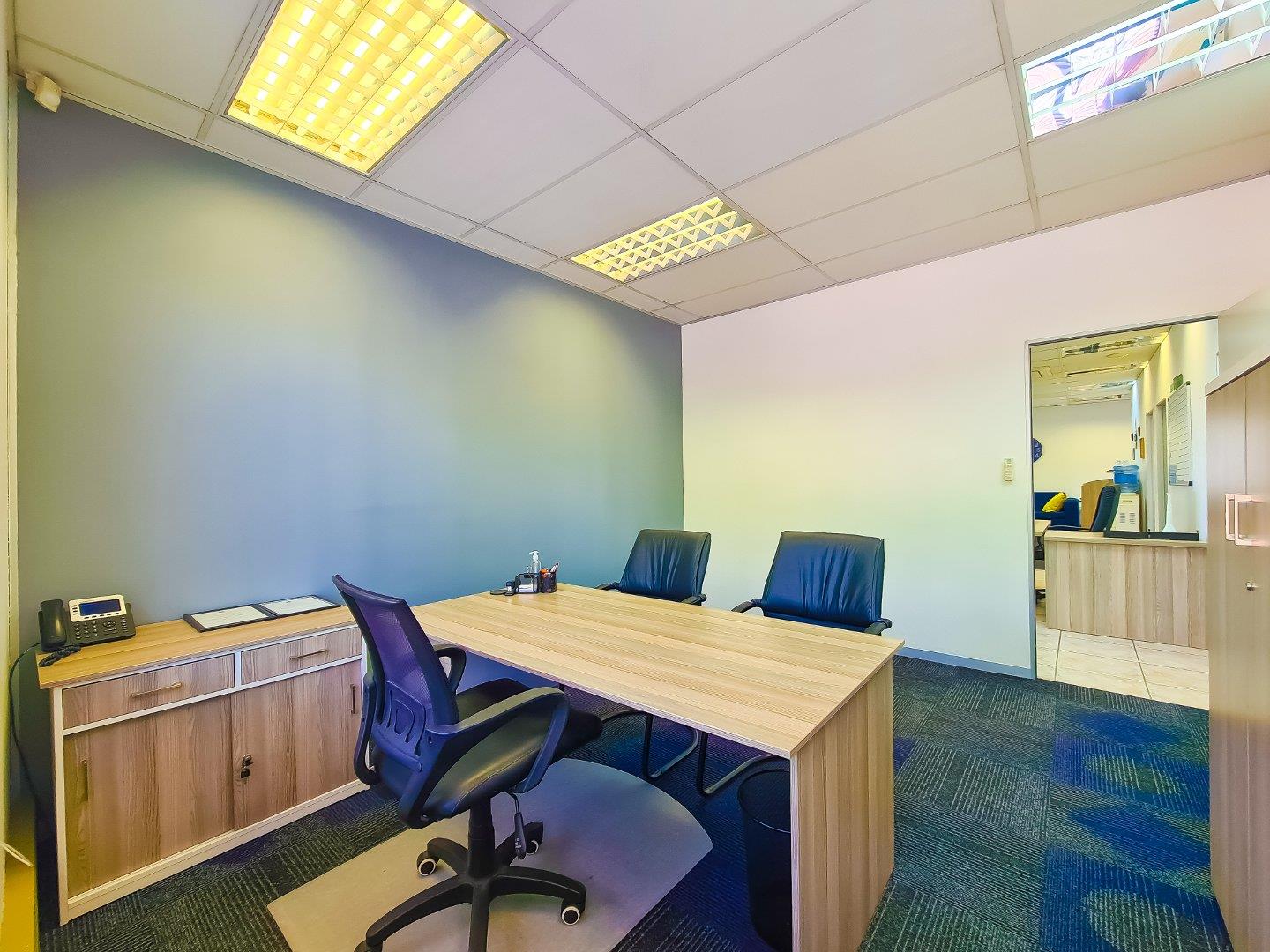 This fully furnished office to let is located on the 1st floor and welcomes you with a lovely reception area followed by an open plan office that leads to 6 individual offices of which 1 office has access to a private dedicated balcony overlooking the office park. One of the 6 offices can ideally be utilised as a boardroom. The office further enjoys access to a private dedicated kitchen and private dedicated ladies and gents restrooms. 6 x open parking bays are included in the monthly rent and electricity is metered. The building is connected to a backup generator and is fibre ready.