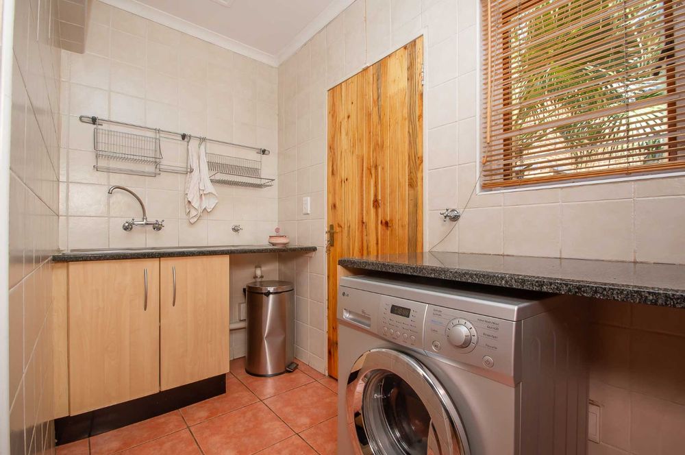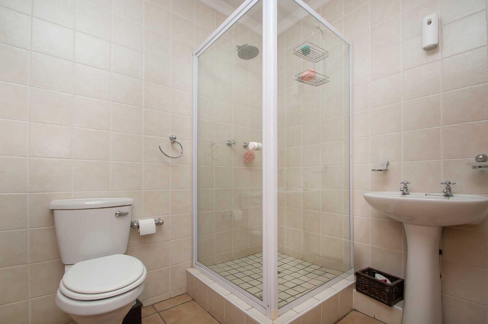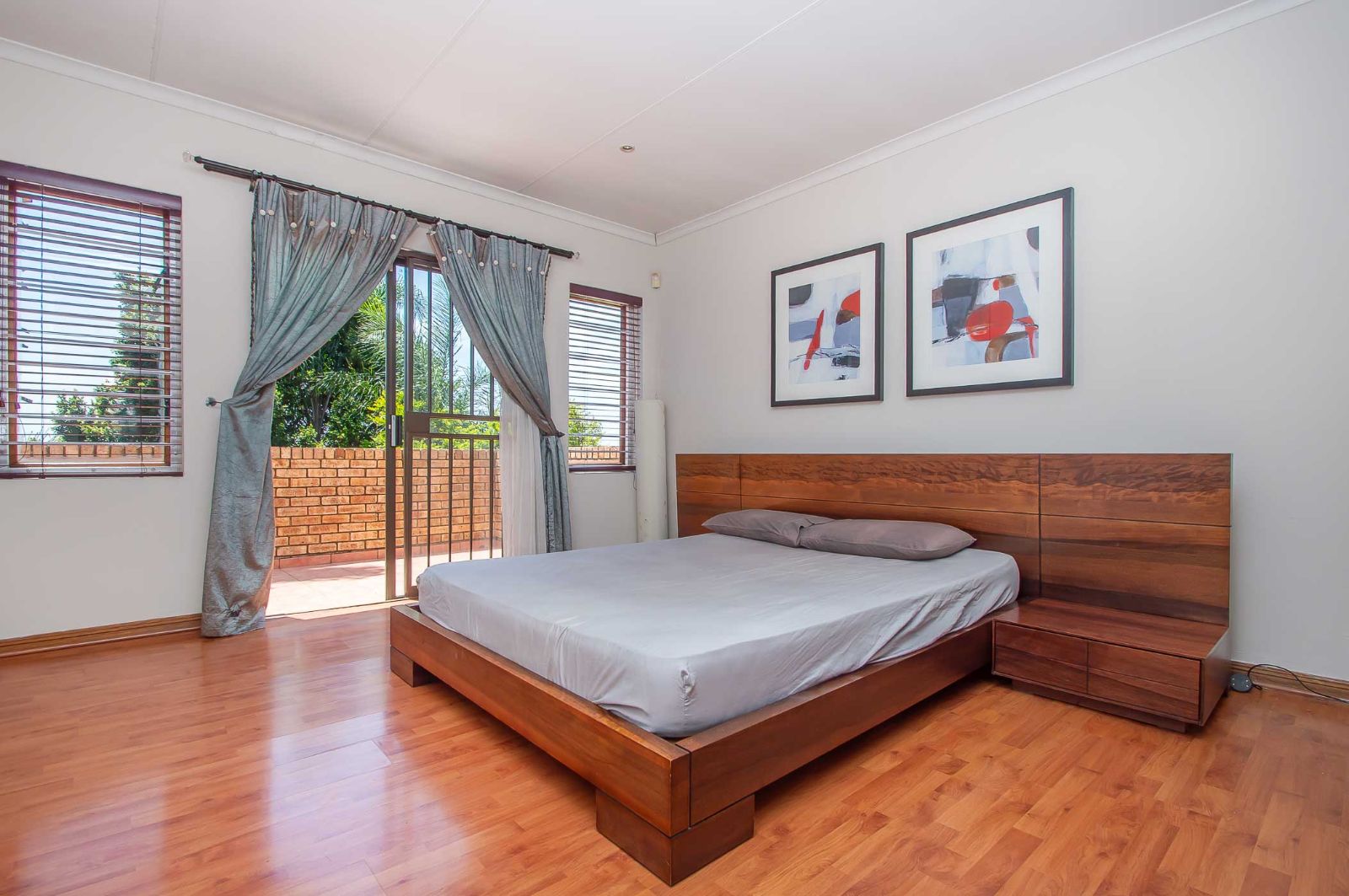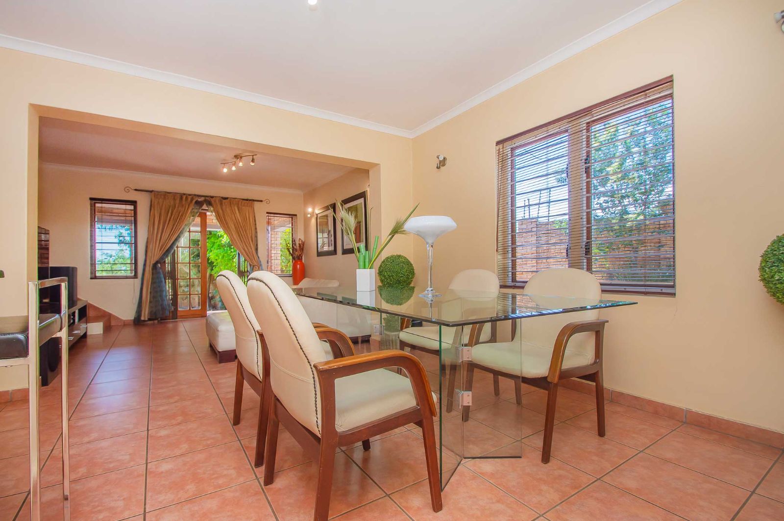 As you step inside, the ground floor welcomes you with an elegant lounge and dining area, flowing seamlessly into a modern kitchen with granite countertops and a separate scullery. A guest toilet adds to the convenience, making this level perfect for hosting. The covered patio extends the living space outdoors, ideal for enjoying summer evenings by the pool.