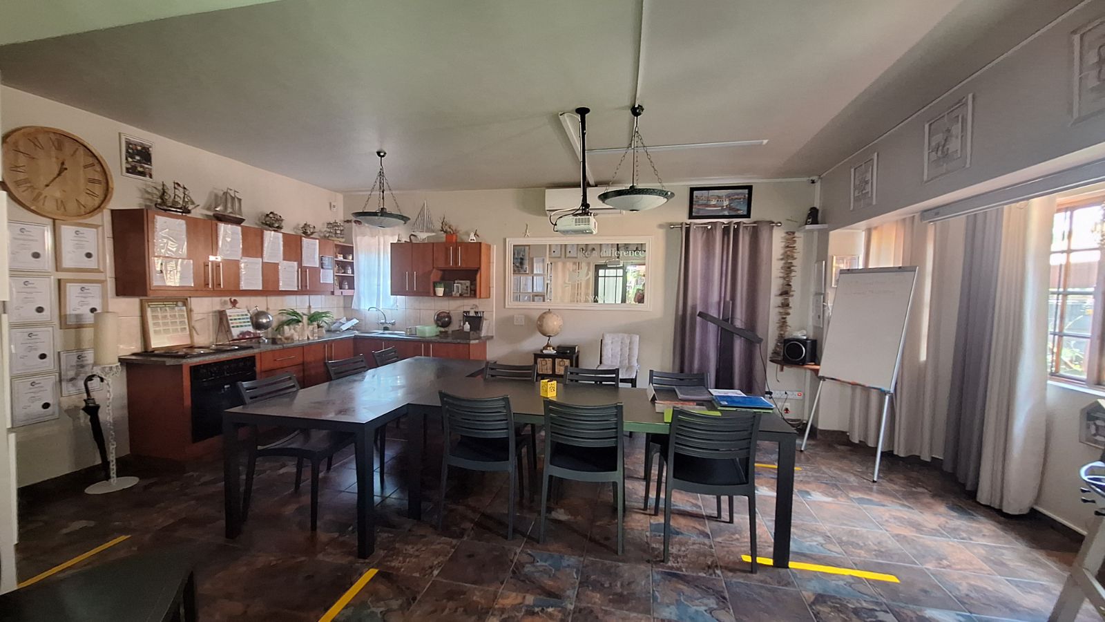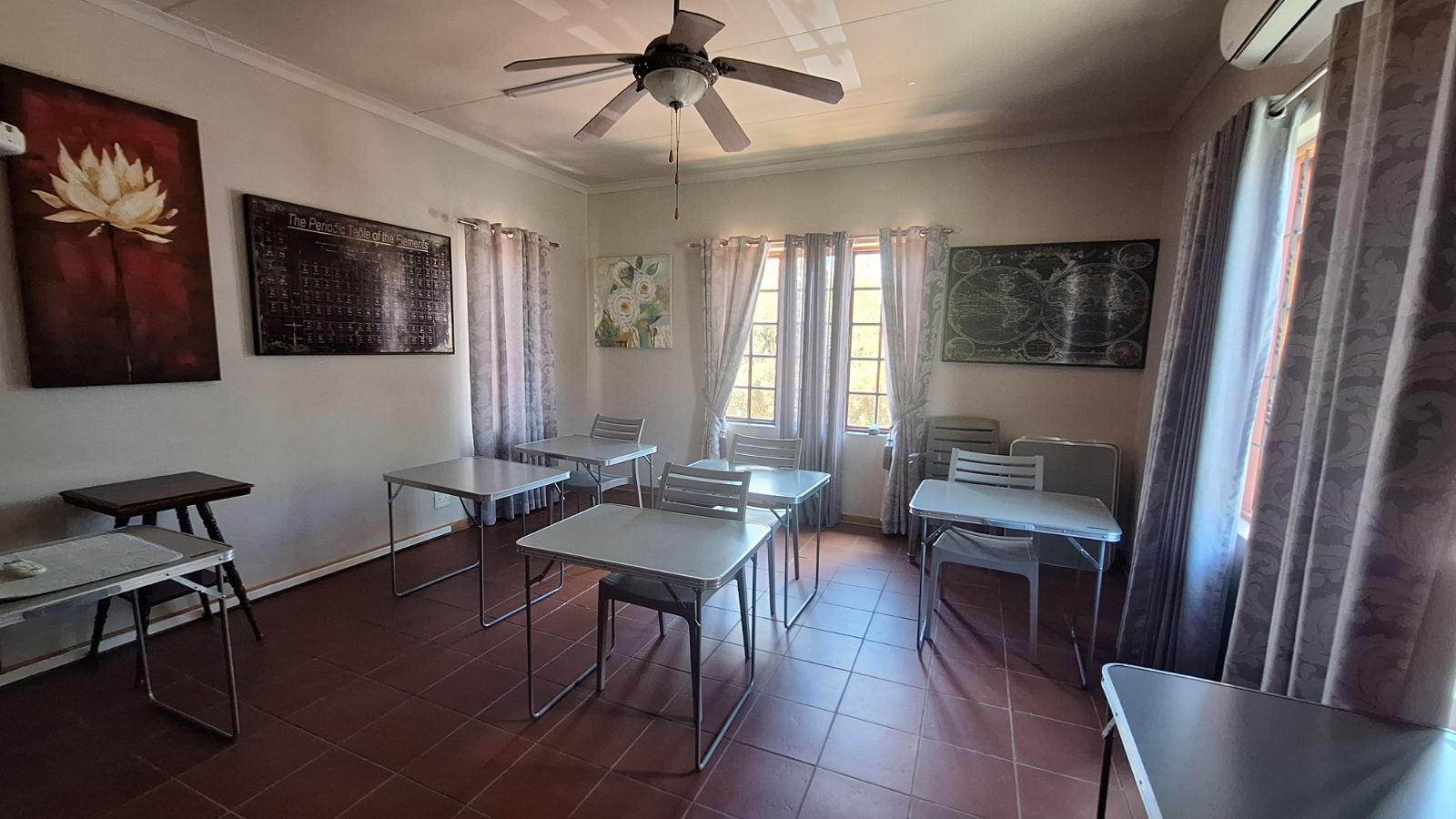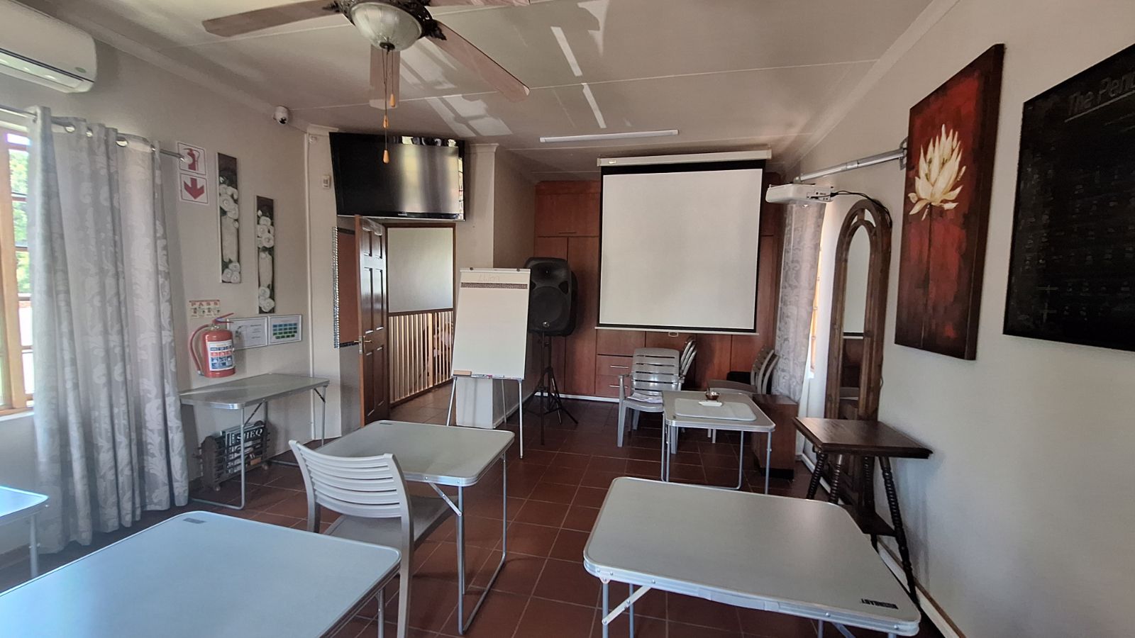 The property offers 9 rooms in total, including 4 bedrooms, 2 lounges, a practical and spacious kitchen, 2 offices, and two 60 m2 training rooms. There are also two large entertainment areas with built-in braais, ideal for hosting or corporate use.