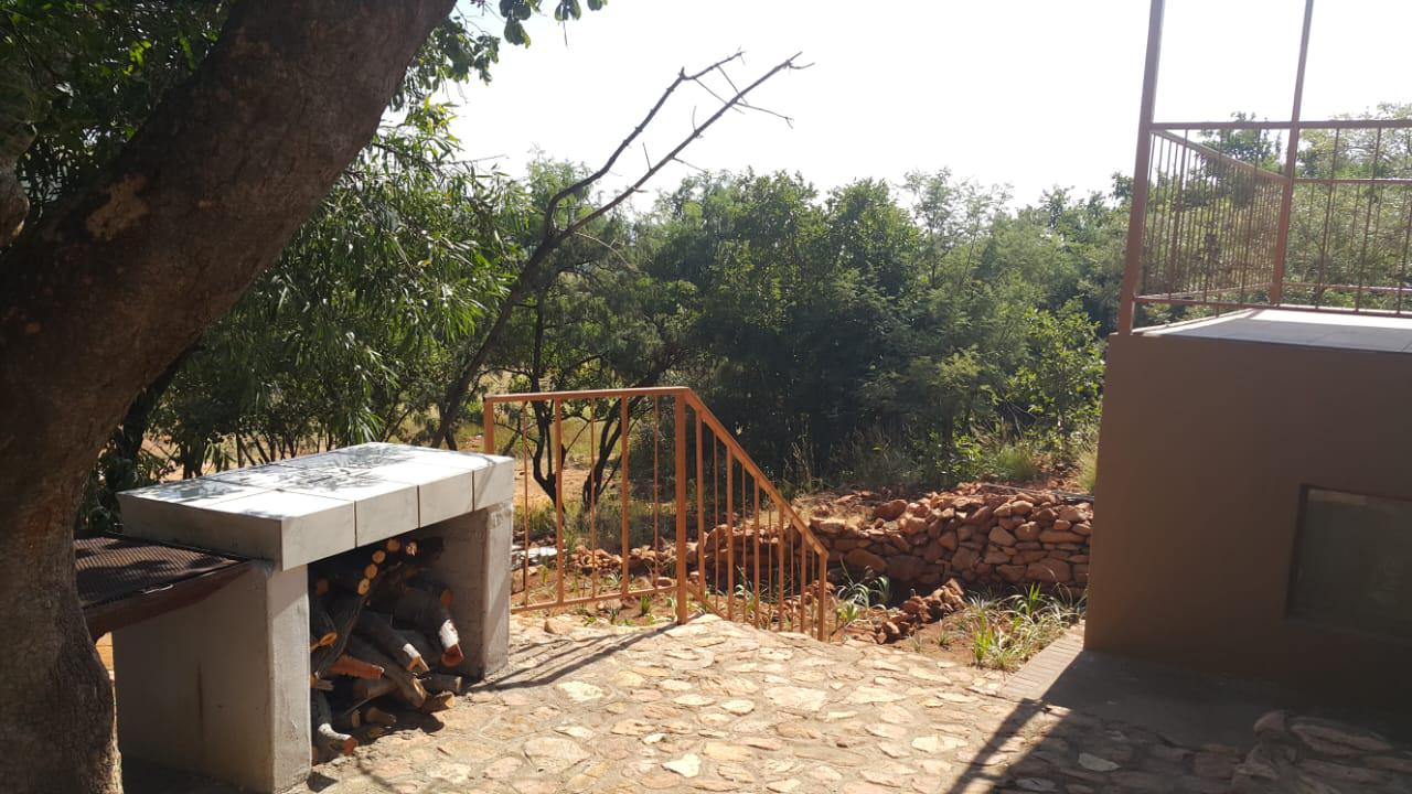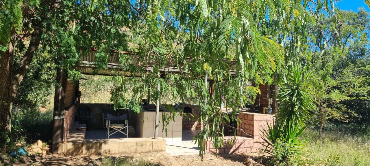 The property currently features a characterful 4-bedroom main house, showcasing unique rock art and offering a spacious living environment. Additionally, four charming "Hunter" style chalets offer immediate infrastructure that, with strategic refurbishment, can significantly enhance income potential or serve as initial accommodation for a development project. Each chalet includes a dedicated braai area, fostering an appealing outdoor experience.