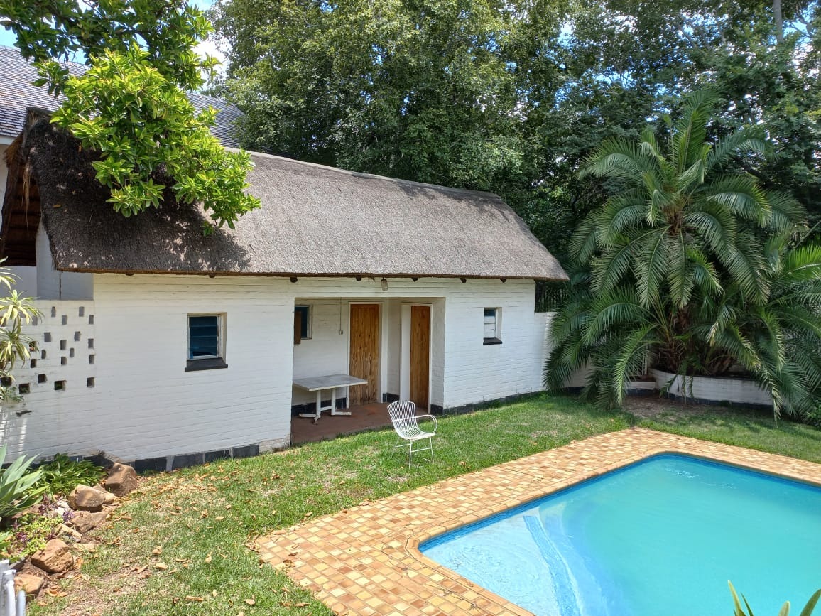 Open plan dining room and kitchen with built-in cupboards and a single washup sink. One bedroom with en-suite bathroom and built-in cupboards. A separate lounge. All windows are burglar barred and doors have Security gates. The cottage has it's own Private In-House alarm.