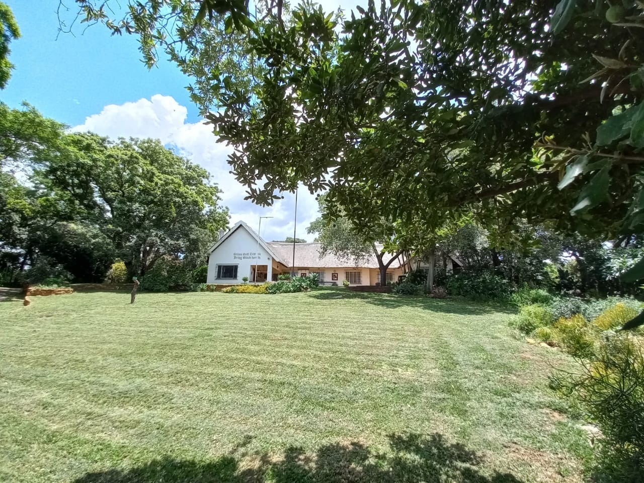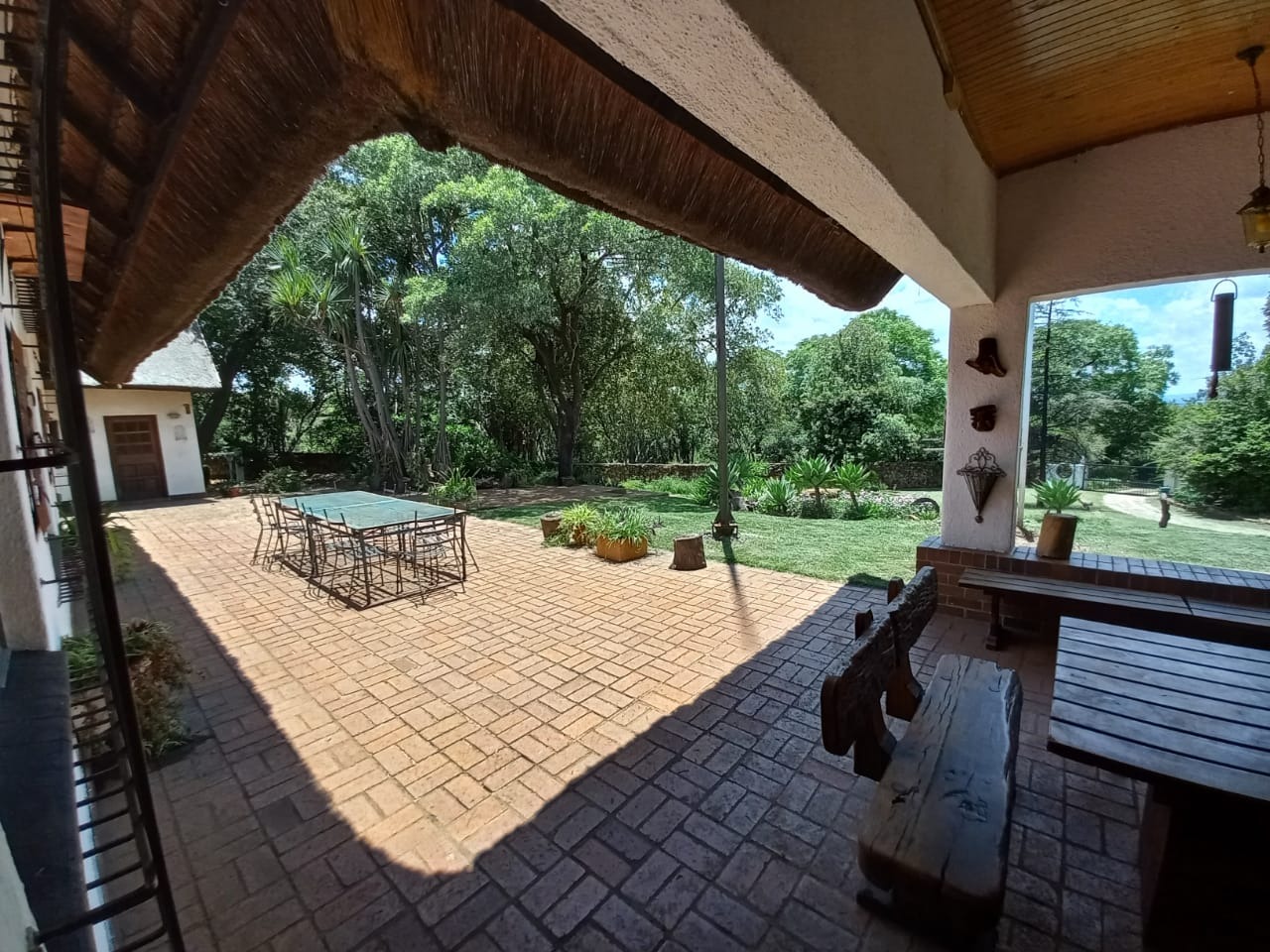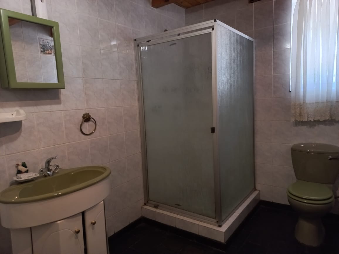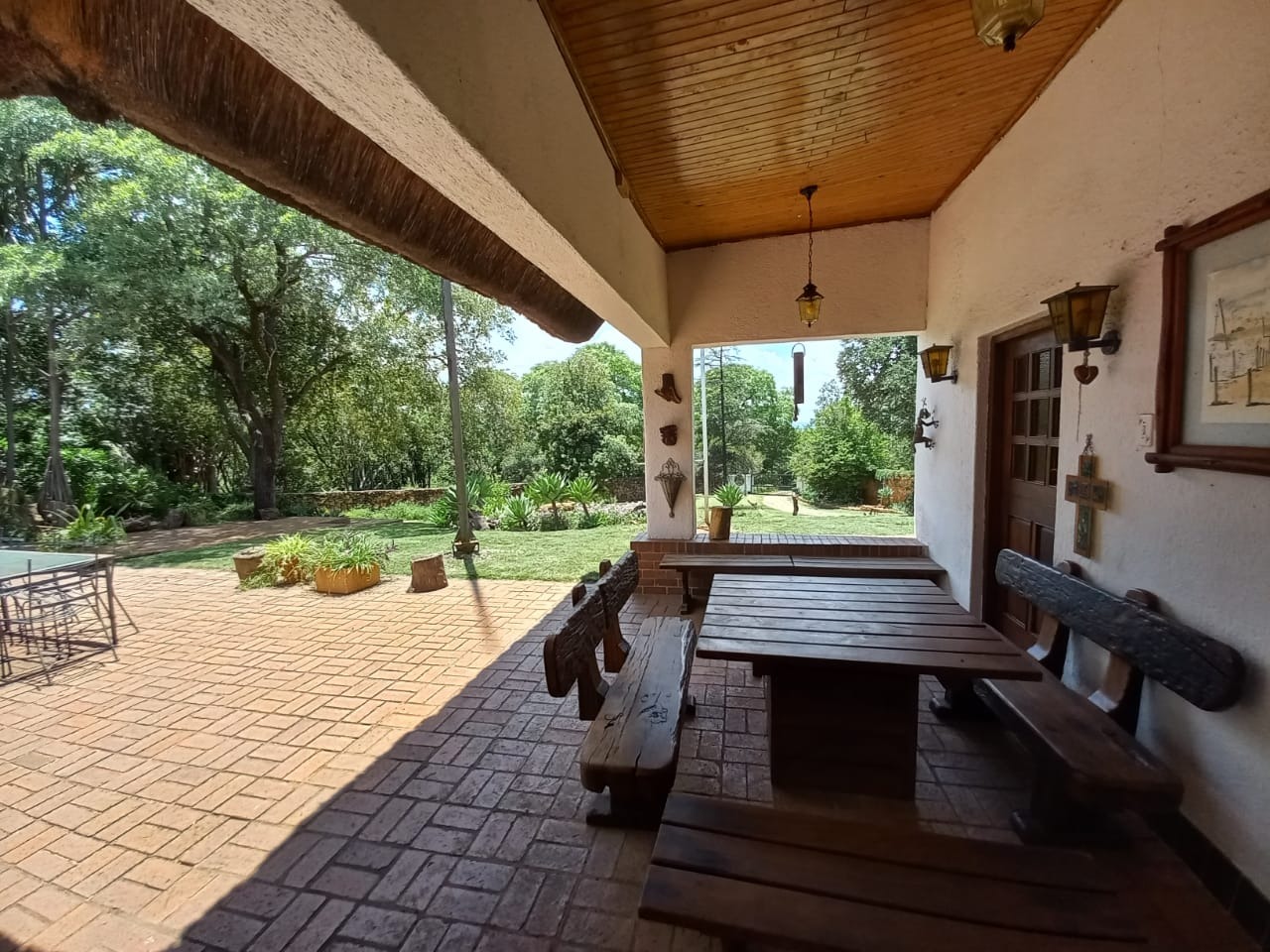 3 Large Bedrooms and 1 Very Large Main Bedroom with a walk in closet, En-suite bathroom with a large bath, toilet and his and hers wash basins. A guest bathroom with bath, shower and wash basin and a separate guest toilet. With a large built-in laundry cupboard in the passage and a small storage space underneath the stairs. A large kitchen with an eye level oven and hob and a panty. Main lounge and dining room with sliding doors opening up to the patio. A second carpeted lounge with a fireplace and a separate study. All windows are fully burglar barred and all doors to the outside are solid wood an all have burglar bards. All geysers are mounted outside. The roof is thatched and Harvey Tiled.