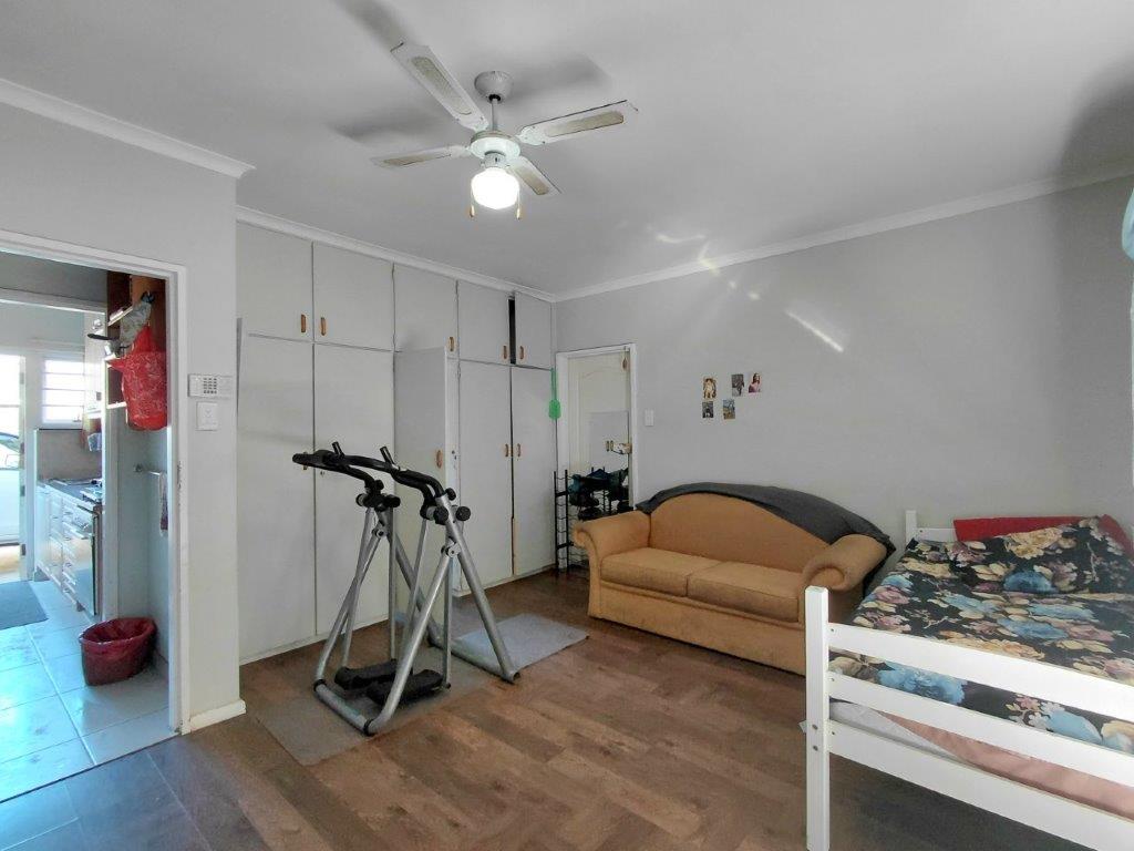 A converted garage currently operating as a barbershop, generating rental income.