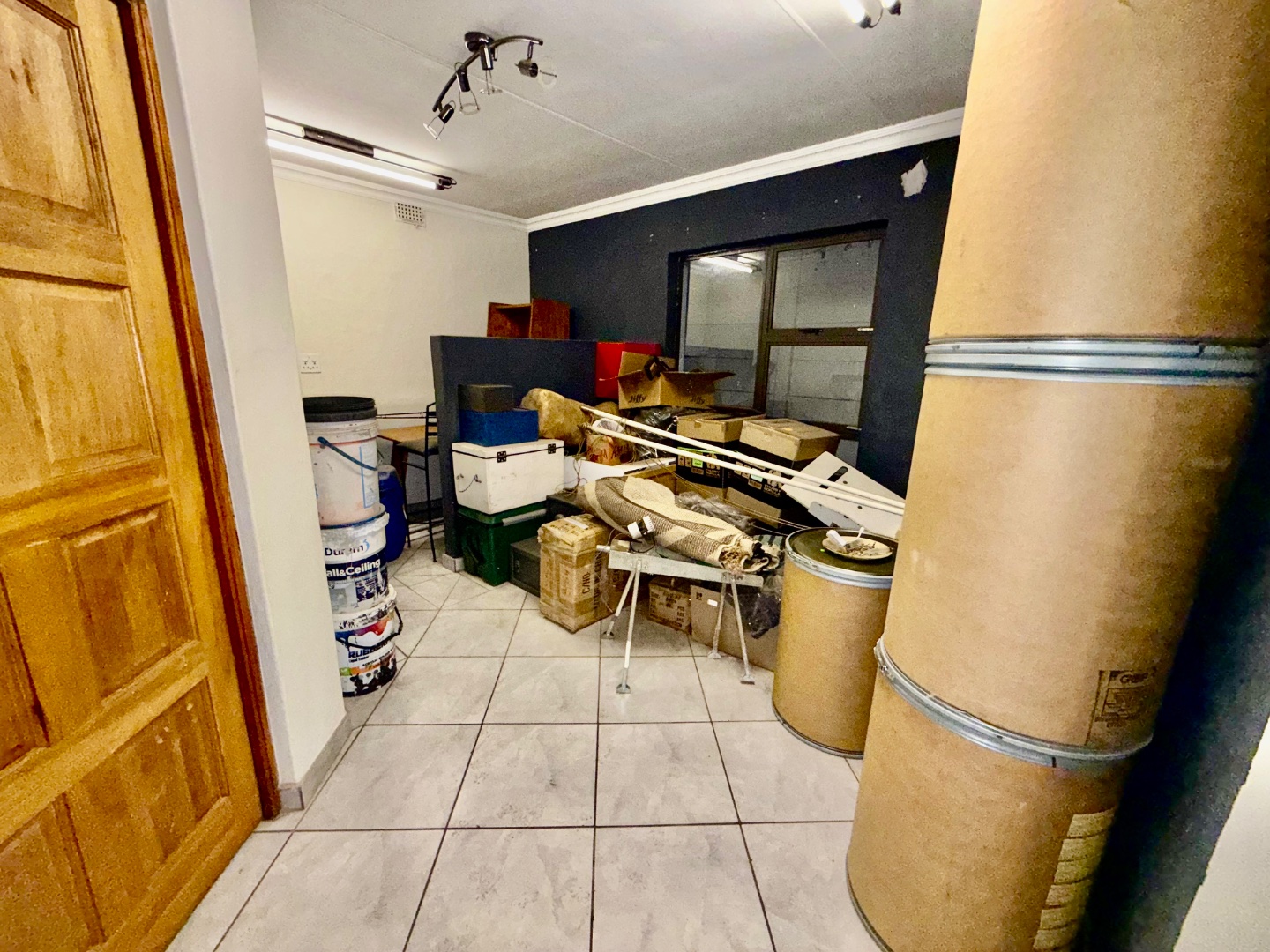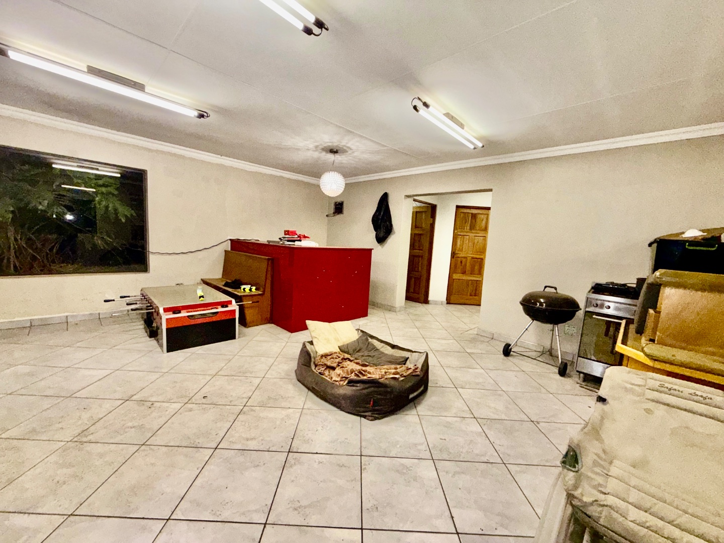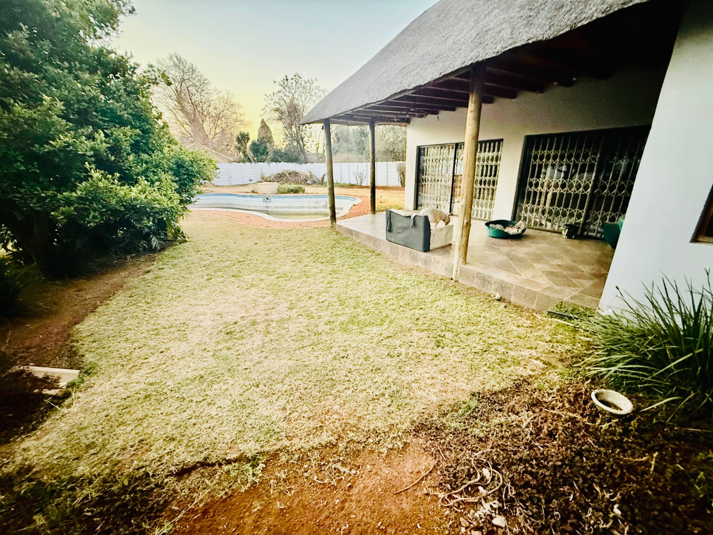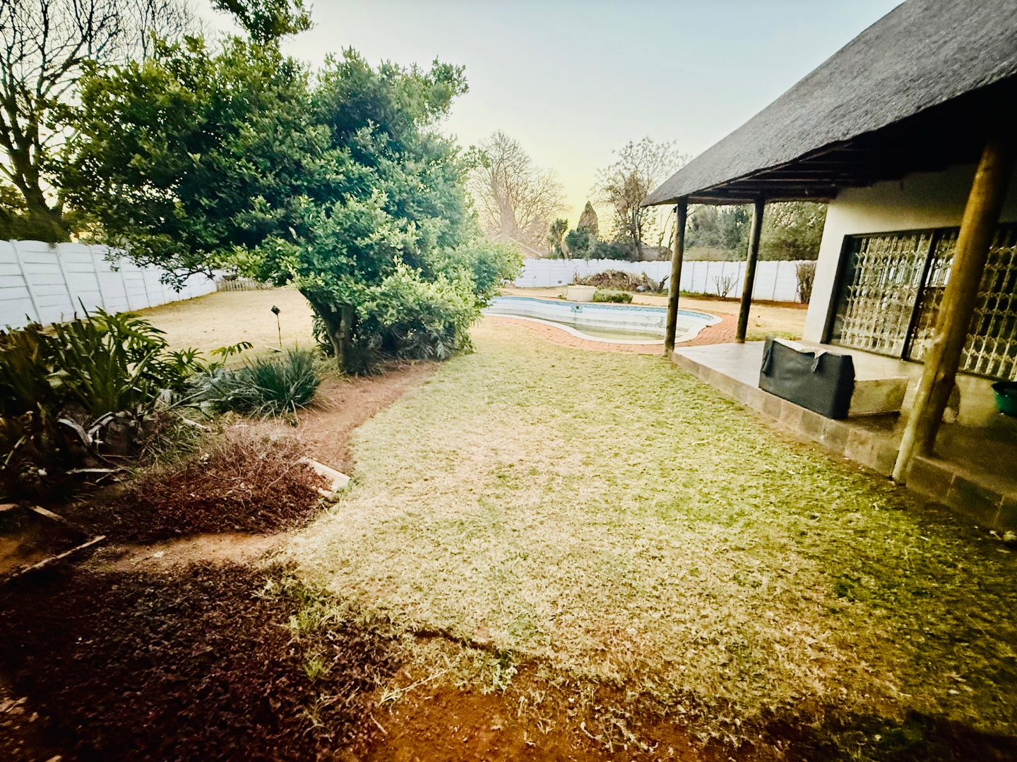 The main house features 3 bedrooms, 2 bathrooms, a study, and a well-sized kitchen. A standout feature is the huge lounge/entertainment area with a built-in braai, a bathroom with shower, toilet, and basin, and sliding doors leading to a swimming pool and large back garden – perfect for family living and entertaining. Upstairs, a loft provides additional space that can be used as a home office, playroom, or hobby room.