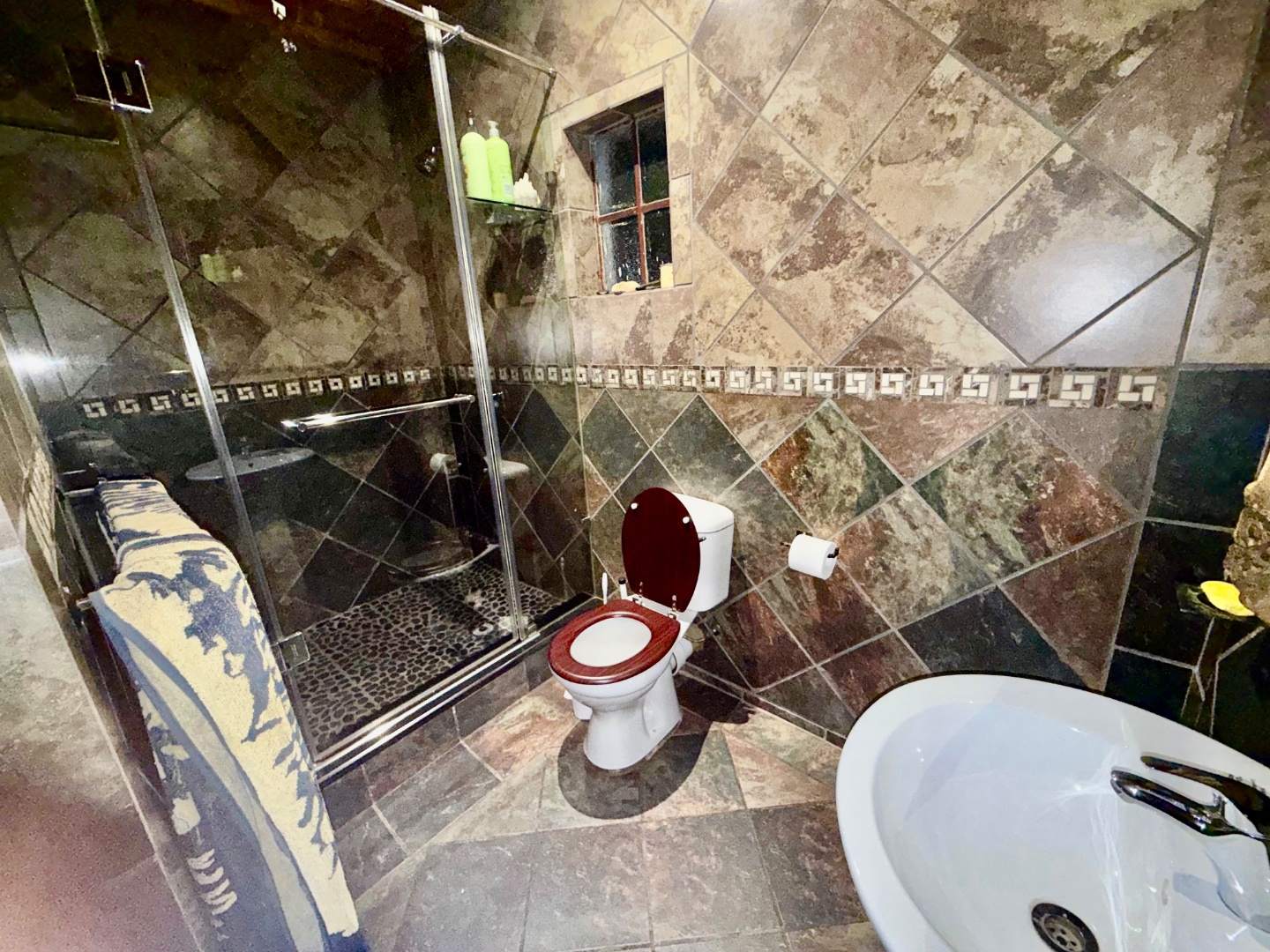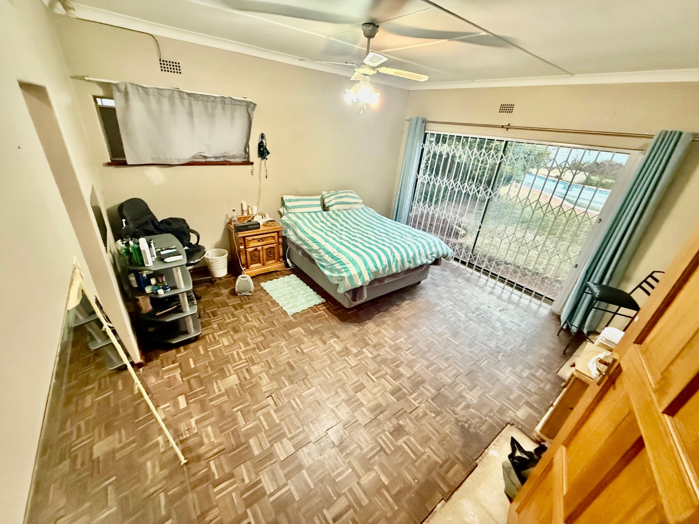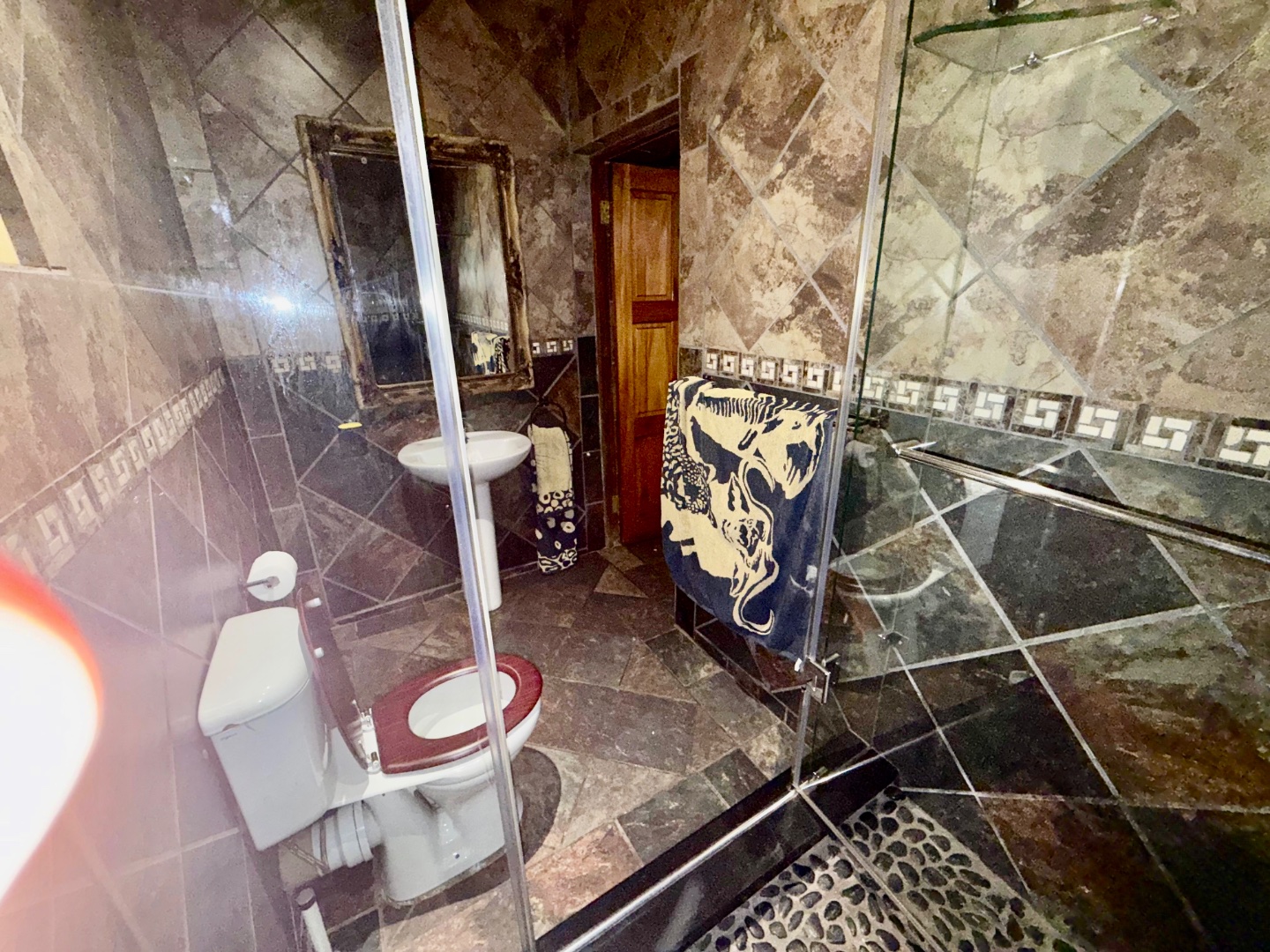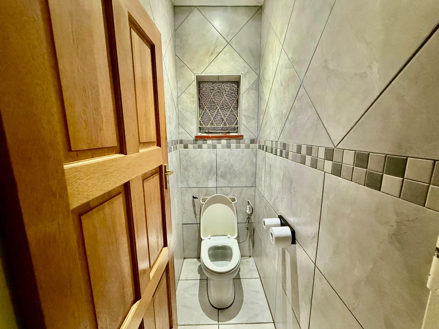 The main house features 3 bedrooms, 2 bathrooms, a study, and a well-sized kitchen. A standout feature is the huge lounge/entertainment area with a built-in braai, a bathroom with shower, toilet, and basin, and sliding doors leading to a swimming pool and large back garden – perfect for family living and entertaining. Upstairs, a loft provides additional space that can be used as a home office, playroom, or hobby room.