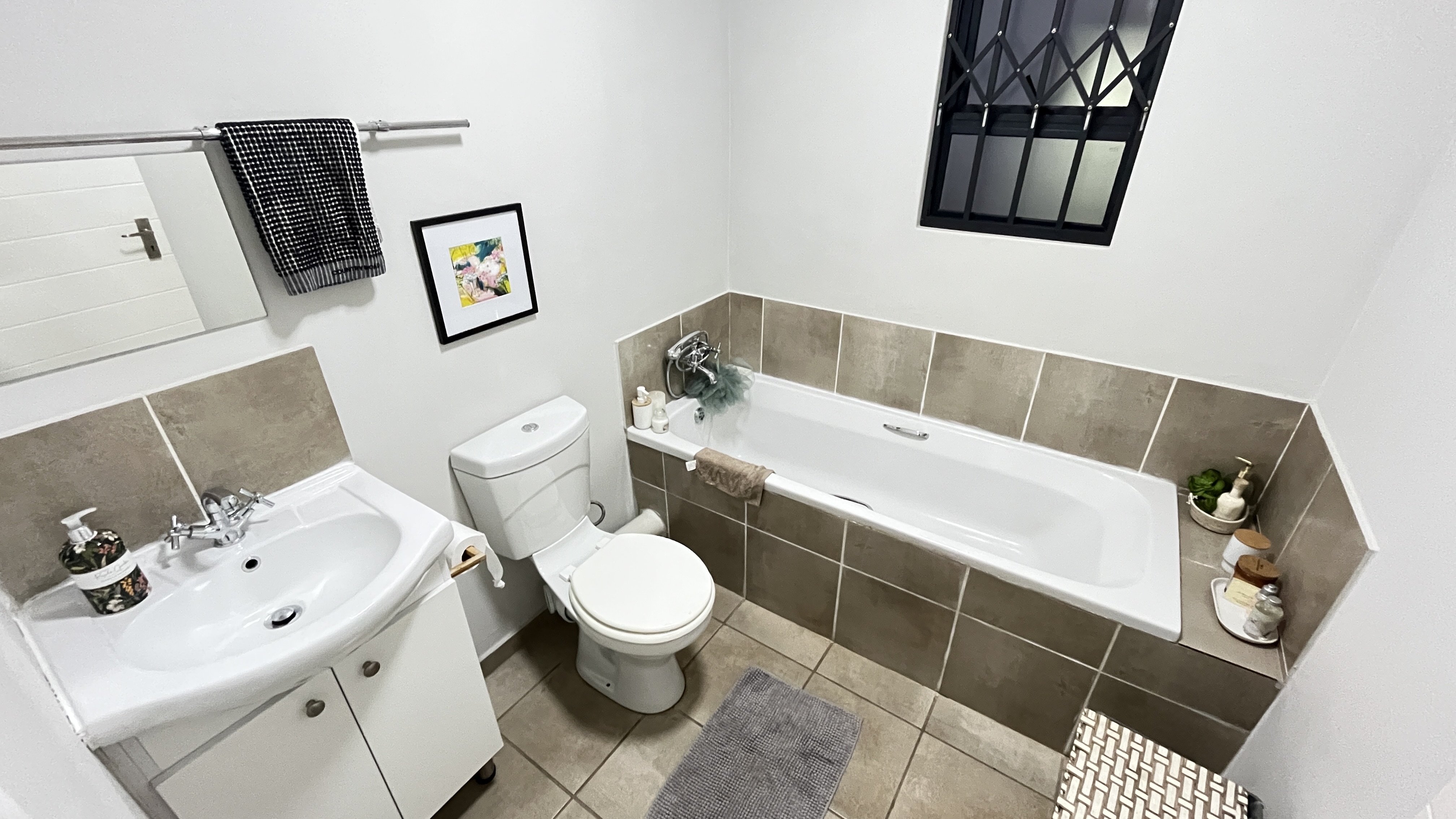 Step into modern comfort with this charming ground-floor apartment, perfectly positioned in a secure, well-maintained complex. Ideal for professionals, small families, or investors, this pet-friendly unit offers effortless living with premium features. Key Features: Bedrooms: 2 tiled rooms with built-in cupboards Main bedroom: En-suite bathroom with shower, loo and basin Second bathroom: Bath, loo and basin Kitchen: Modern granite-top breakfast nook, gas hob, undercounter oven Lounge: Spacious tiled area leading to a private, pet-friendly garden Parking: 1 secure carport bay Utilities: Prepaid electricity, gas geyser Complex Amenities: Access-controlled security, backup water tanks Call today for an exclusive viewing.