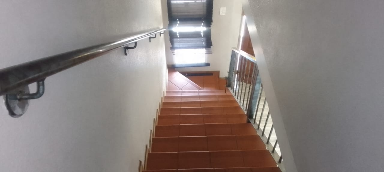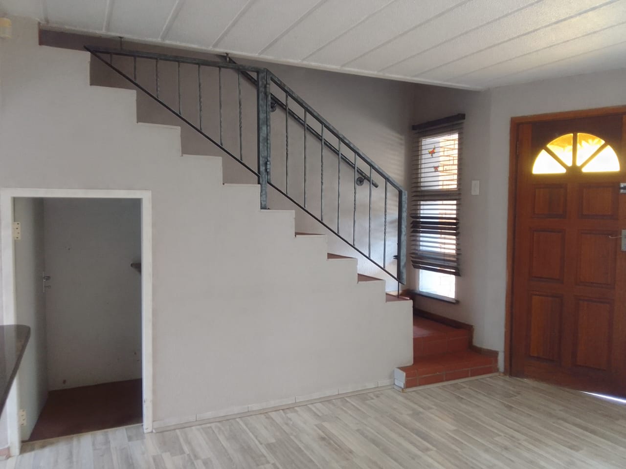 This beautiful duplex apartment is immediately available for rent in Rynfield, Benoni. Stepping into the unit, you enter a spacious, open plan living room that leads into a gorgeous kitchen with stunning modern finishing, stove, oven, fridge (optional) and with a spacious pantry room located in the kitchen. To the left of the living room is a TV room with air conditioning, that opens up to a closed off patio with glass sliding doors.
