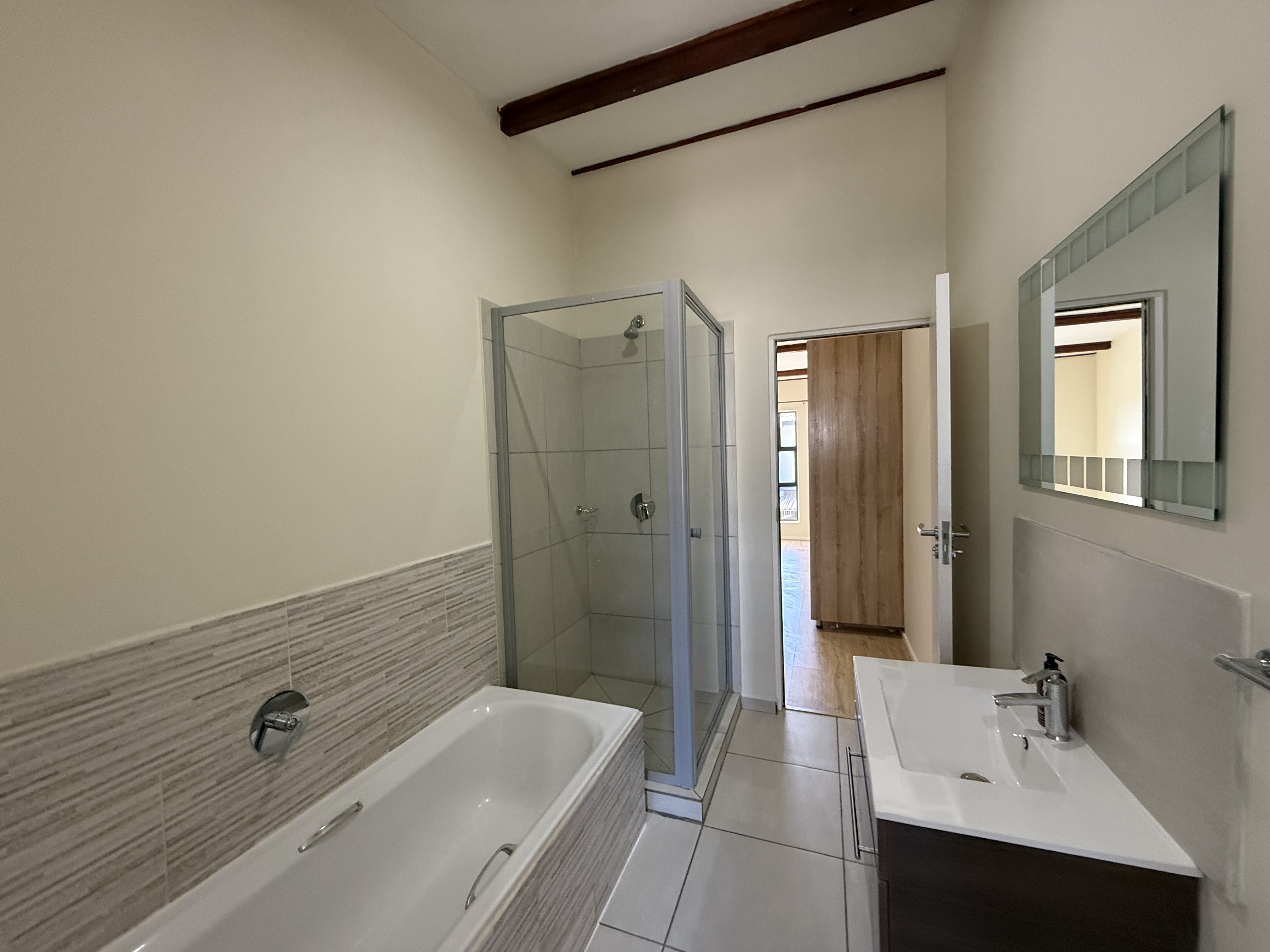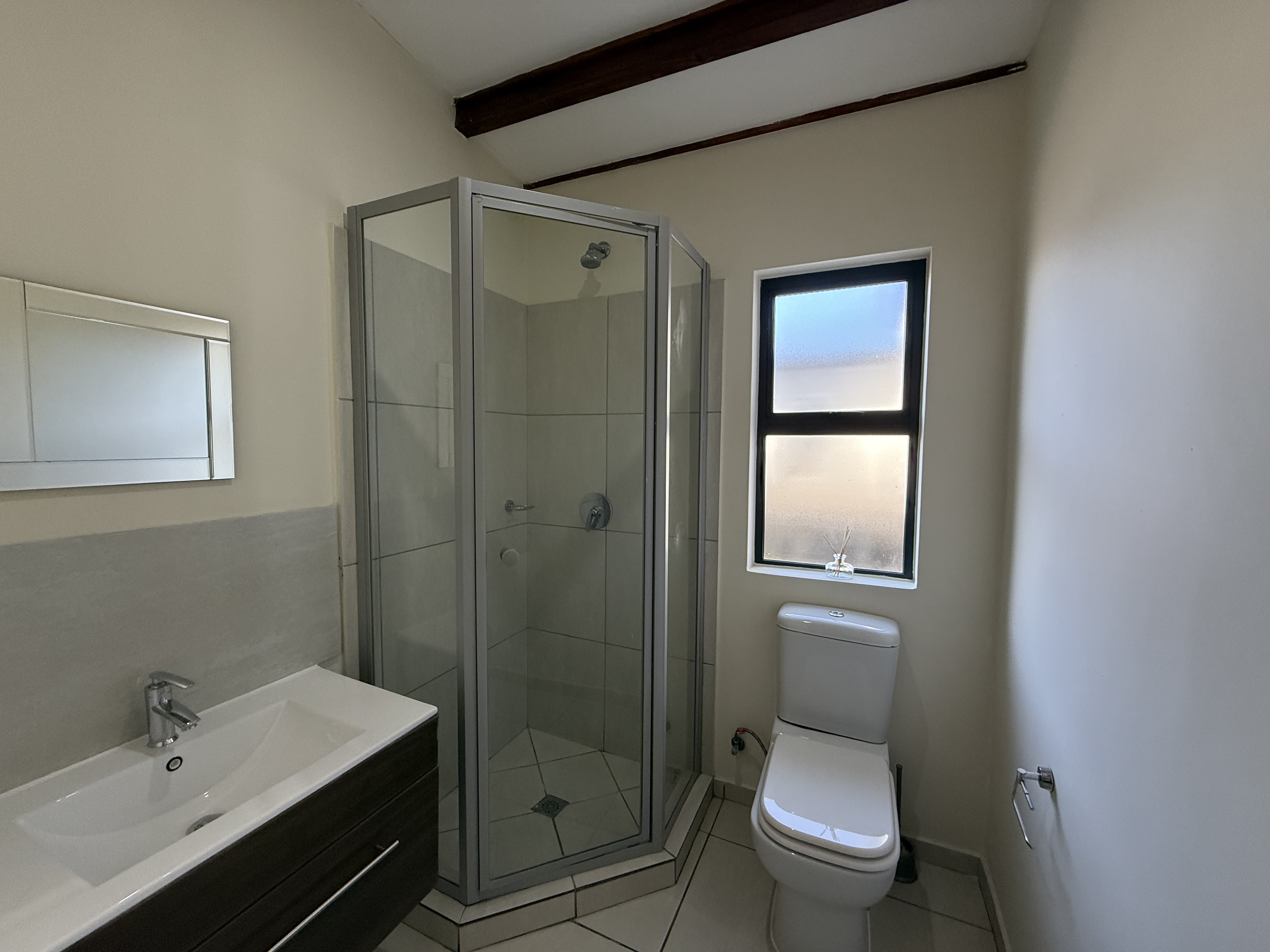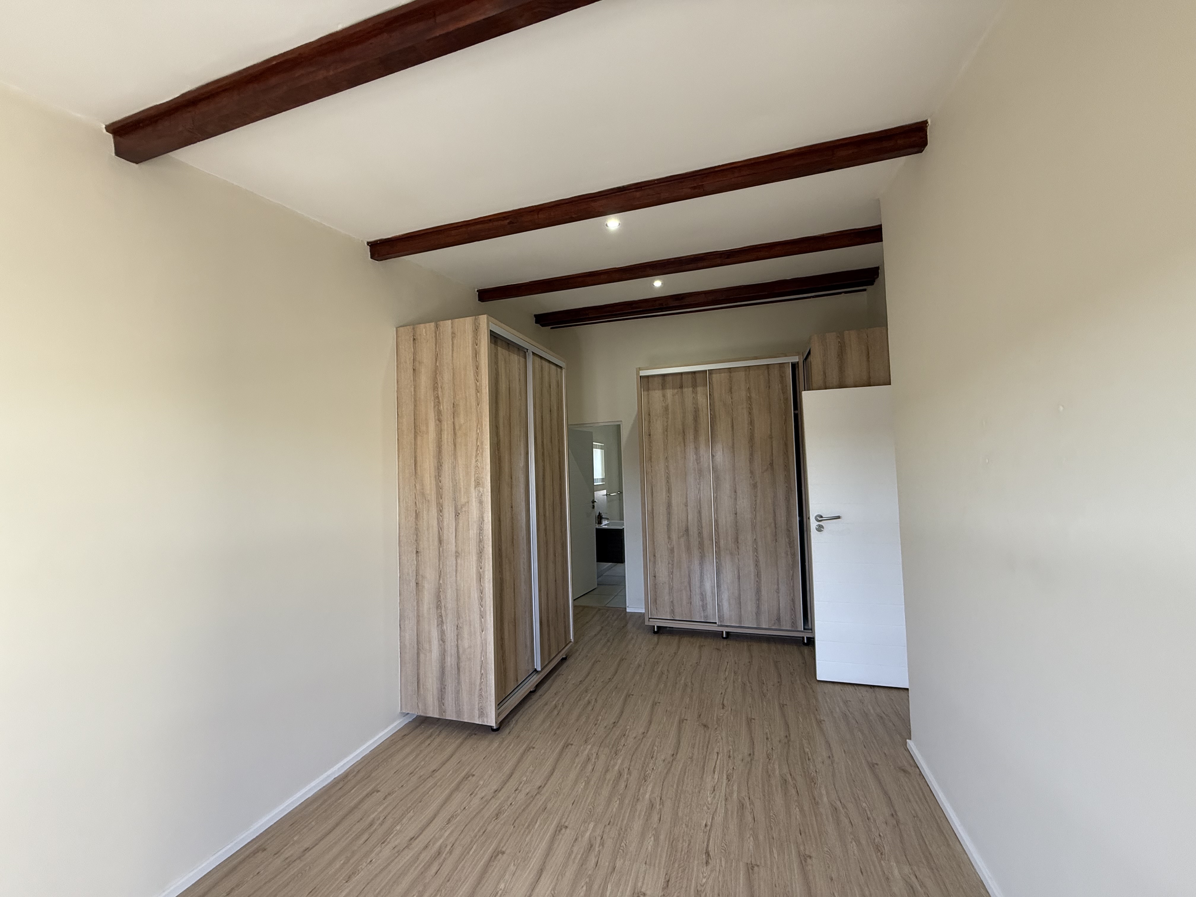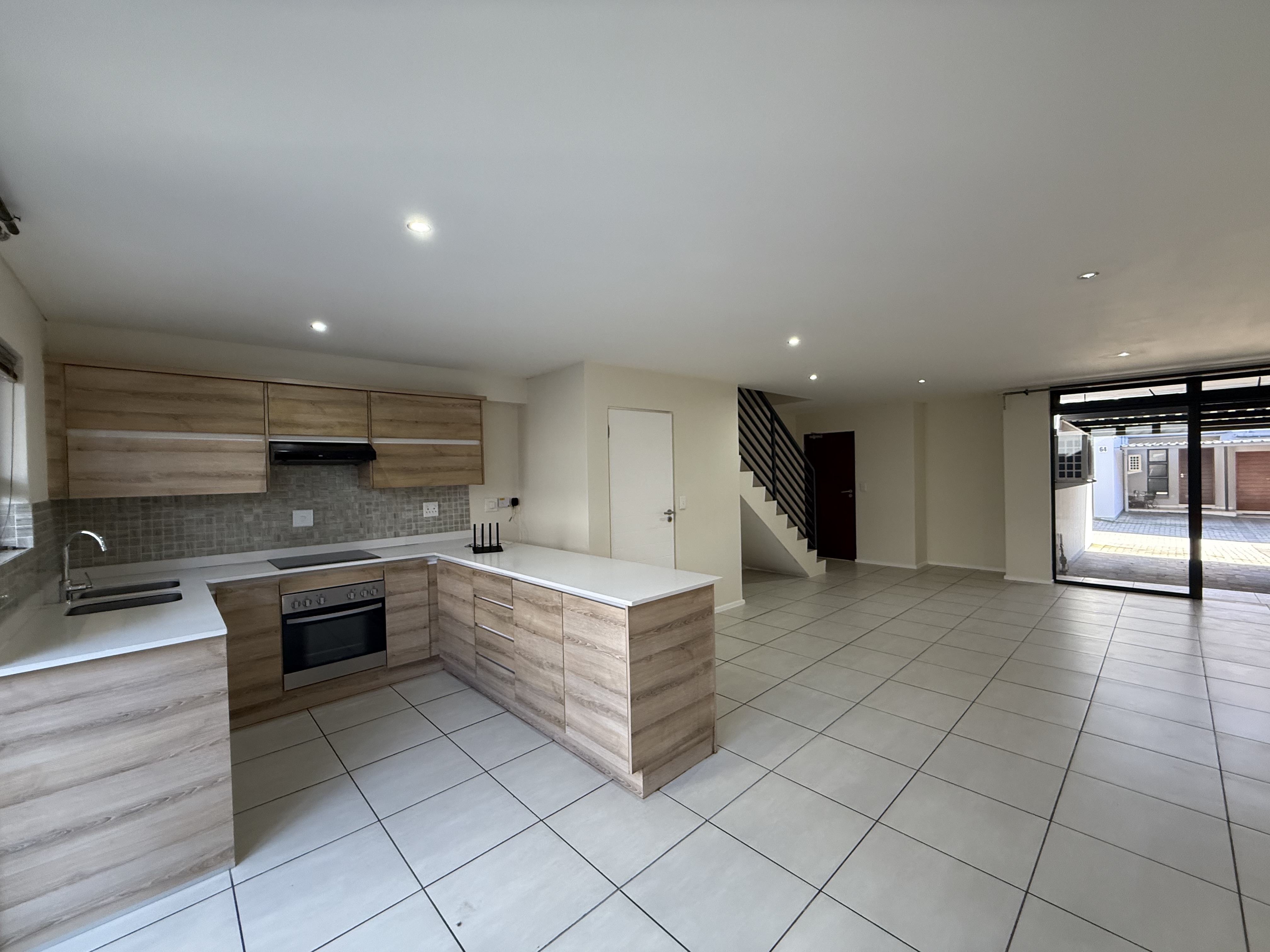 This unit is stylish offering tiled living areas and bathrooms, laminate flooring in bedrooms and ample built in cupboards. Upstairs features high beamed ceilings, 3 bedrooms and 2 bathrooms, one with shower and the main is en suite with bath and shower. The downstairs open plan living area is well sized with a guest loo for convenience. The kitchen, featuring a glass top stove, extractor fan, undercounter oven, double basin and space for large fridge and one water appliance, leads through stacker doors to your own private garden.