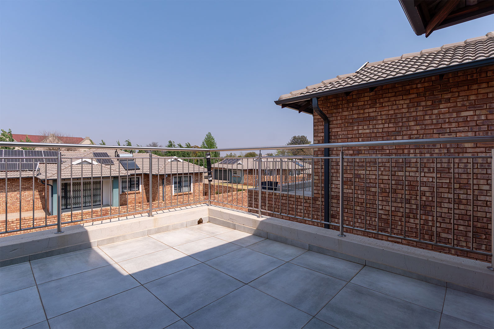 Upstairs, you’ll find three generously sized bedrooms with laminate flooring and built-in cupboards. One bedroom opens onto a tranquil balcony, ideal for morning coffee or evening relaxation. The first bathroom includes a bath, toilet, and basin, while the master bedroom features a stunning full en-suite bathroom for your private retreat.