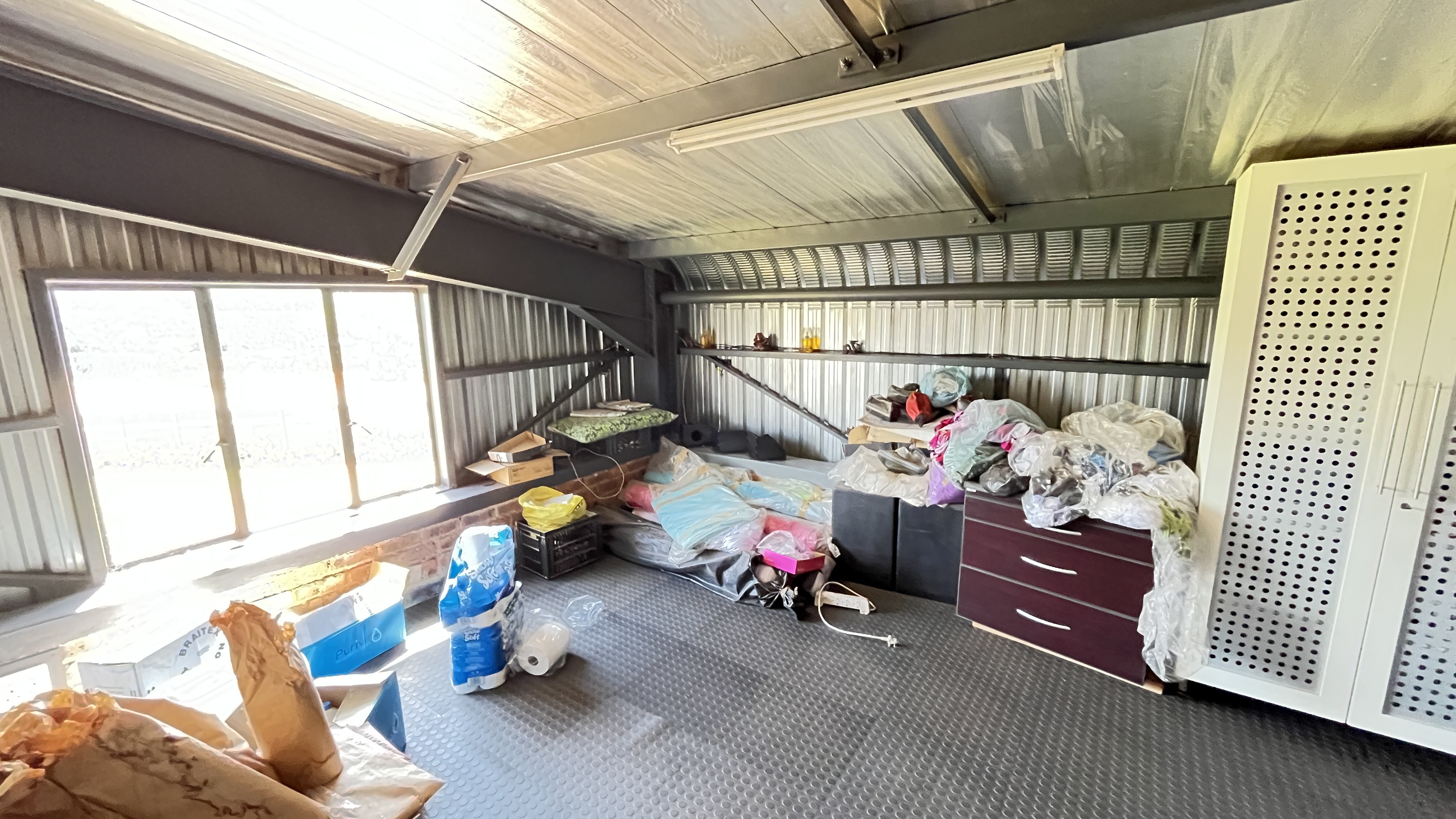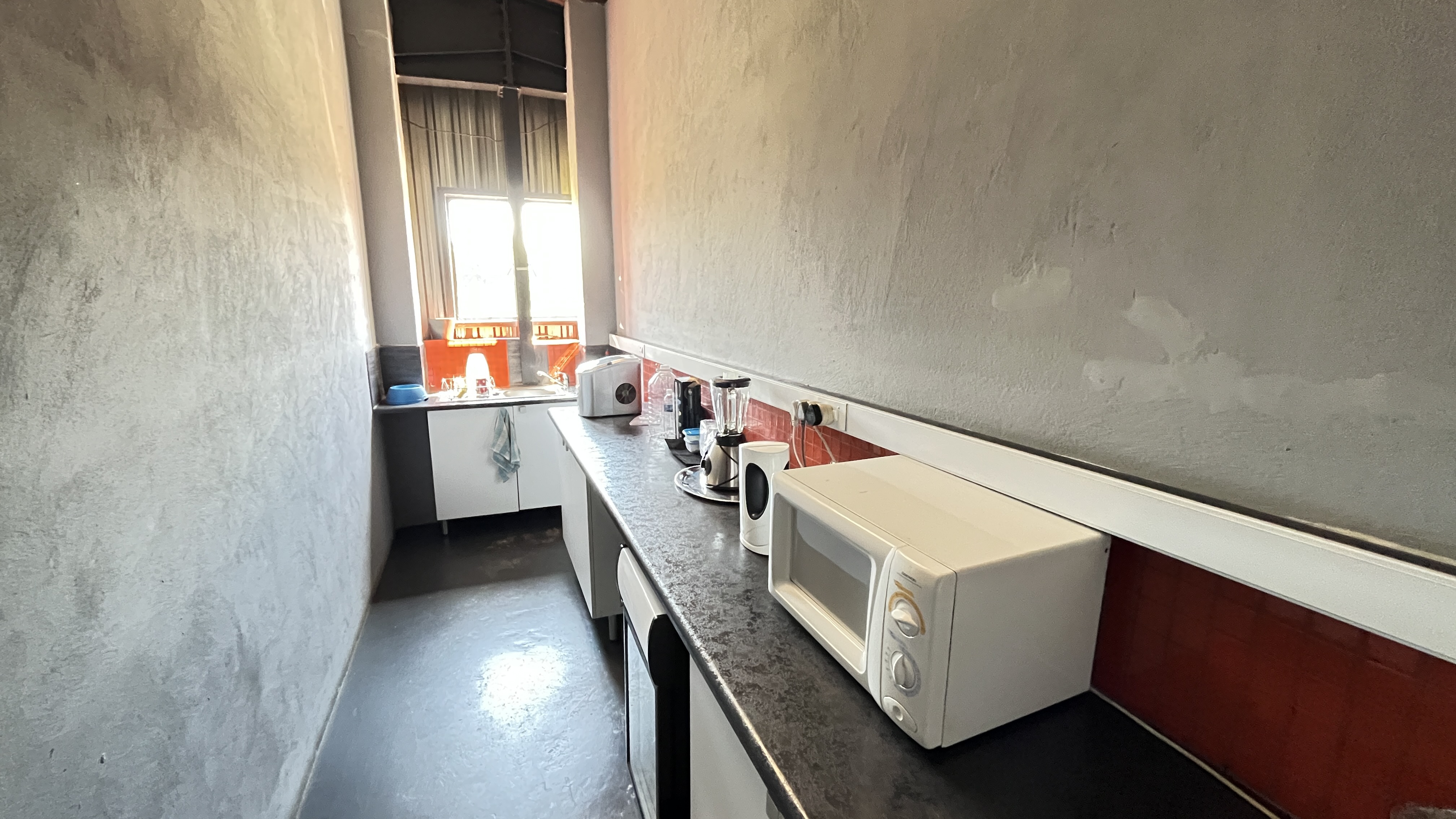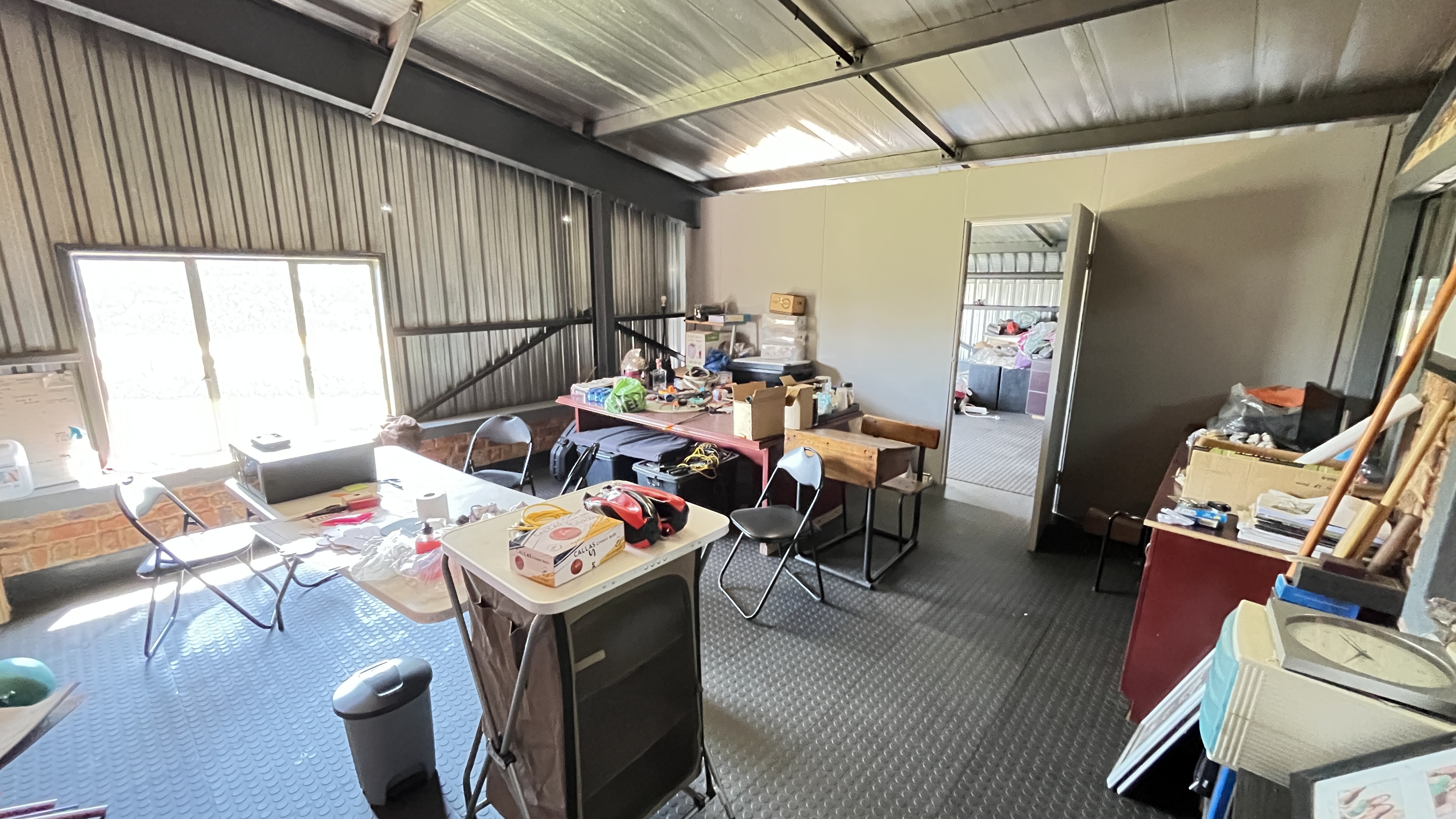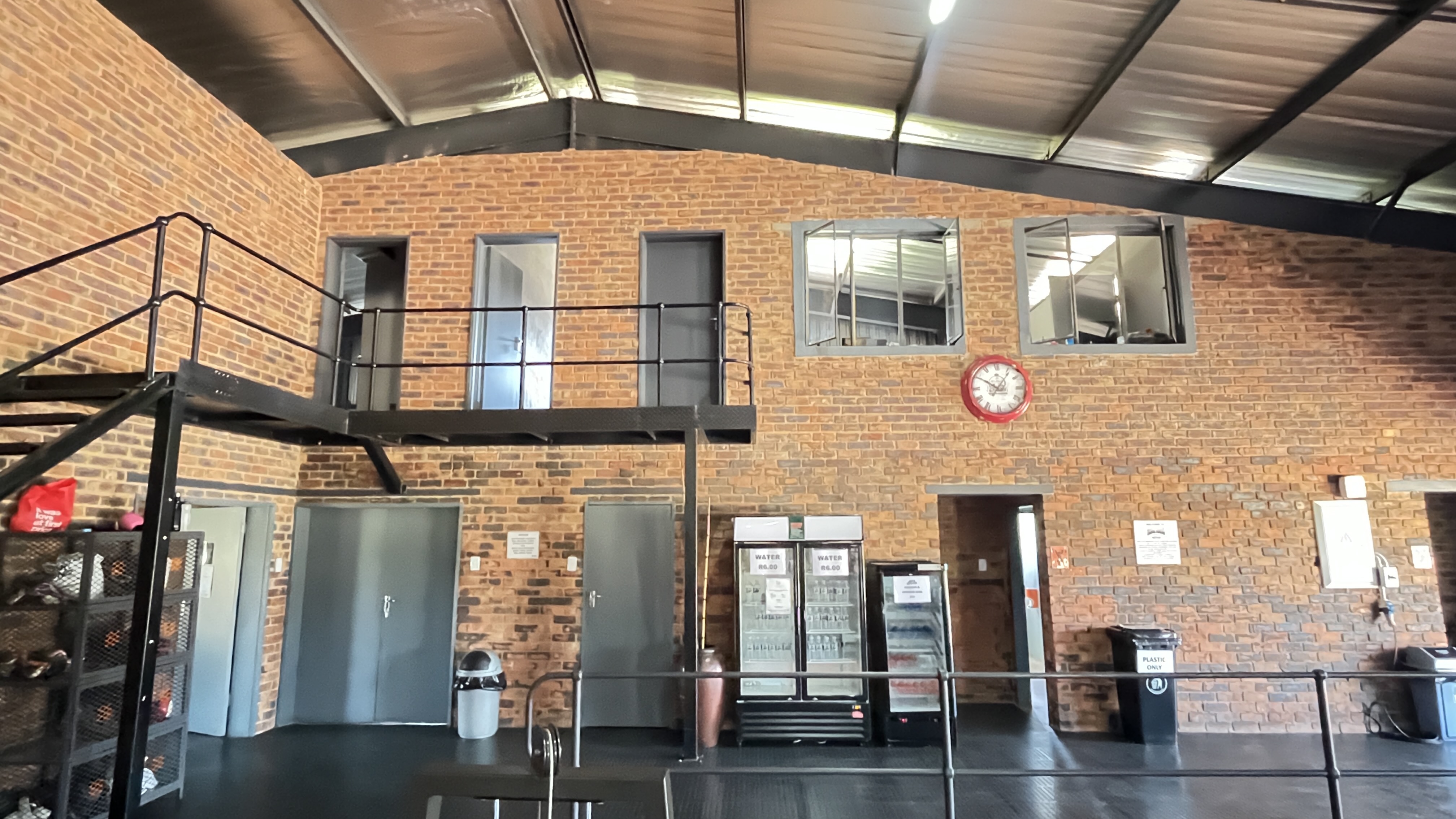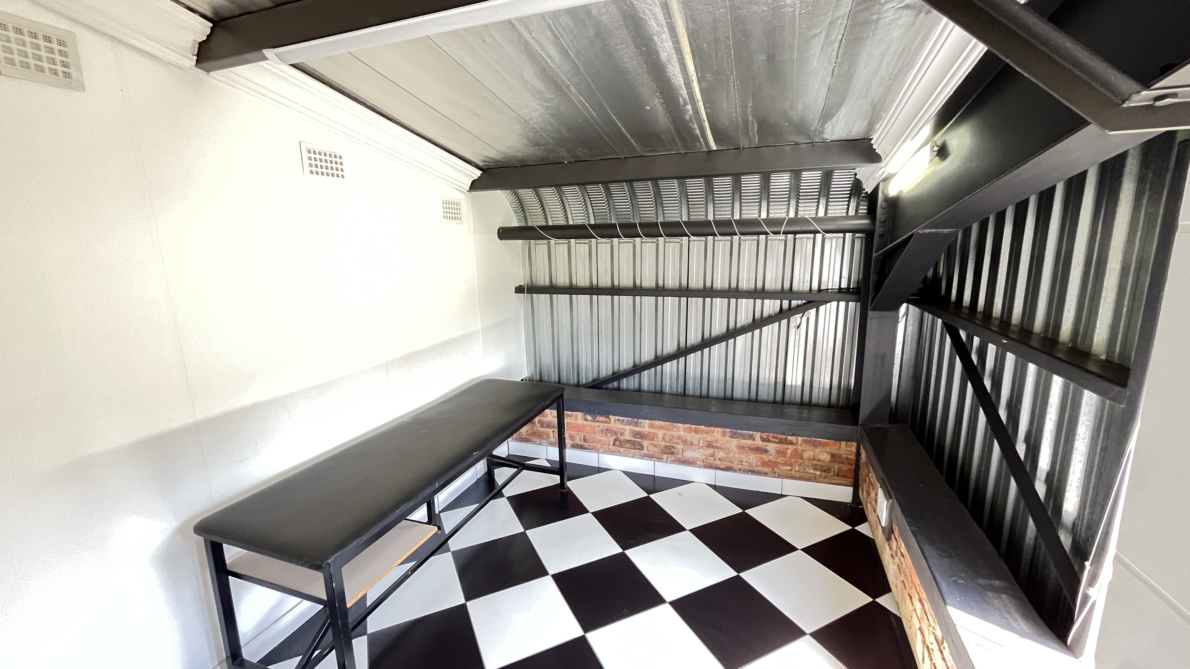 1000 m2 building with 2 offices, a kitchenette, ladies bathroom with 2 toilets, 2 basins and 2 showers, men's bathroom with 1 toilet, 2 urinals, 2 basins and 1 shower.