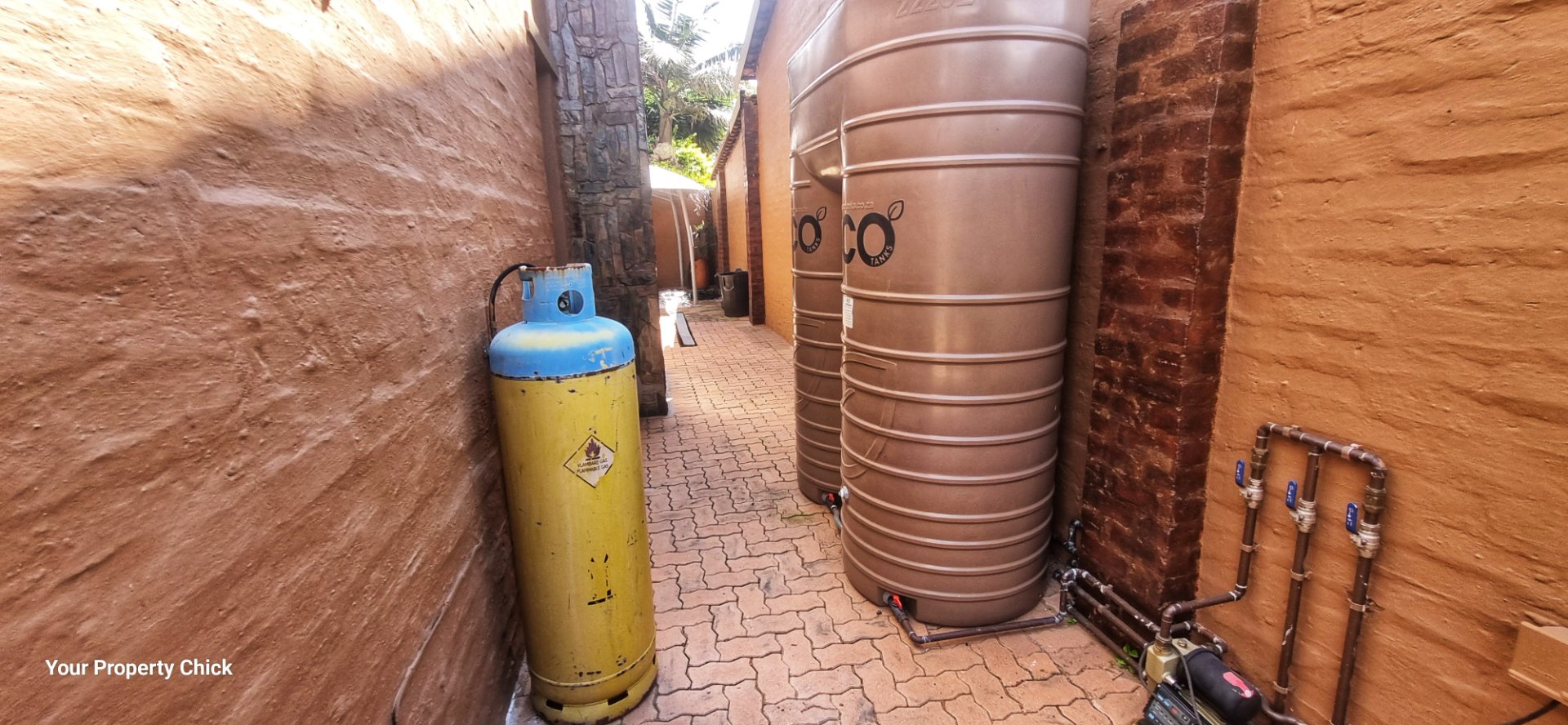 - 2200L JoJo water tank with a pressure pump for a reliable water supply, additional tanks can easily be added