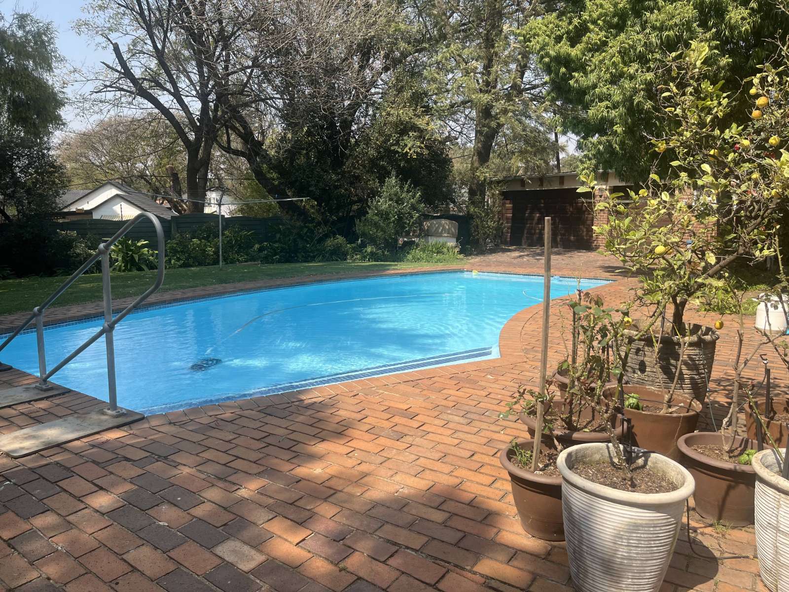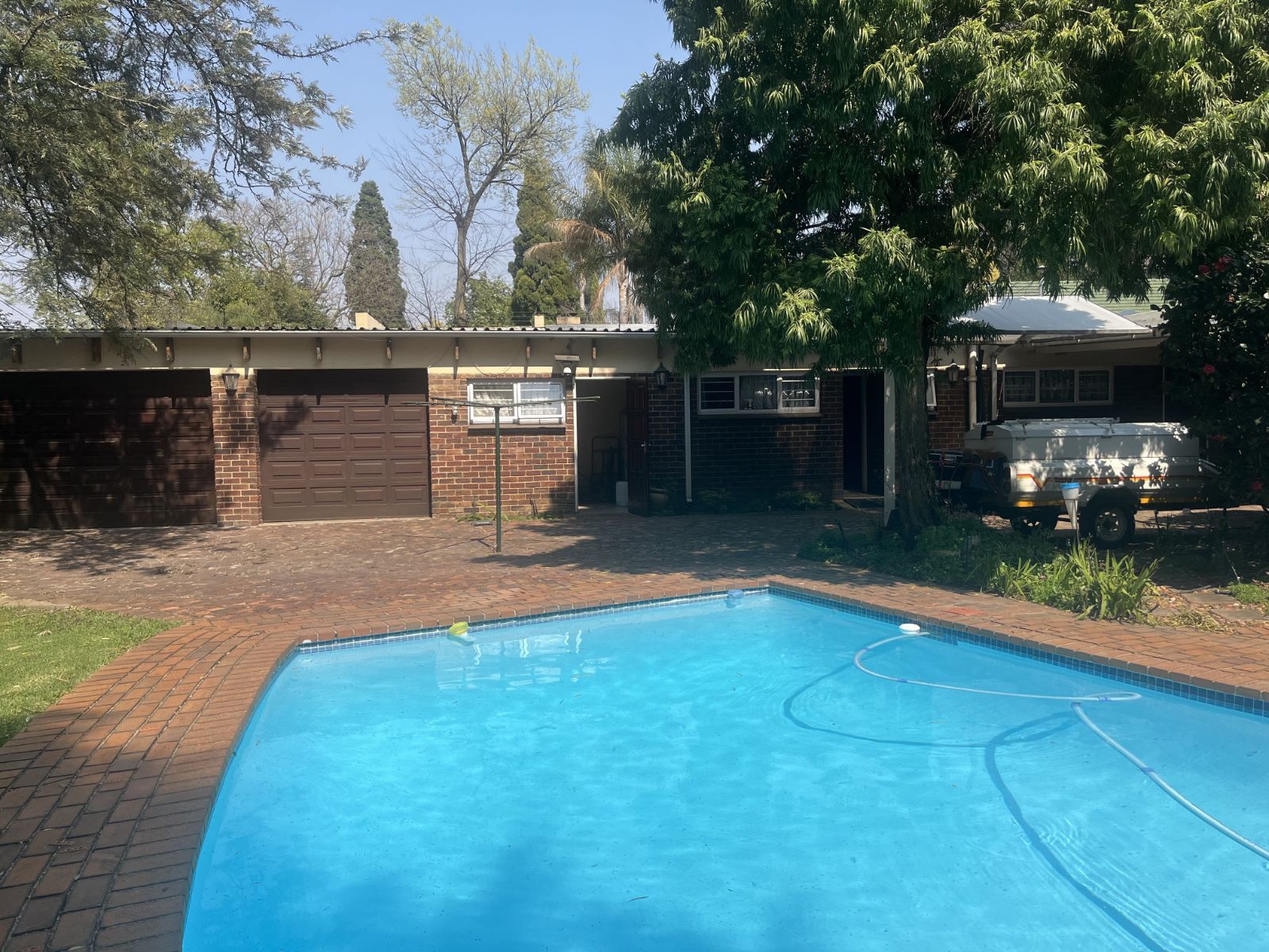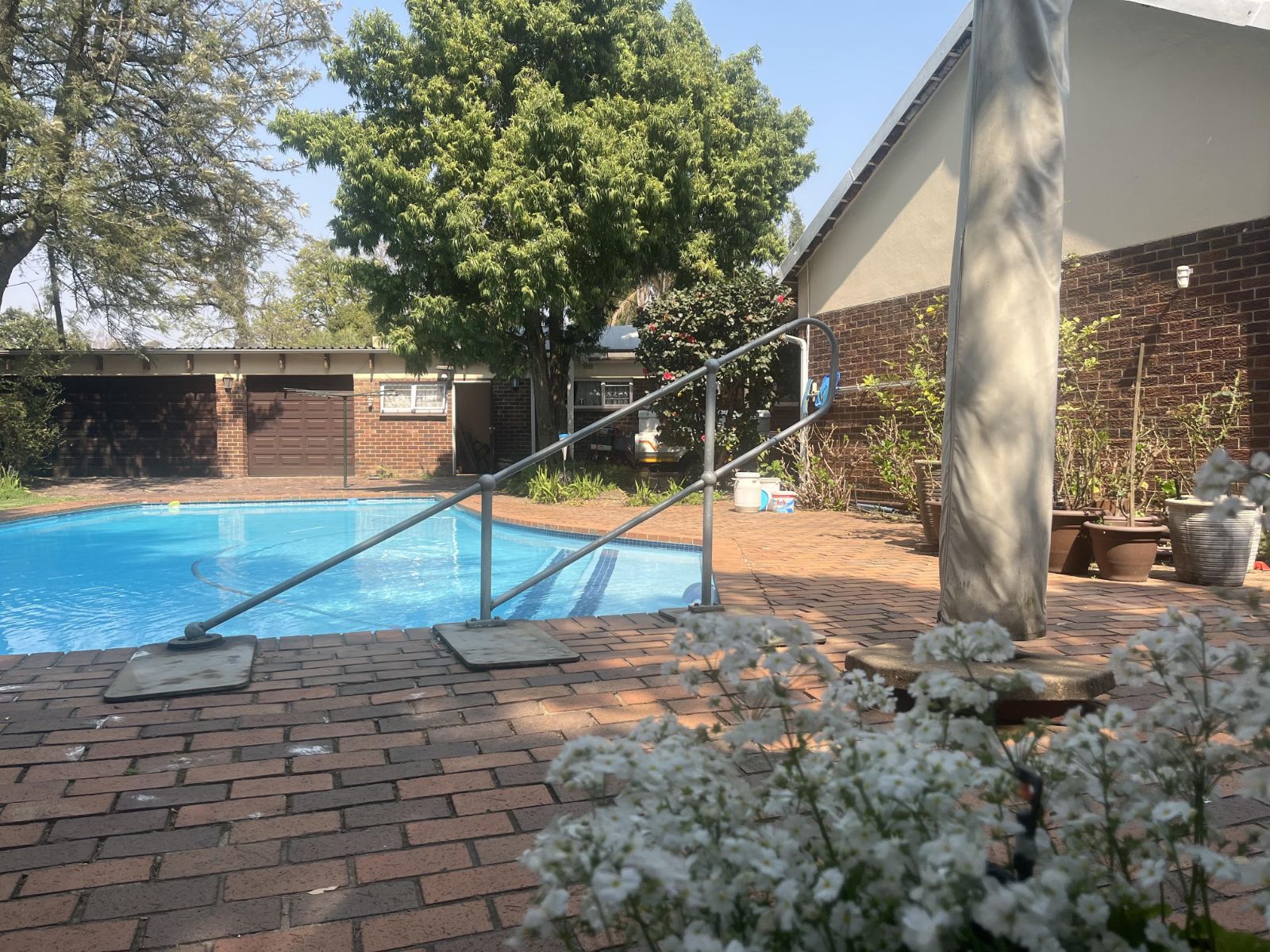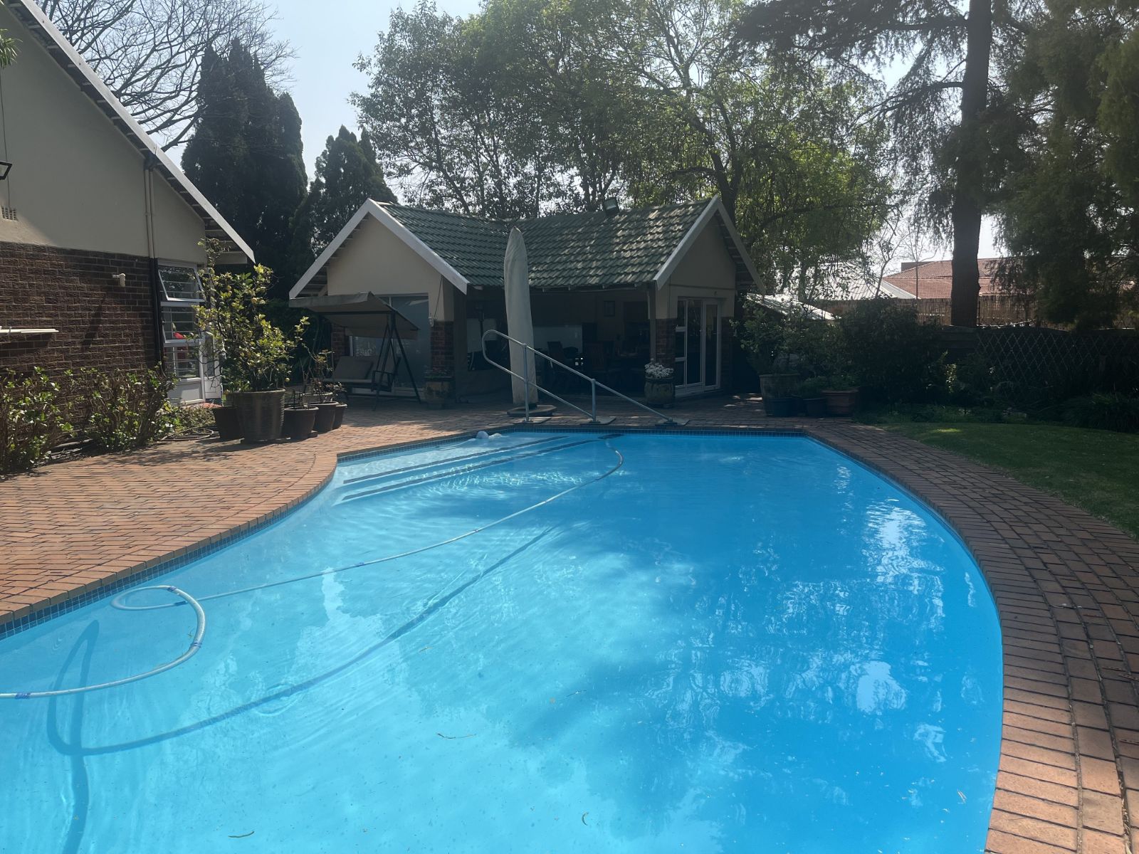 An enclosed lapa with a built-in braai overlooks a beautiful fiberglass pool and back garden area. The 5 garages (all automated) are adjoined by 2 storerooms, a workshop and staff quarters with a toilet and basin. An easy conversion can be made of these outbuildings into a second residence, without losing the double garage.
