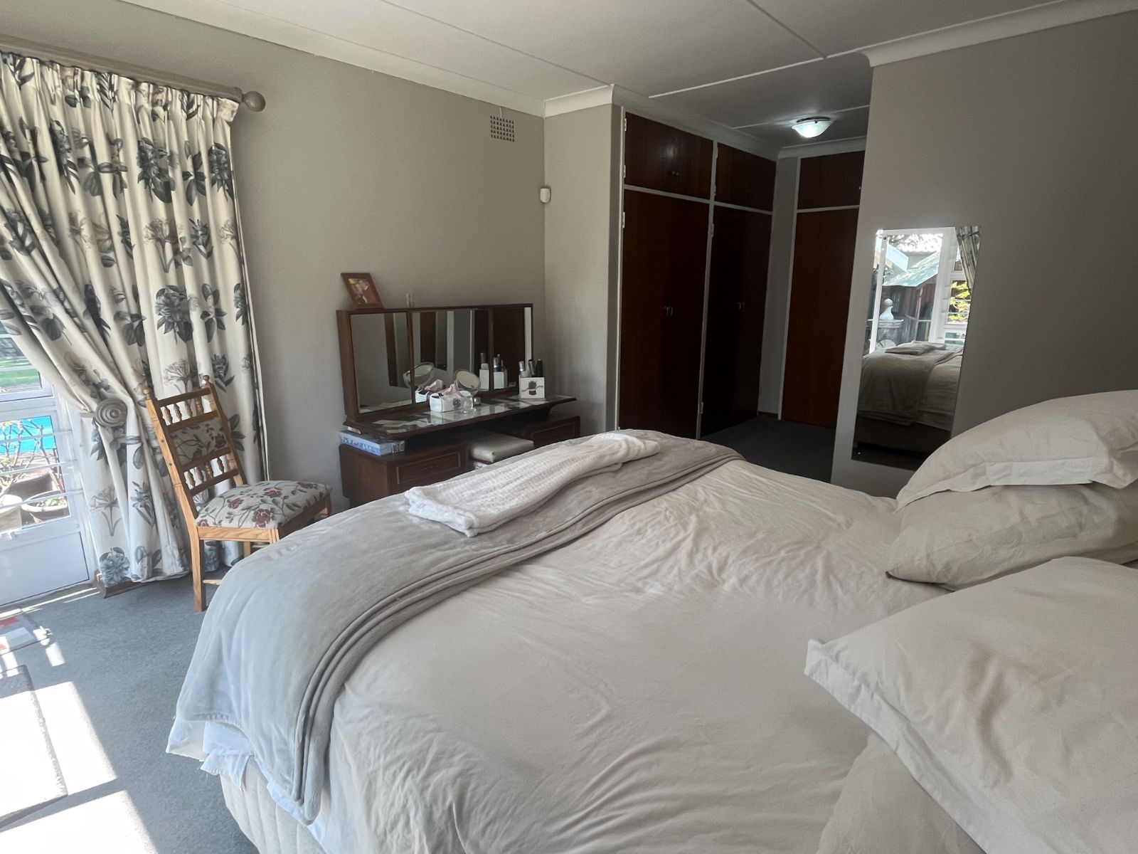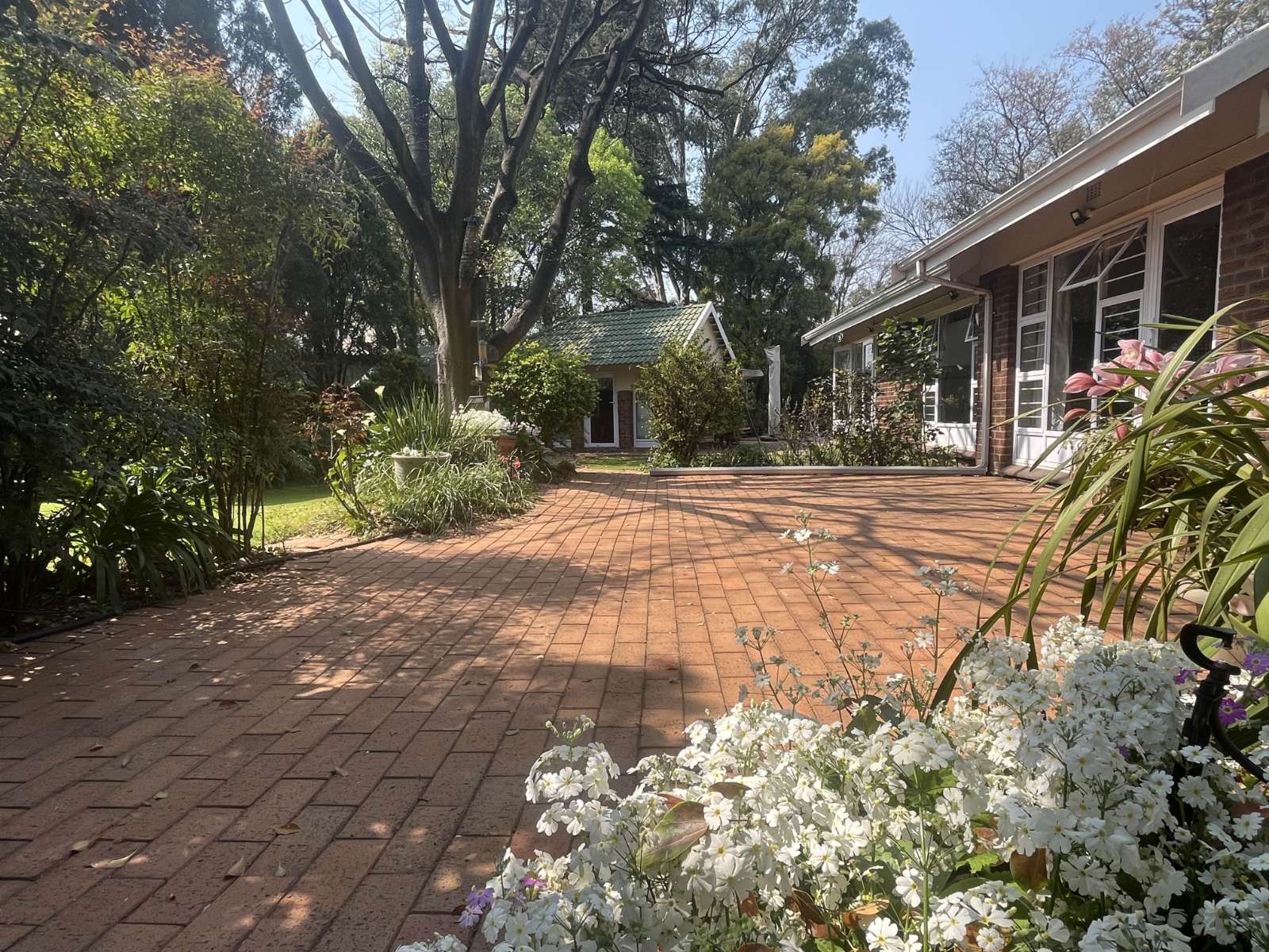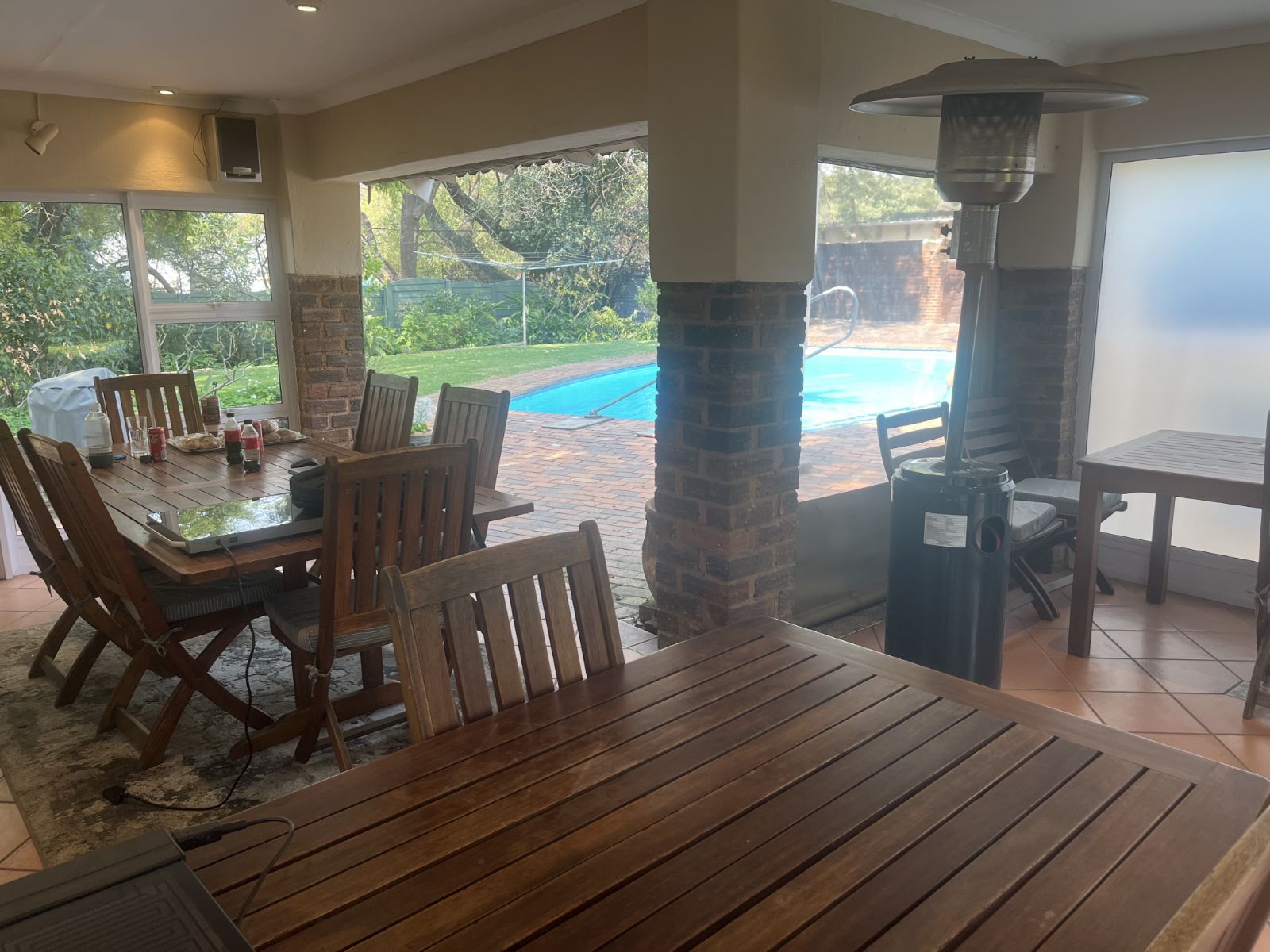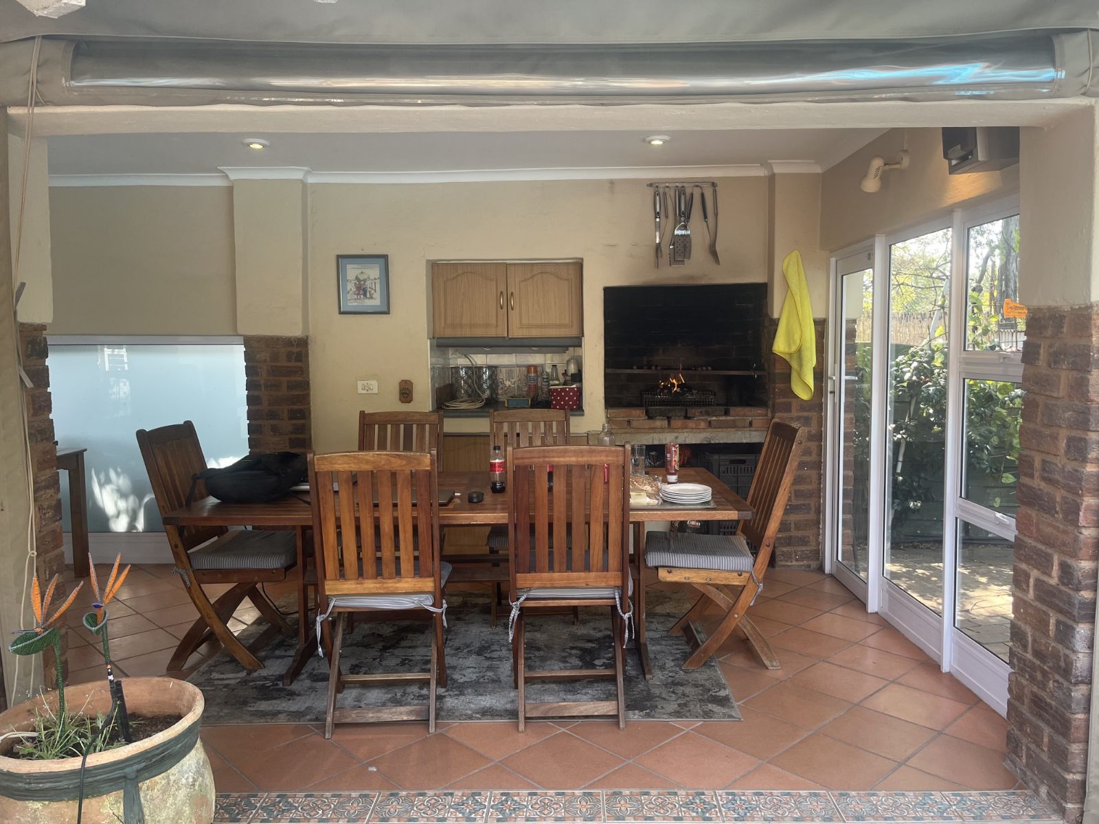 An enclosed lapa with a built-in braai overlooks a beautiful fiberglass pool and back garden area. The 5 garages (all automated) are adjoined by 2 storerooms, a workshop and staff quarters with a toilet and basin. An easy conversion can be made of these outbuildings into a second residence, without losing the double garage.