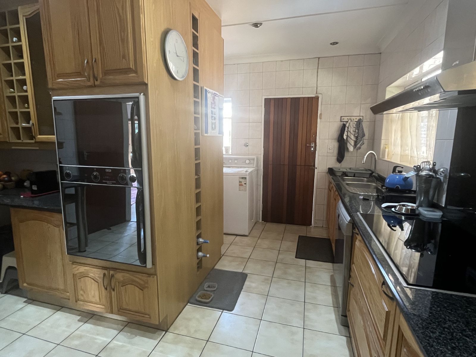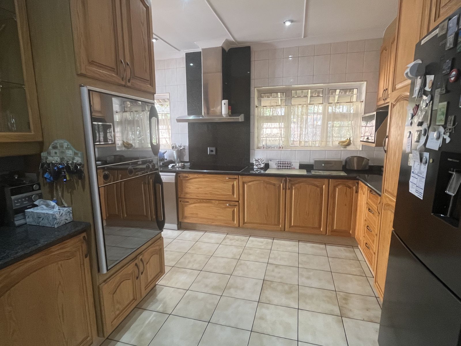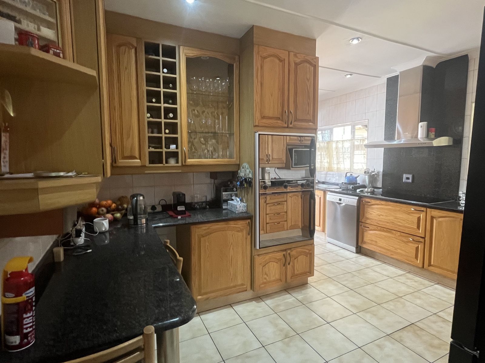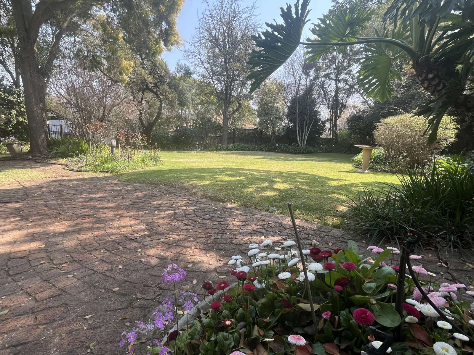 An enclosed lapa with a built-in braai overlooks a beautiful fiberglass pool and back garden area. The 5 garages (all automated) are adjoined by 2 storerooms, a workshop and staff quarters with a toilet and basin. An easy conversion can be made of these outbuildings into a second residence, without losing the double garage.