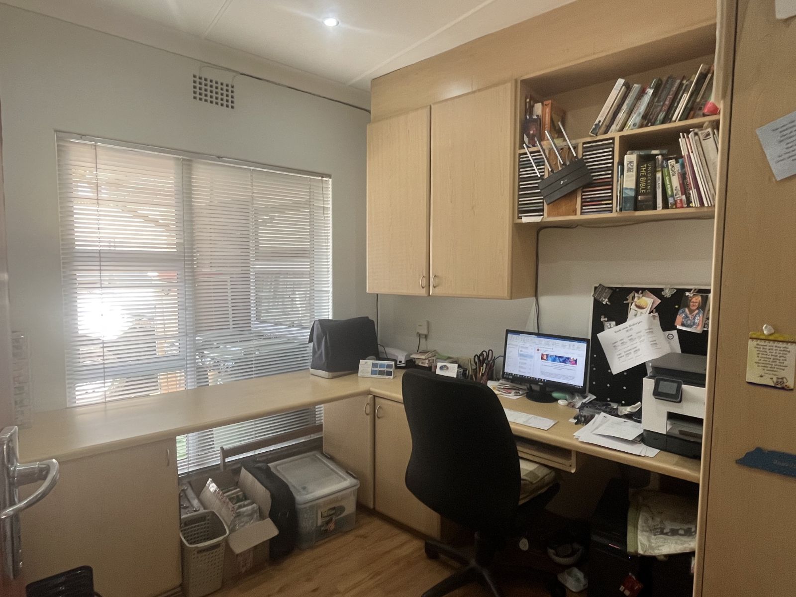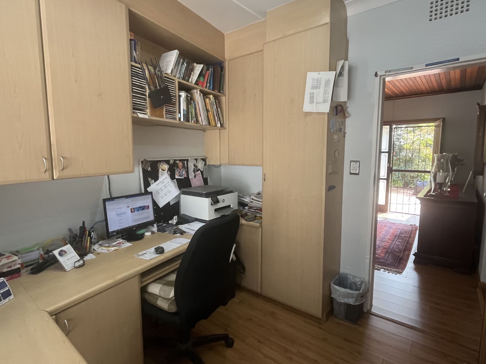 The kitchen in solid oak and granite has many cupboards and ample space for all your appliances. Three of the four bedrooms face north, and the carpeting is in good condition. Two bathrooms and a separate toilet compliment the bedrooms. The main bedroom opens into the garden (see detail from the video below). The study is fitted with adequate units for all your office storage.