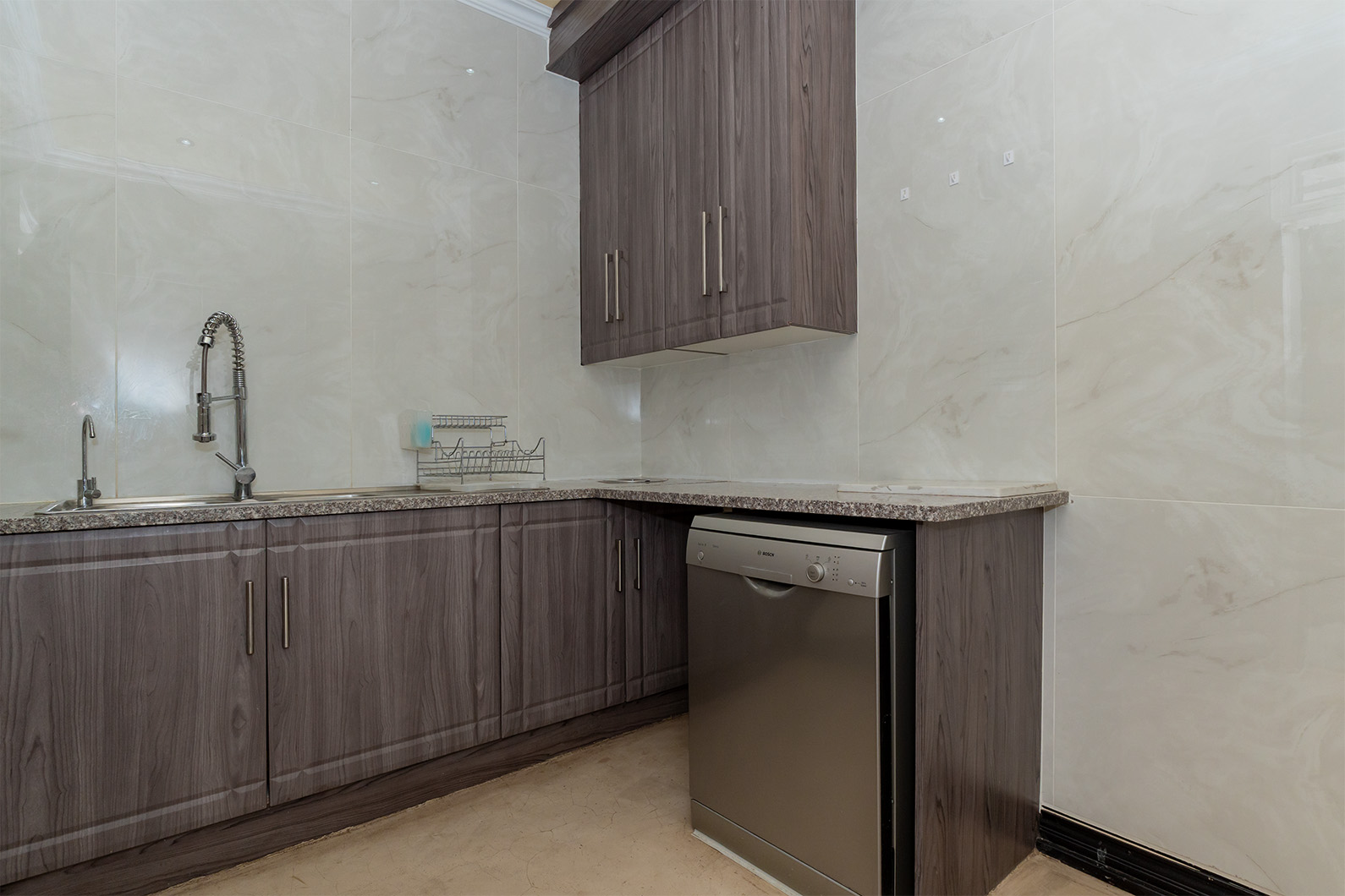 The heart of the home is a chef’s dream: a sleek kitchen featuring granite countertops, with ample cupboard and pantry space, all complemented by a separate scullery for added convenience.