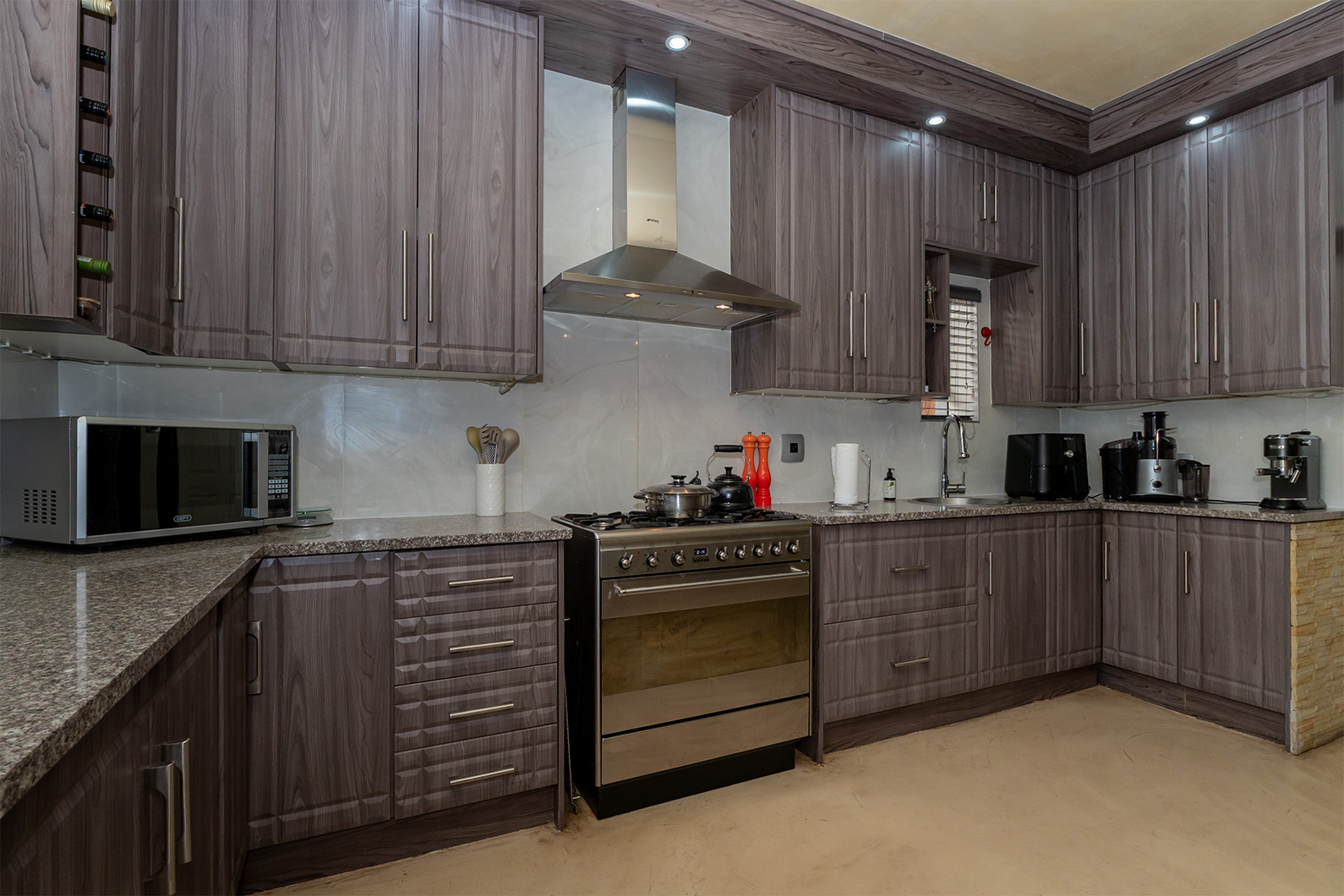 The studio flatlet is completely private — ideal for extended family, guests, or rental income — and includes a modern bathroom, kitchenette, and gas geyser.