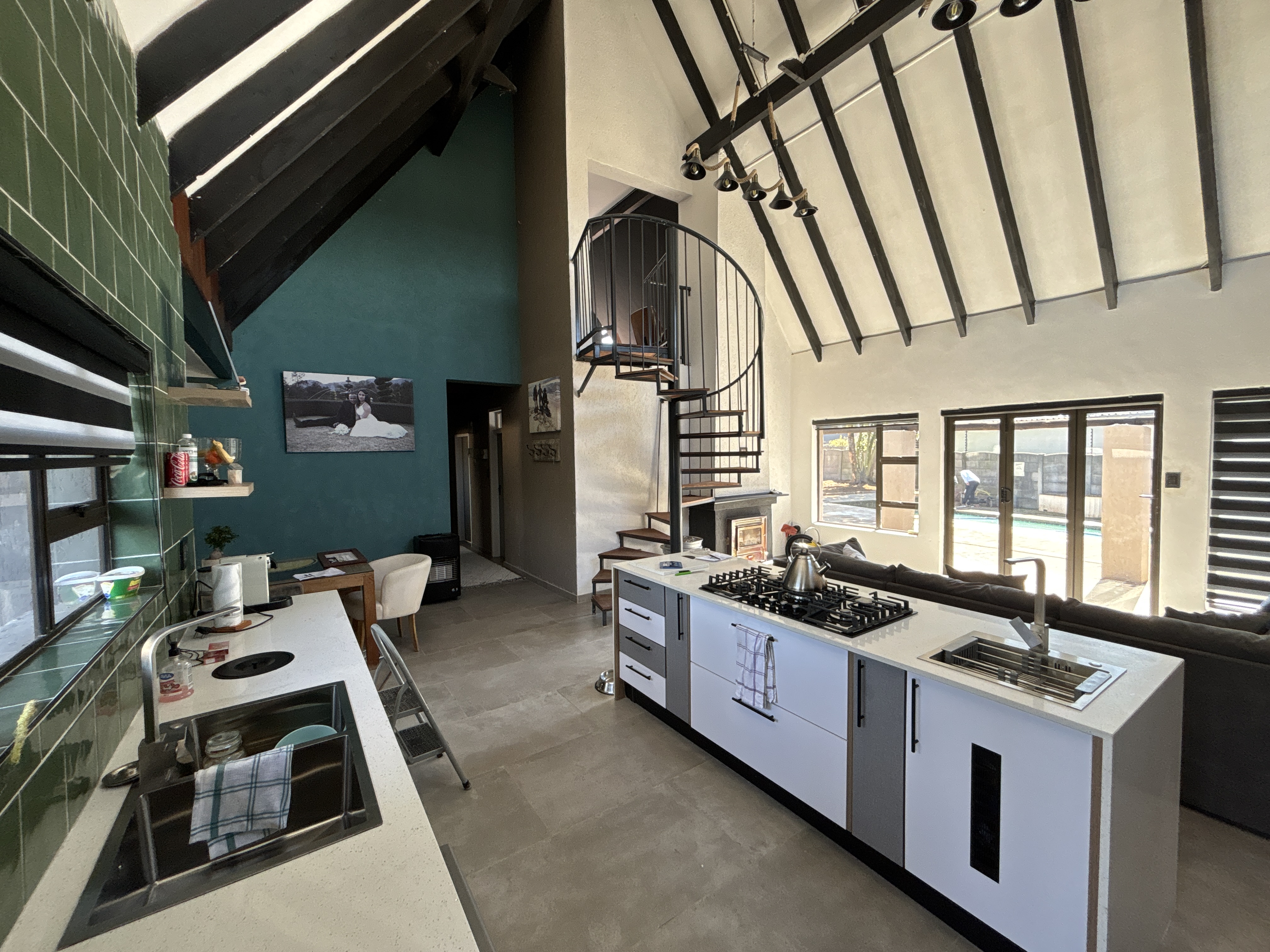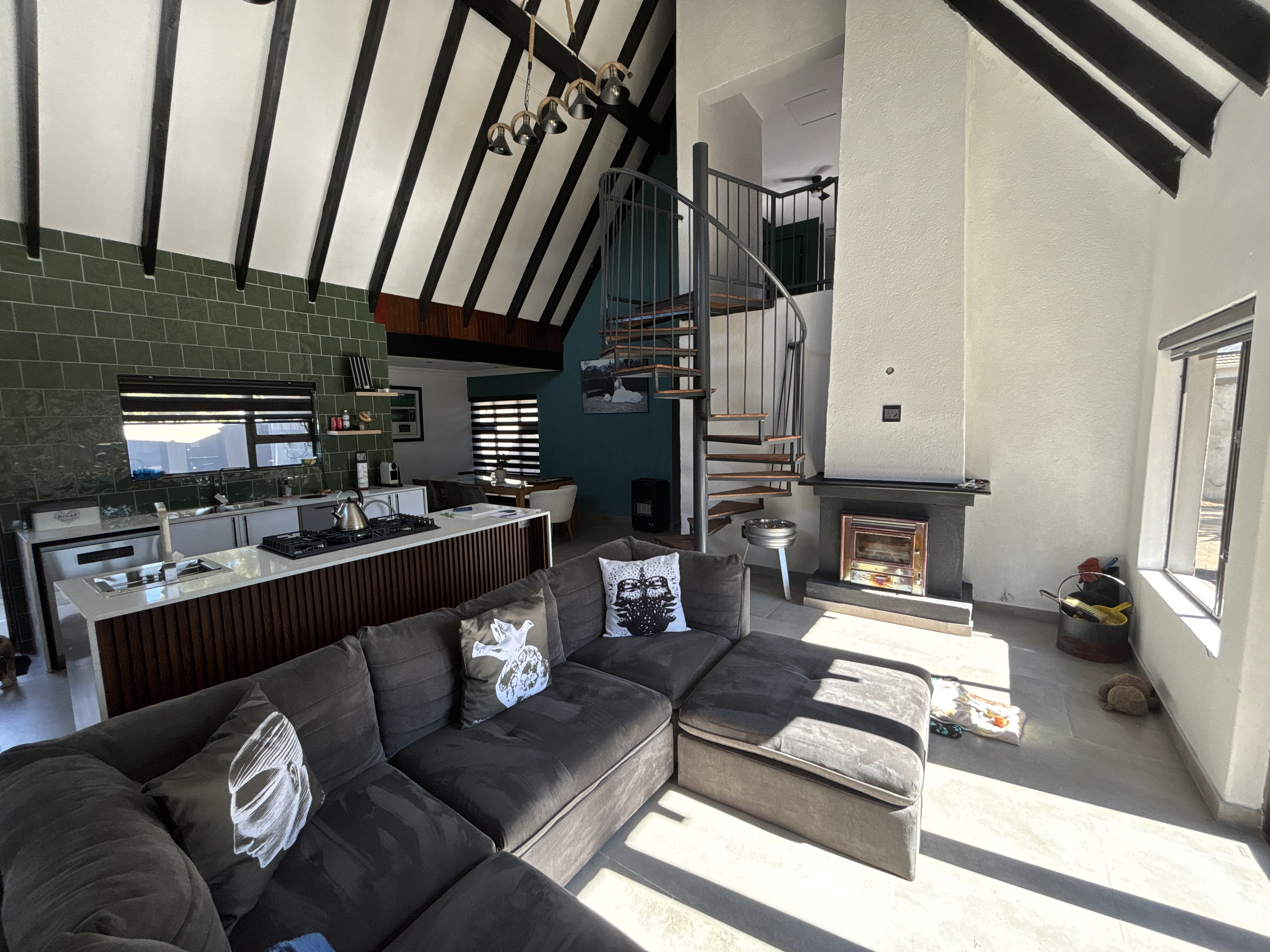 Spacious open-plan layout with a modern kitchen