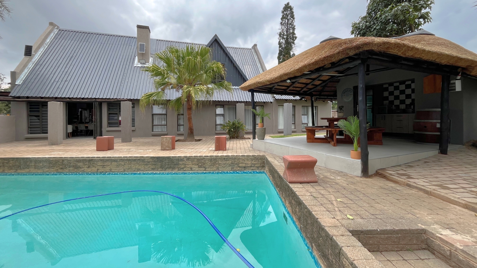 Impressive lapa entertainment area with built-in bar, fire pit, and braai — ideal for entertaining family and friends
