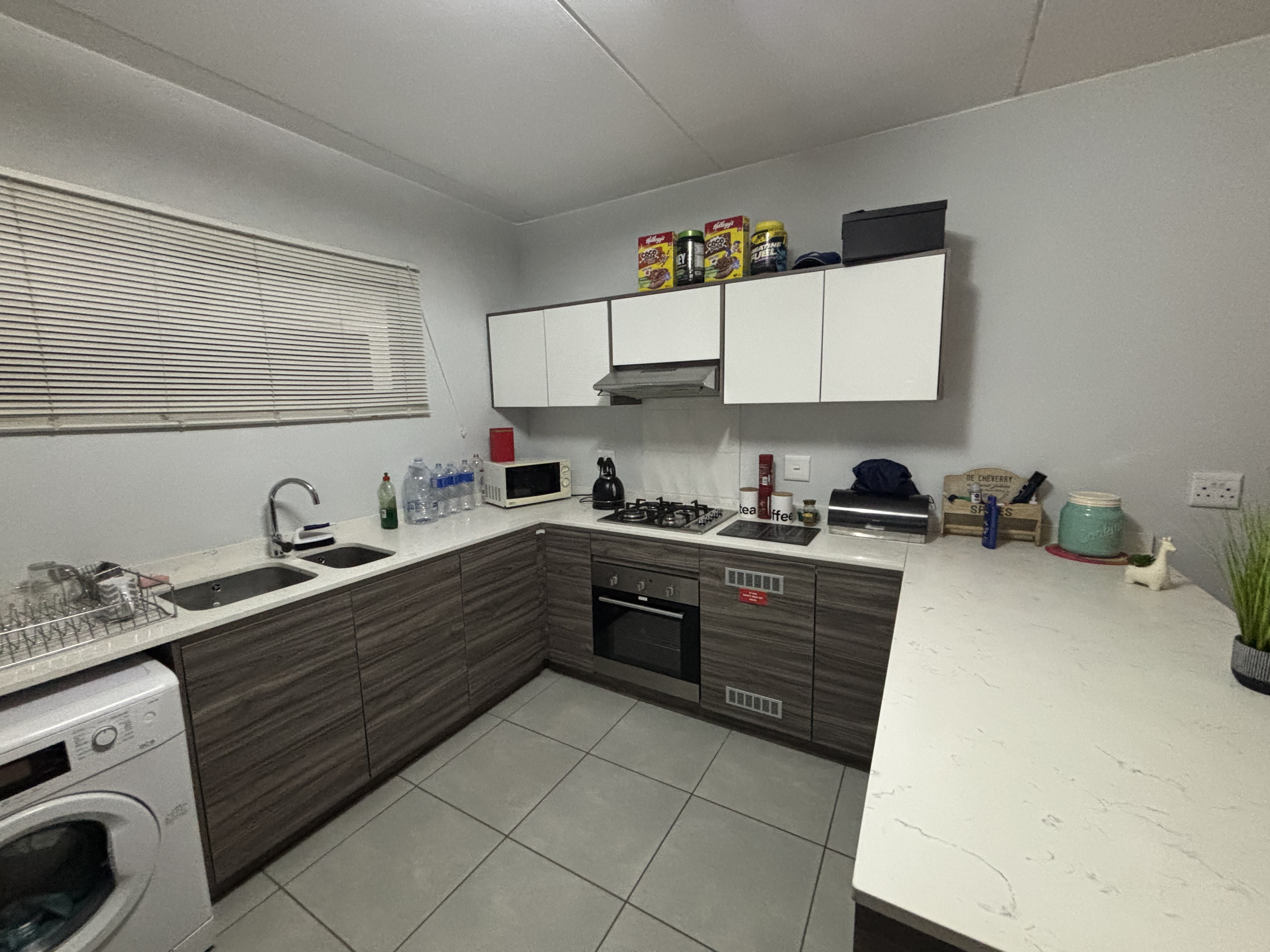This stylish home features a modern kitchen with gorgeous countertops, a gas stove, and open-plan flow into a light-filled living area. Both bathrooms are fitted with full extractor fans, and a solar geyser ensures energy efficiency and cost savings.