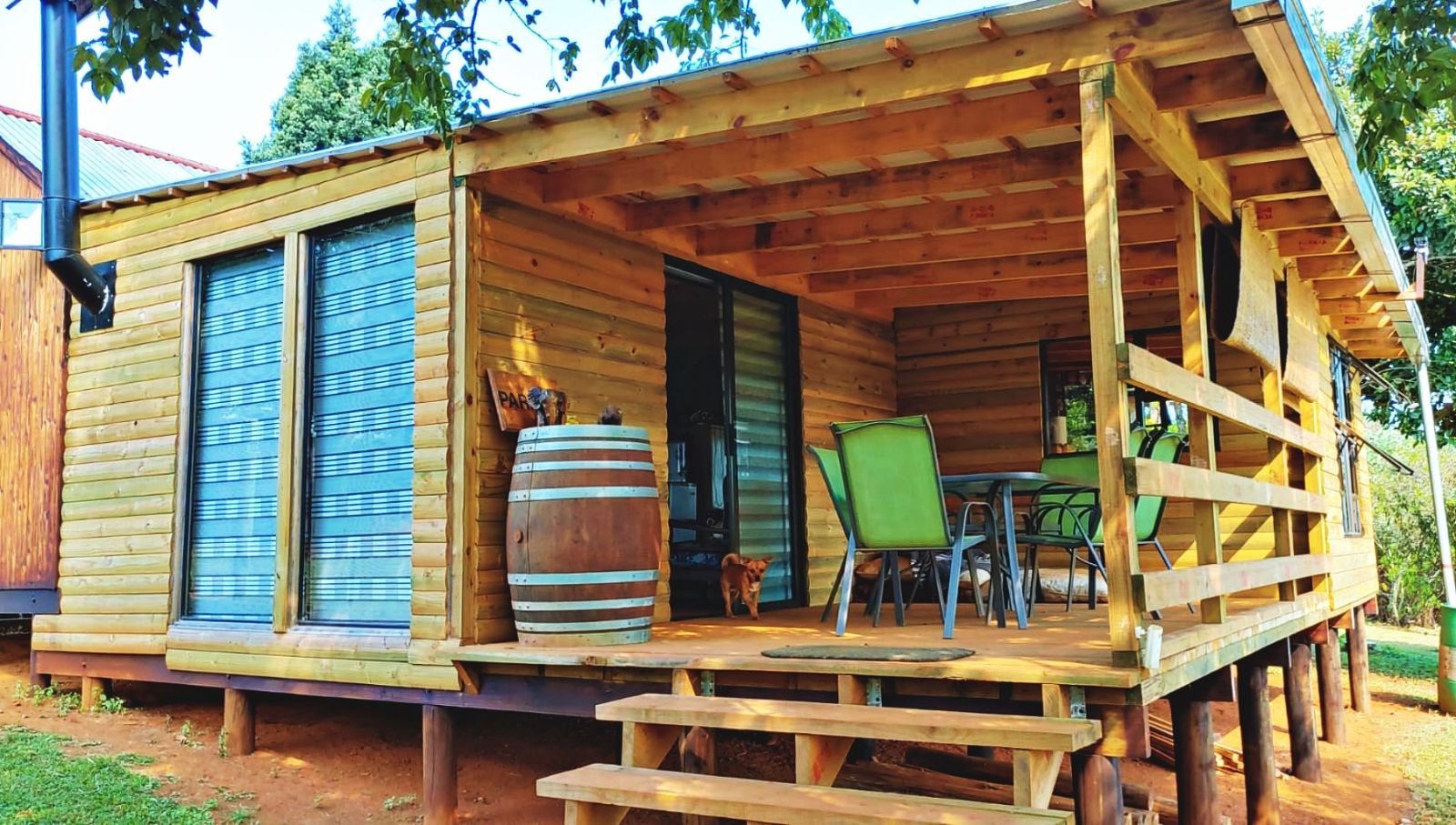 Cottage 2 – Sleeps 2, with kitchenette, deck, and kettle braai.